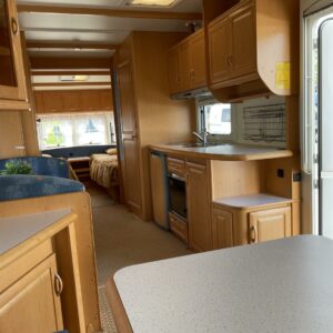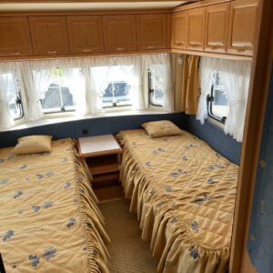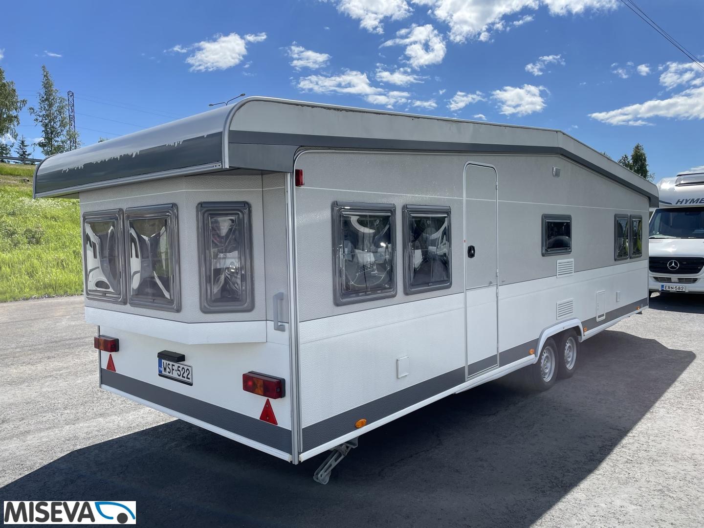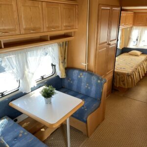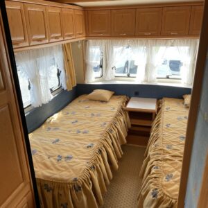 Jääkaappi, Kaasu-uuni, Liesi, TV-antenni tai lautasantenni, Alde, Lattialämmitys sähkö, Sähköpatruuna, Lattiamatot asunto-osassa, Kattoluukku, Nestekiertolämmitys, Pakastelokero, Tukijalat, Erillisvuoteet, Kasetti WC, Kasettiverhot