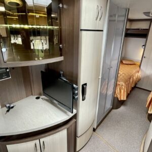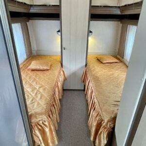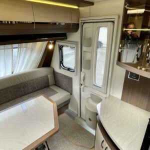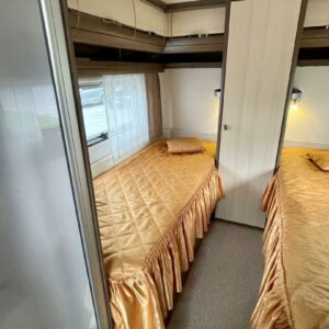 Alde, Jääkaappi, Kasetti WC, Kasettiverhot, Kattoluukku, Keskuslämmitys, Lattialämmitys, Liesi, Lämminvesiboileri, Nestekiertolämmitys, Pakastelokero, Pesuallas, Suihku, Sähköpatruuna, Tukijalat, Erillisvuoteet, Ilmastointi: Automaattinen, TV-antenni tai lautasantenni