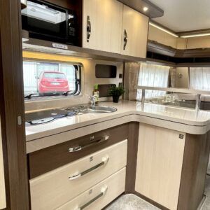 Alde, Jääkaappi, Kasetti WC, Kasettiverhot, Kattoluukku, Lattiamatot asunto-osassa, Liesi, Lämminvesiboileri, Mikroaaltouuni, Nestekiertolämmitys, Pakastelokero, Parivuode, Pesuallas, Suihku, Sähköpatruuna, Tukijalat, Lattialämmitys (sähkö), kwh-mittari, pullonvaihtaja, kaasun ulosotto, televisioteline