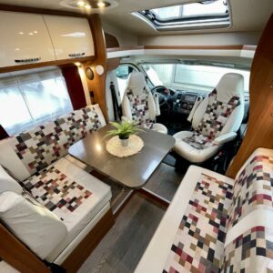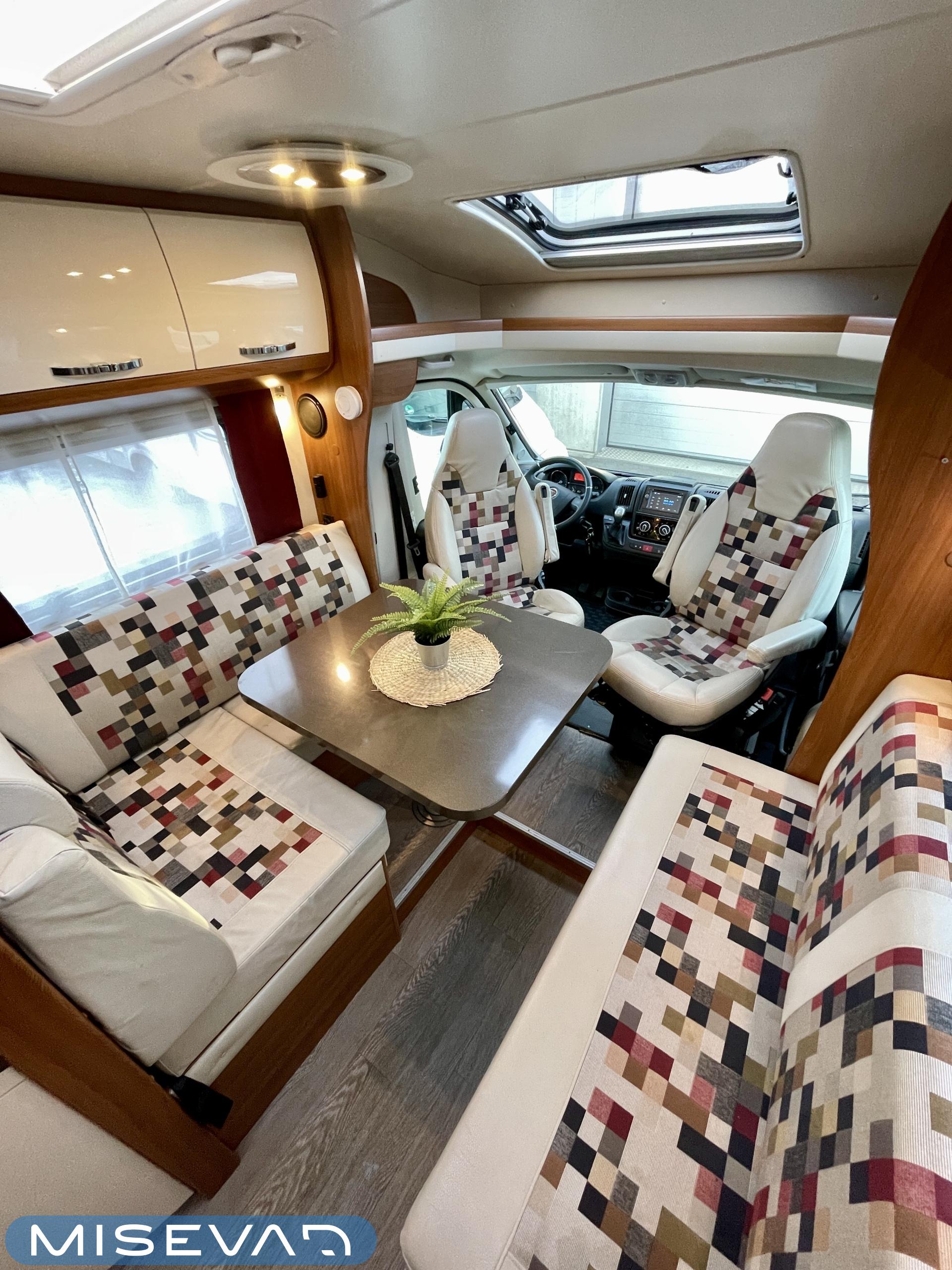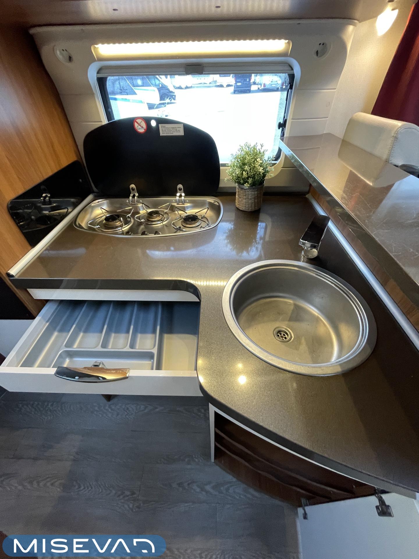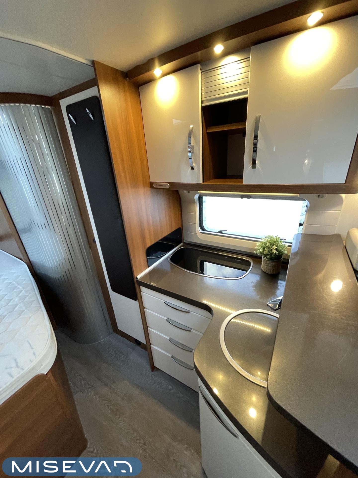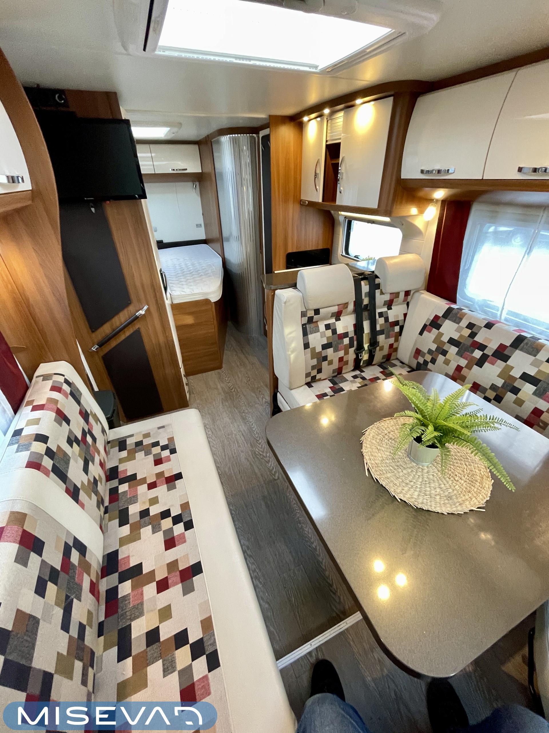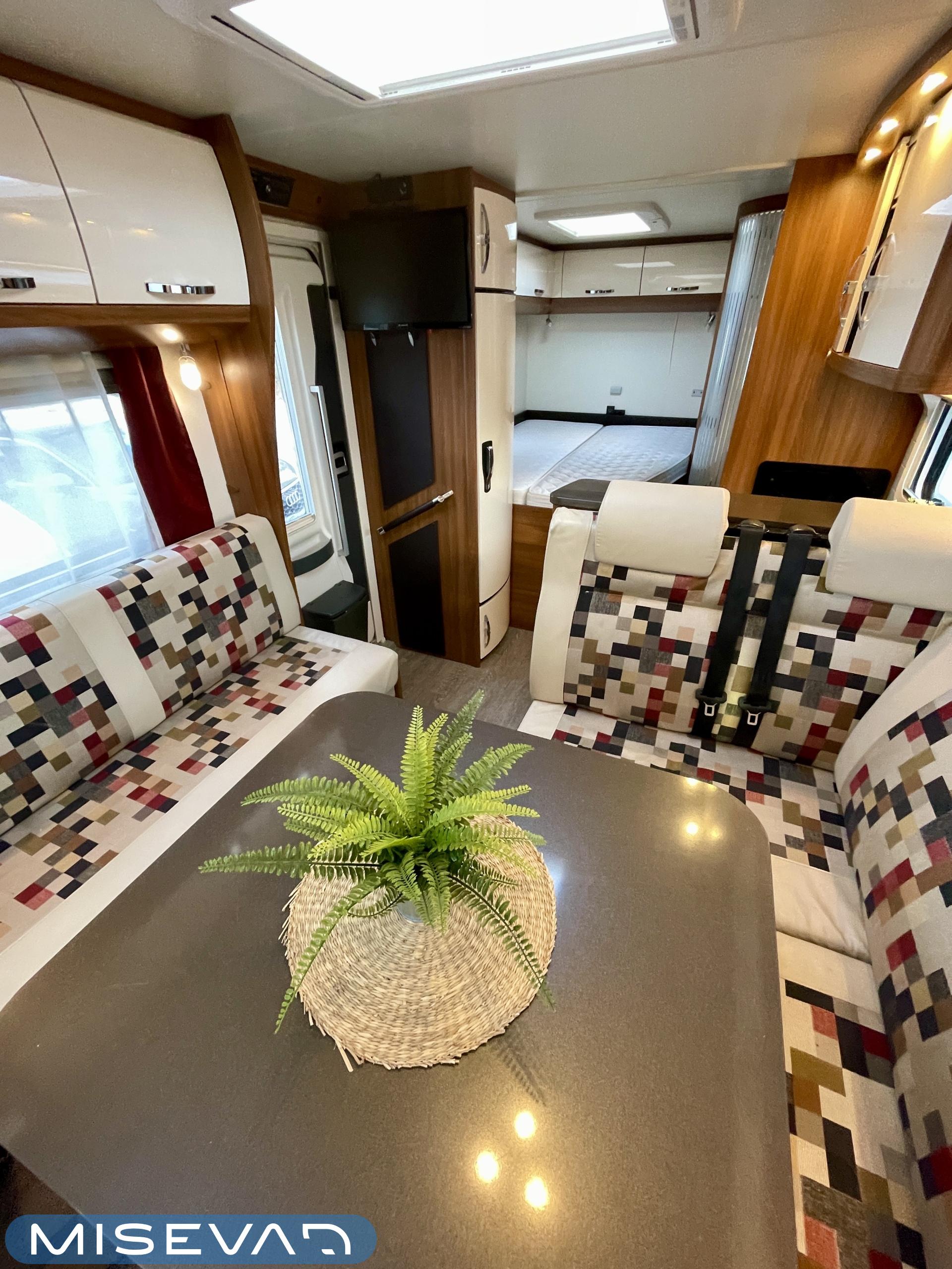 Truma, ABS-jarrut, Airbag, Eristetty harmaavesisäiliö, Jääkaappi, Kasetti WC, Kasettiverhot, Kattoluukku, Liesi, Lämminvesiboileri, Markiisi, Navigaattori, Ohjaustehostin, Pakastelokero, Parivuode, Pesuallas, Pysäköintikamera, Pysäköintitutka, Pyöräteline, Radio, Suihku, Sähkökäyttöiset ikkunat, Sähköpeilit, Sähkörappu, Turbo, Vakionopeudensäädin, Ilmastointi (ohjaamo), Kesärenkaat, ohjaamon kasettiverhot, jenkkijääkaappi, televisio, Multimedialaite (sis. p-kamera, navi, soitin, bluetooth, handsfree), Asuinosan hyttysovi/verho