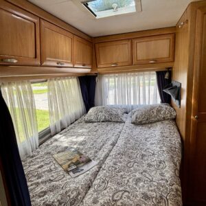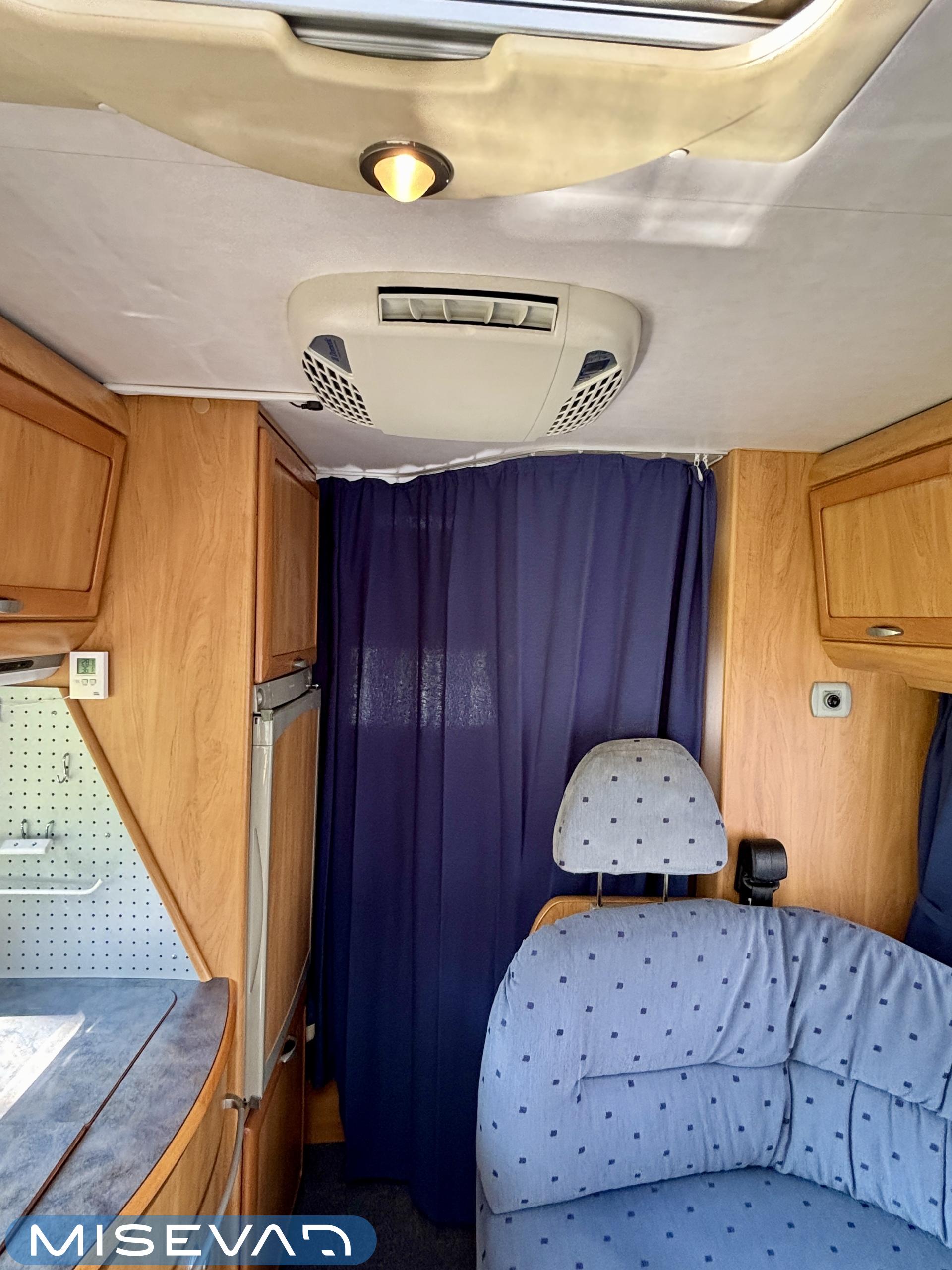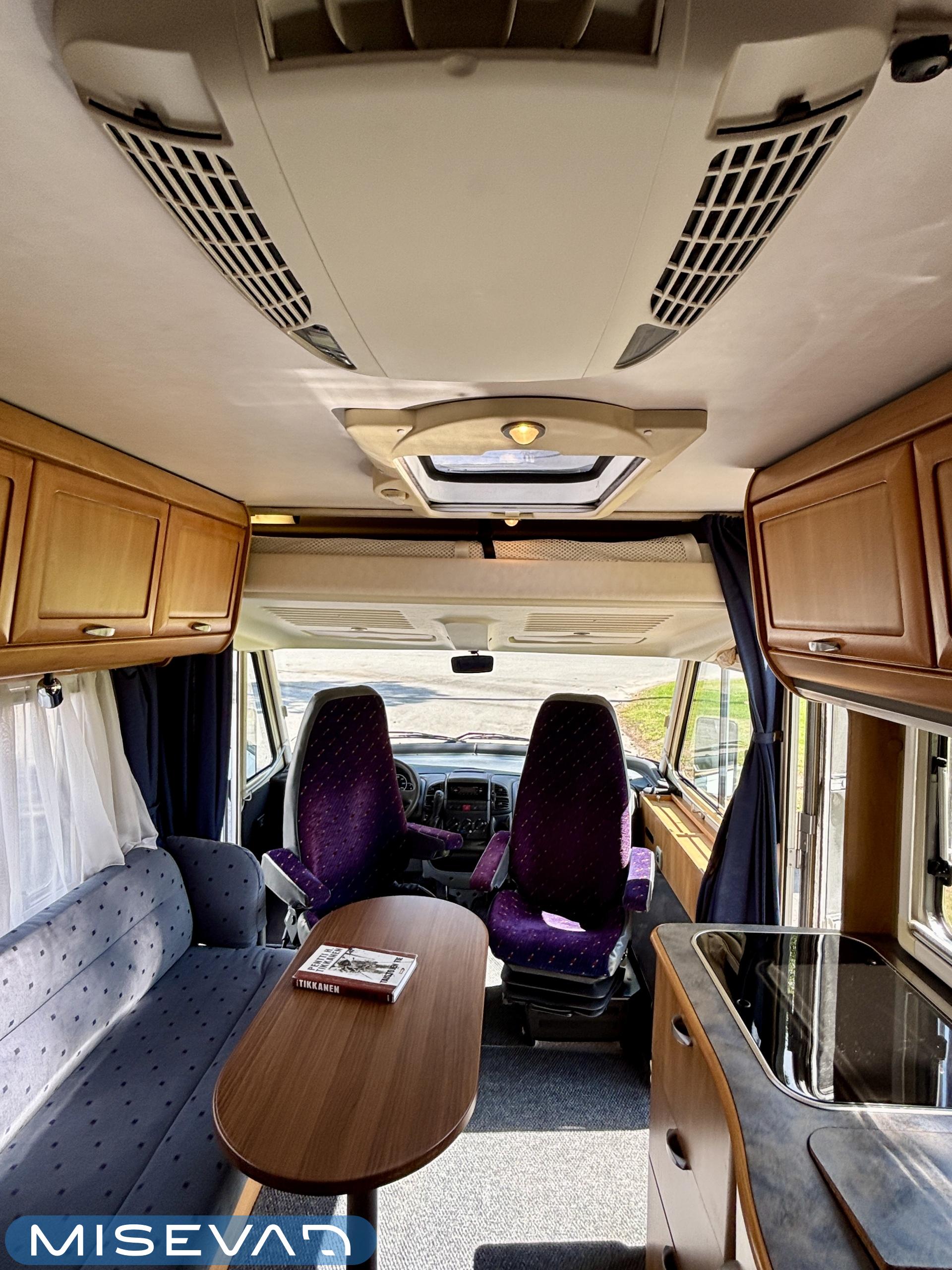 Truma, Aurinkopaneeli, Eristetty harmaavesisäiliö, Jääkaappi, Kasetti WC, Kasettiverhot, Kattoluukku, Lattiamatot asunto-osassa, Liesi, Lämminvesiboileri, Ohjaustehostin, Pakastelokero, Parivuode, Pesuallas, Radio, Suihku, Sähkörappu, Turbo, Vetokoukku, Ilmastointi (asuintila), Webasto/Eber, Kesärenkaat, Invertteri, laskuvuode, pullonvaihtaja