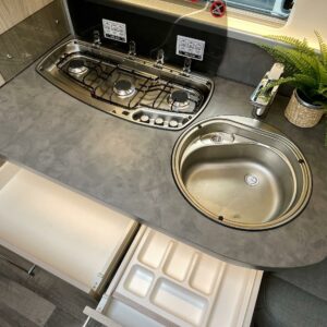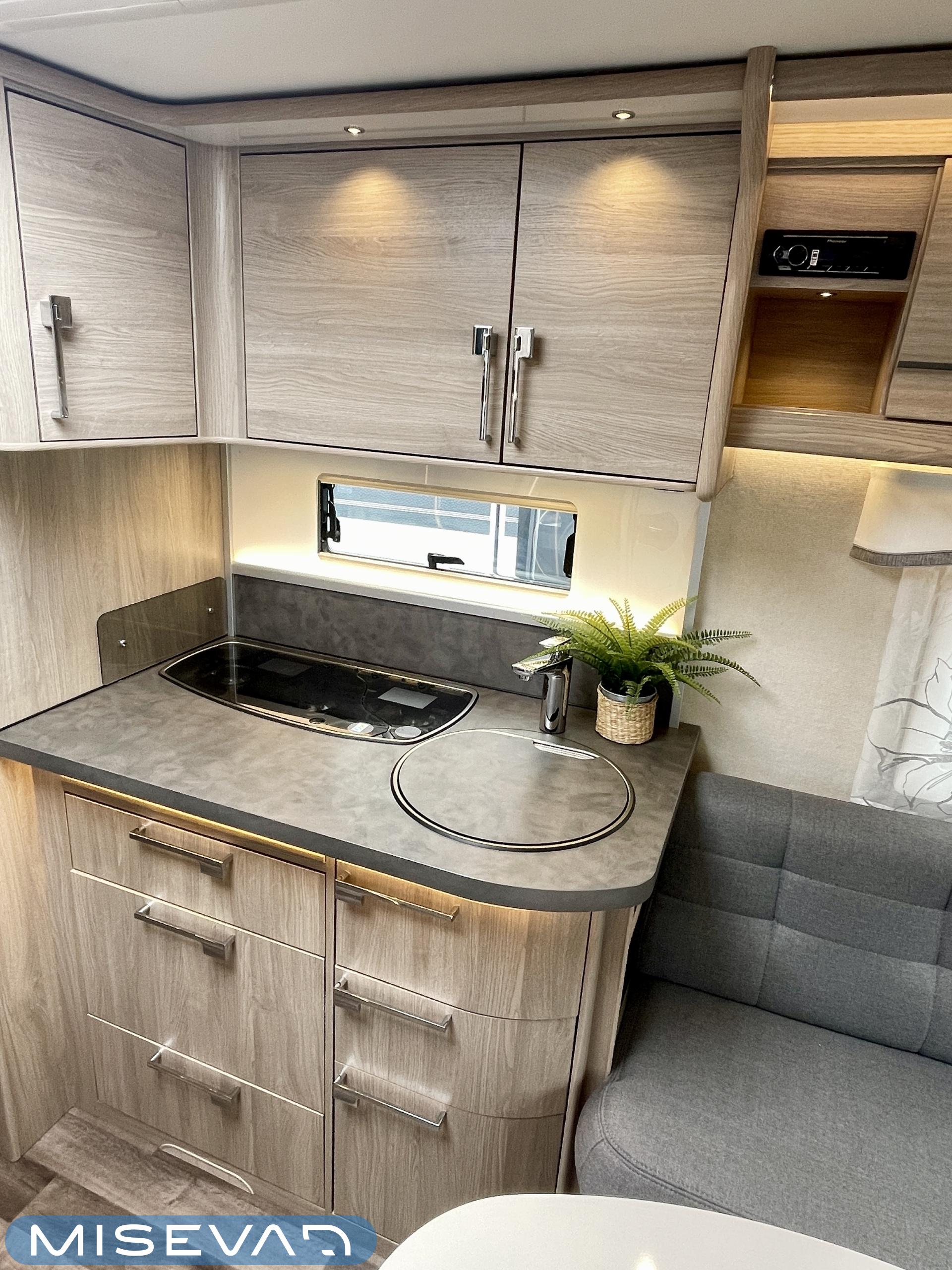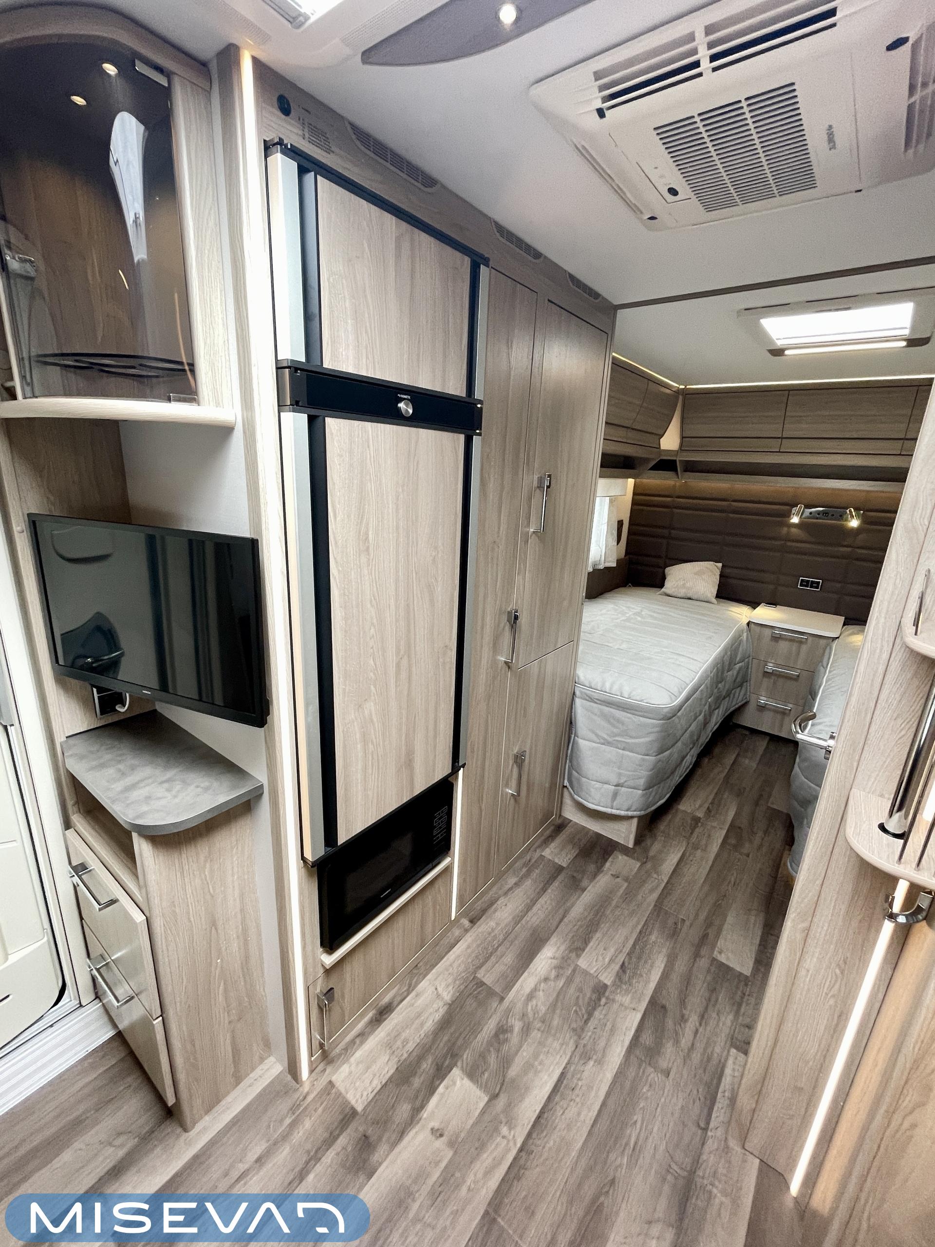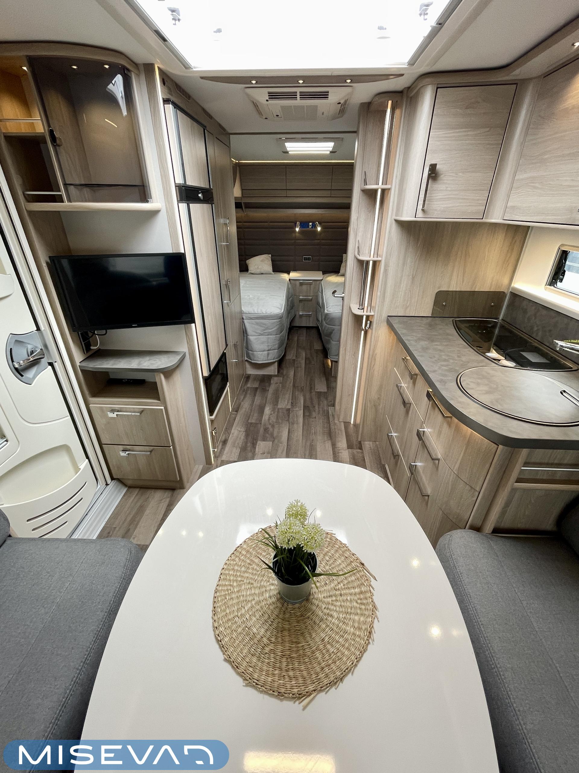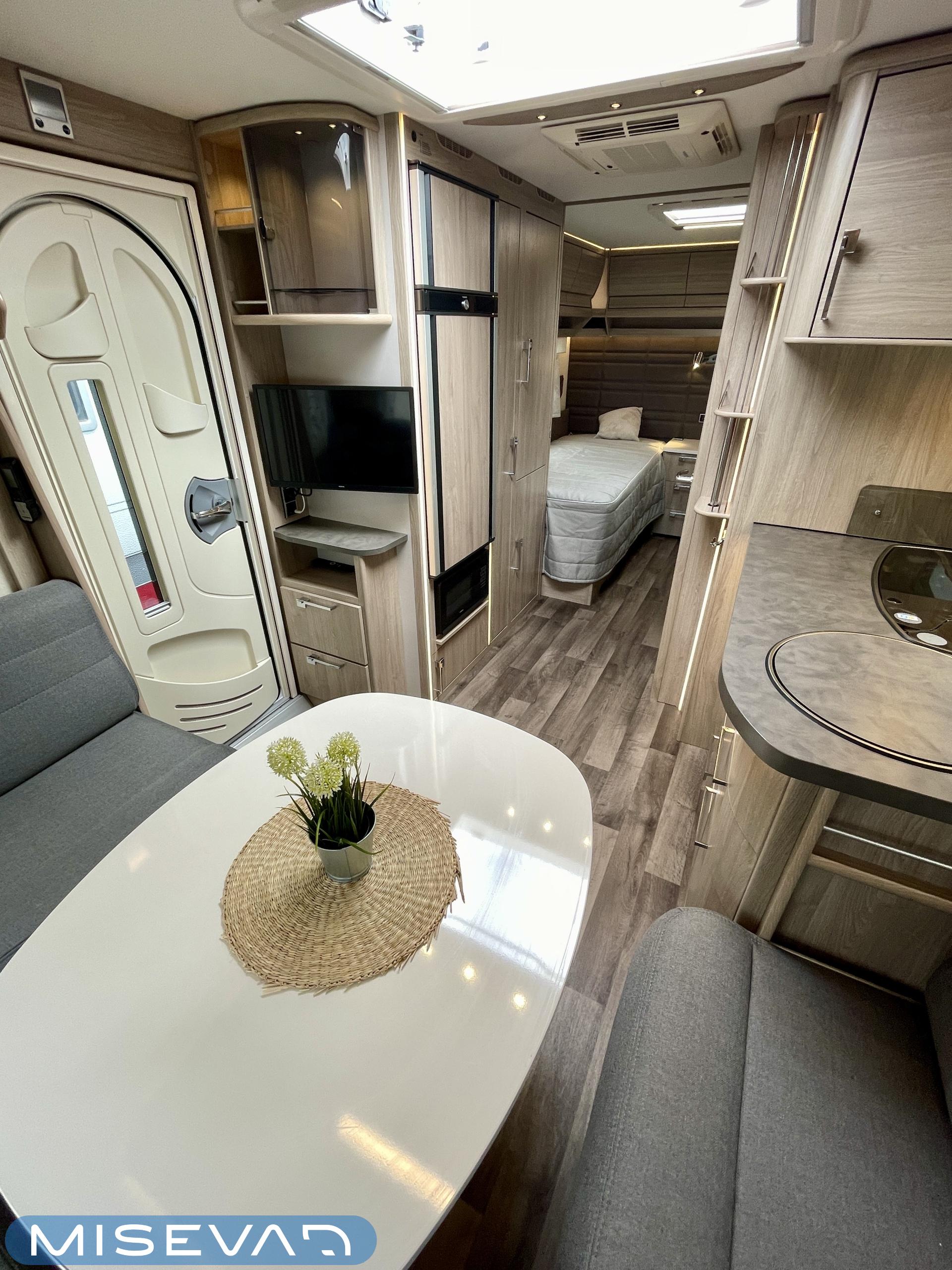Pesuallas, Pakastelokero, Markiisi, Jääkaappi, Erillisvuoteet, Alde- nestekiertoinen keskuslämmitys, Lattialämmitys, Lämminvesiboileri, Liesi, Radio, Sähköpatruuna, TV-antenni tai lautasantenni, Tukijalat, Kattoluukku, Polkupyöräteline, kwh-mittari, televisioteline, televisio, kaasun ulosotto, liesituuletin, jenkkijääkaappi, 1 x kevytmet.vanteet, Mikroaaltouuni, Lattiamatot asunto-osassa, Lattialämmitys (nestekierto), Ilmastointi (asuintila), Asuinosan hyttysovi/verho, Eristetty harmaavesisäiliö, harmaavesisäiliön lämmitys, sähkön ulosotto, Pesuhuoneessa pyyhekuivain, Moottorivuoteet