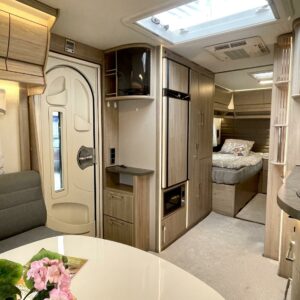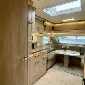 Alde, CD-soitin, Erillisvuoteet, Ilmastointi: Automaattinen, Jääkaappi, Kasetti WC, Kattoluukku, Lattialämmitys, Lämminvesiboileri, Markiisi, Mikroaaltouuni, Nestekiertolämmitys, Pakastelokero, Radio, Sähköpatruuna, USB, TV-antenni tai lautasantenni, Erikoisvanteet, Kasettiverhot, Liesi, Pesuallas, Tukijalat, Lattialämmitys (nestekierto), Ilmastointi (asuintila), kwh-mittari, Eristetty harmaavesisäiliö, harmaavesisäiliön lämmitys, jenkkijääkaappi, liesituuletin, kaasun ulosotto, sähkön ulosotto, Asuinosan hyttysovi/verho, Aurinkopaneeli