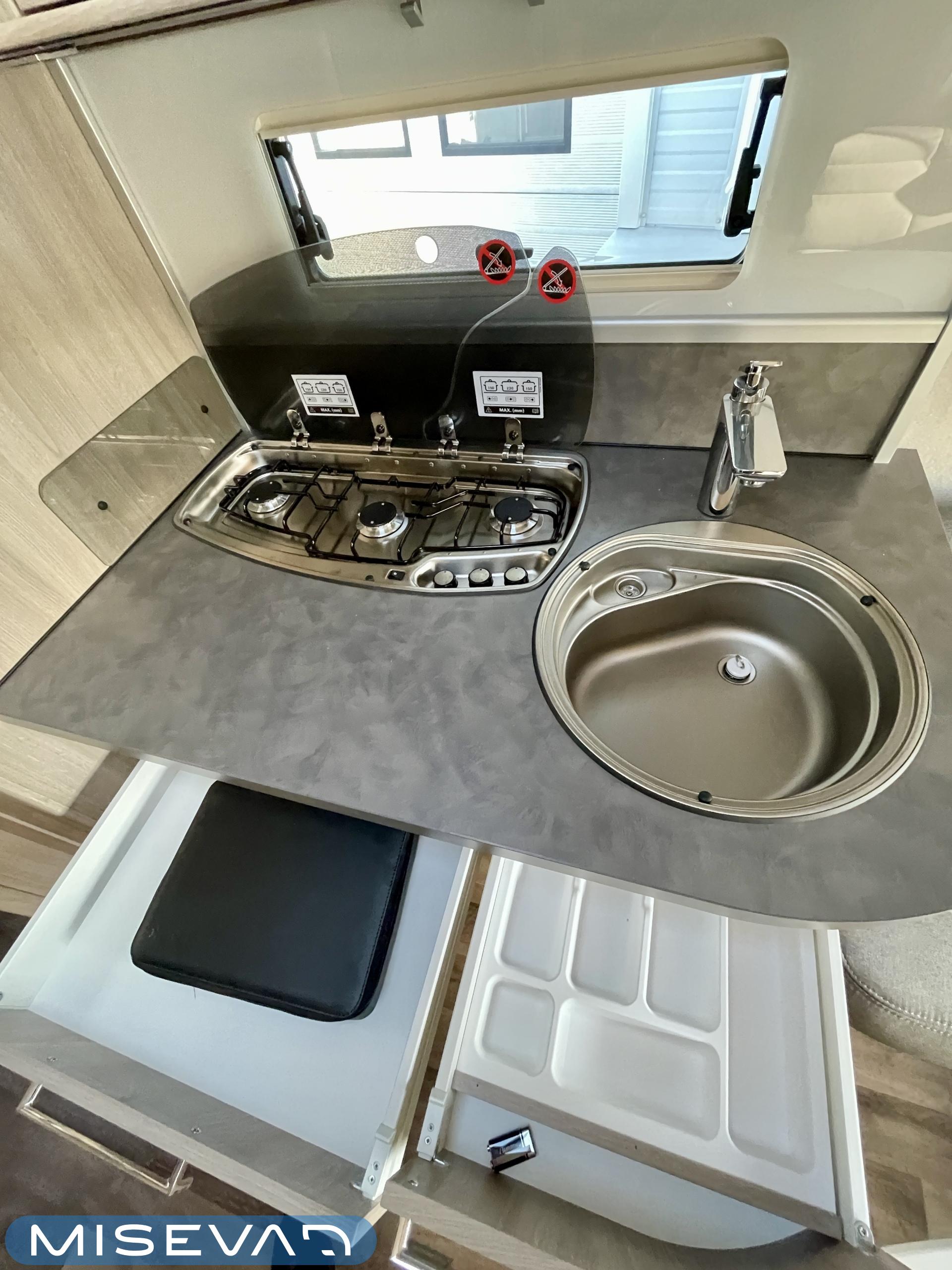 Alde, Sähköpatruuna, Erikoisvanteet, Eristetty harmaavesisäiliö, Jääkaappi, Kasetti WC, Kasettiverhot, Kattoluukku, Lattialämmitys, Liesi, Lämminvesiboileri, Mikroaaltouuni, Nestekiertolämmitys, Pakastelokero, Parivuode, Pesuallas, Radio, TV-antenni tai lautasantenni, Tukijalat, USB, Lattialämmitys (nestekierto), kwh-mittari, harmaavesisäiliön lämmitys, jenkkijääkaappi, liesituuletin, kaasun ulosotto, sähkön ulosotto, televisioteline, Asuinosan hyttysovi/verho, Mukavuuspaketti