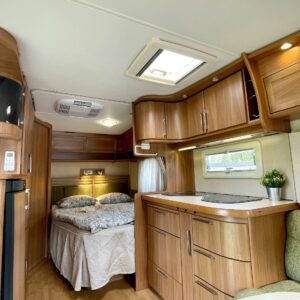 Kahdet renkaat, Tukijalat, Pesuallas, Pakastelokero, Mover- vaununsiirrin, Markiisi, Liesi, Kattoluukku, Kasettiverhot, Kasetti- WC, Jääkaappi, Alde- nestekiertoinen keskuslämmitys, Sähköpatruuna, Radio, Ilmastointi: Manuaalinen, kwh-mittari, Kasetti WC, Suihku, Parivuode, Lämminvesiboileri