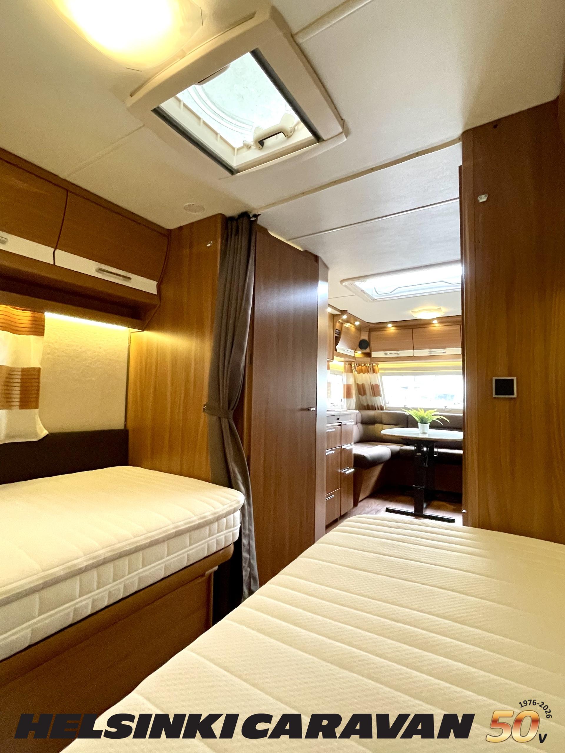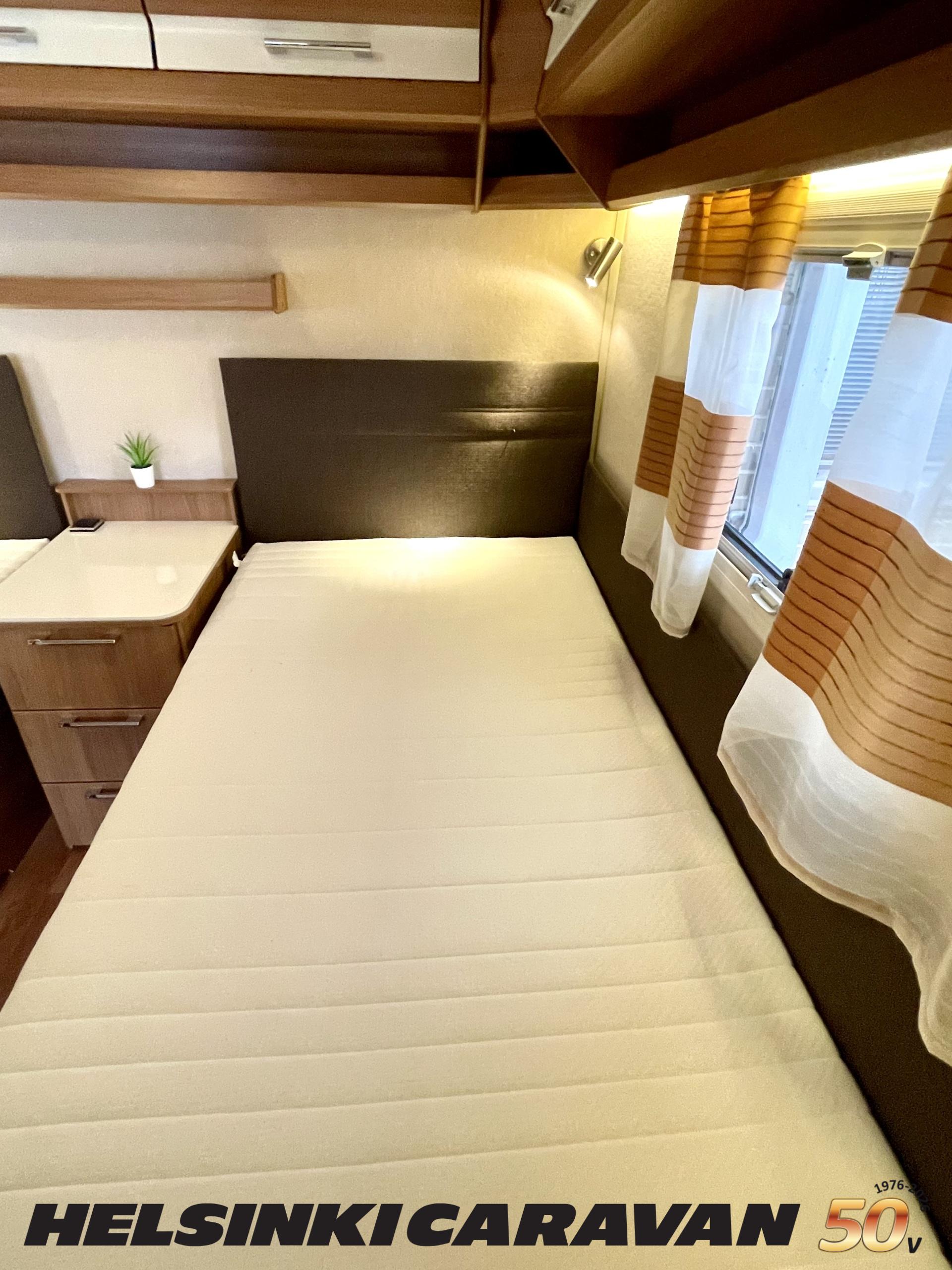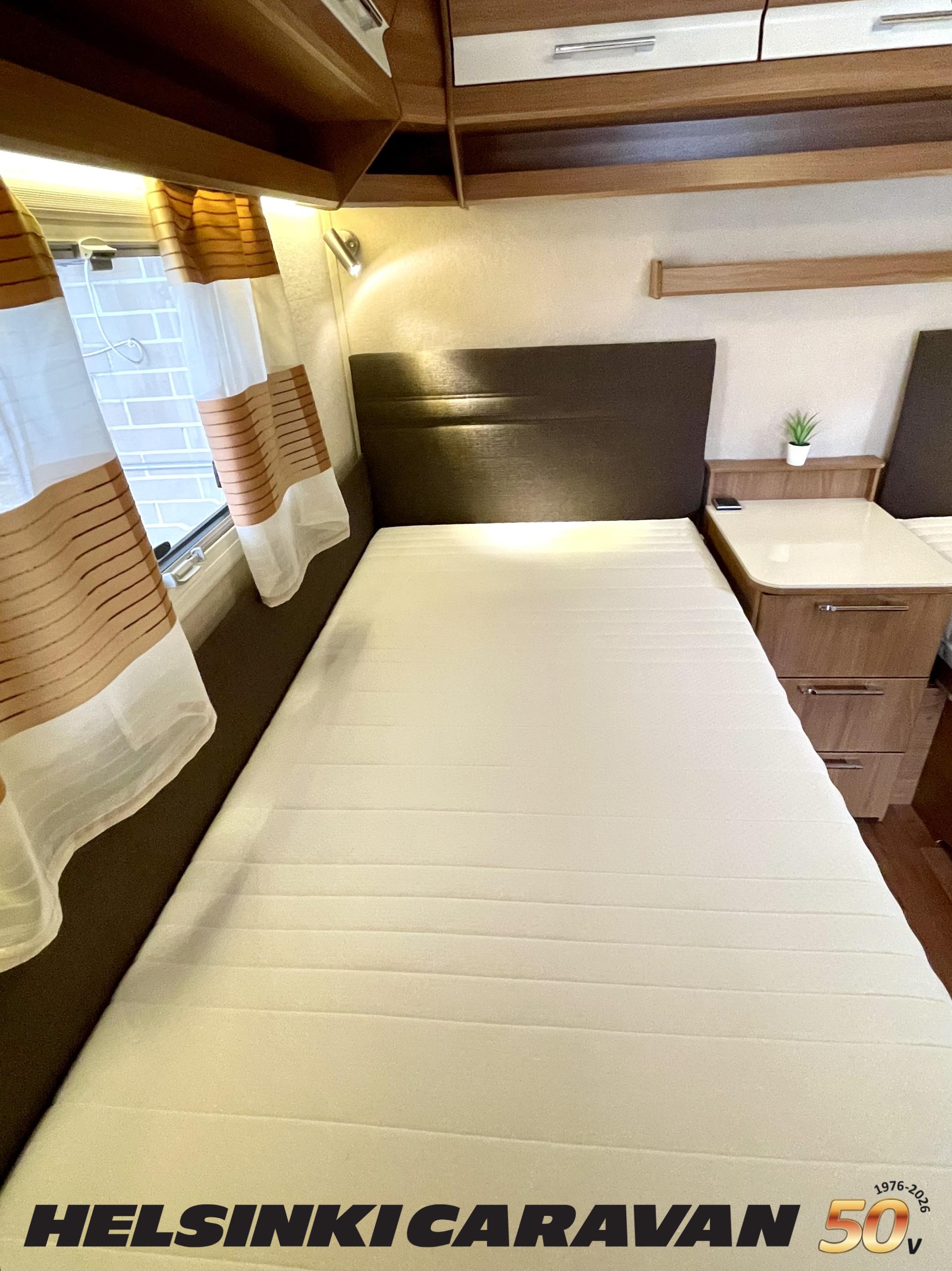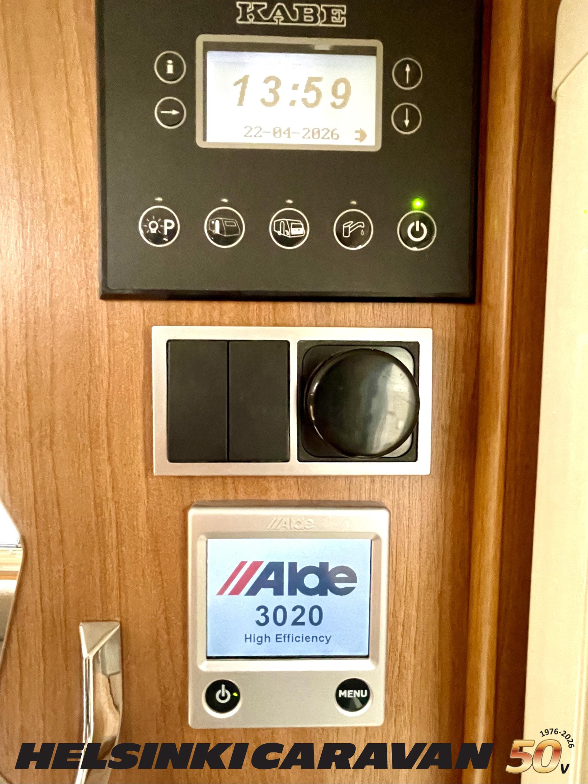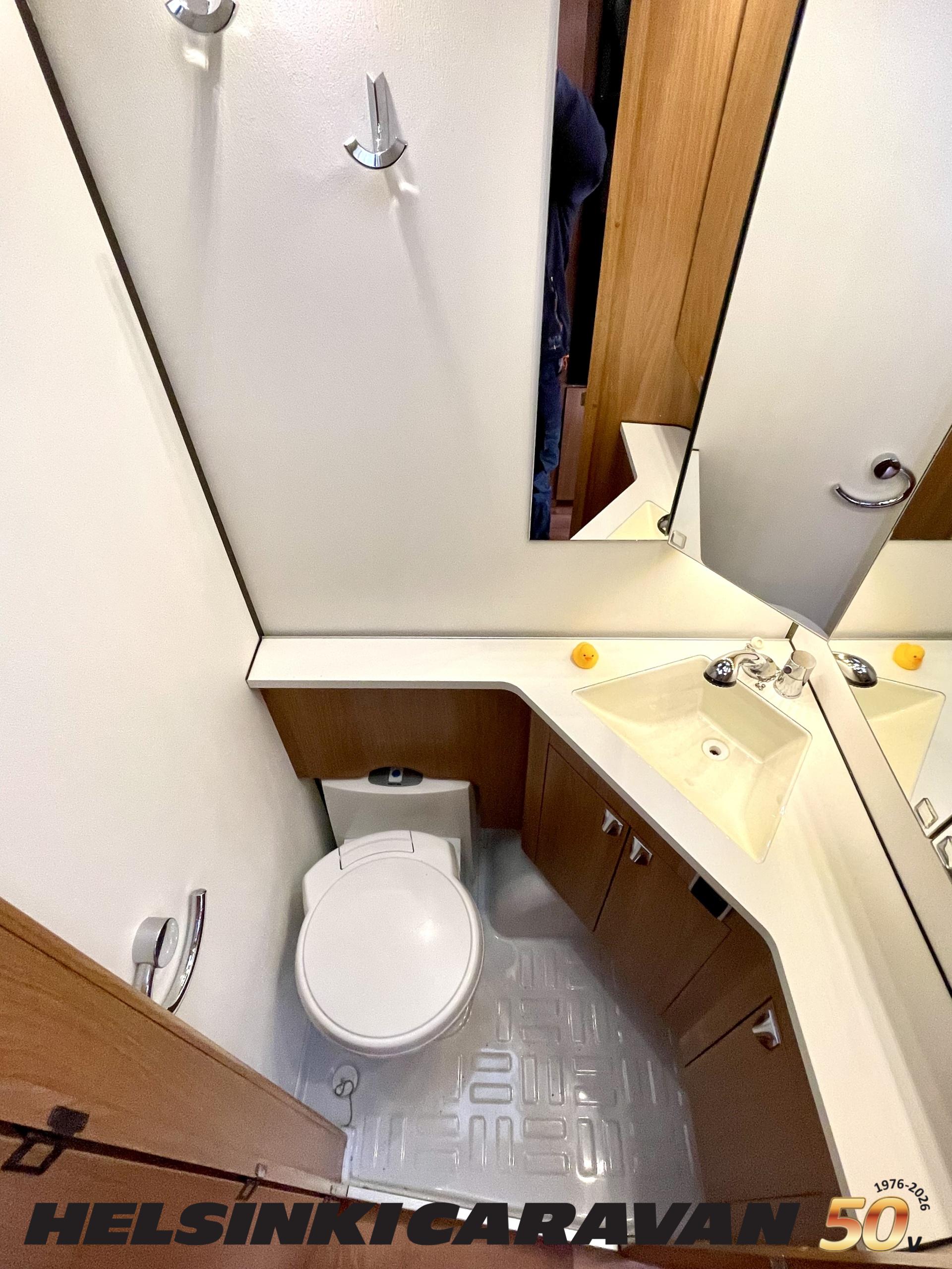 Alde, Nestekiertolämmitys, Sähköpatruuna, Eristetty harmaavesisäiliö, Lattialämmitys (nestekierto), Erillisvuoteet, Mover, Erikoisvanteet, Jääkaappi, Kasetti WC, Kasettiverhot, Kattoluukku, Lattialämmitys, Liesi, Lämminvesiboileri, Pakastelokero, Pesuallas, Radio, Suihku, Suksiluukku, TV-antenni tai lautasantenni, Tukijalat, Kesärenkaat, 1 x kevytmet.vanteet, kaasun ulosotto, sähkön ulosotto, pullonvaihtaja, liesituuletin, Asuinosan hyttysovi/verho