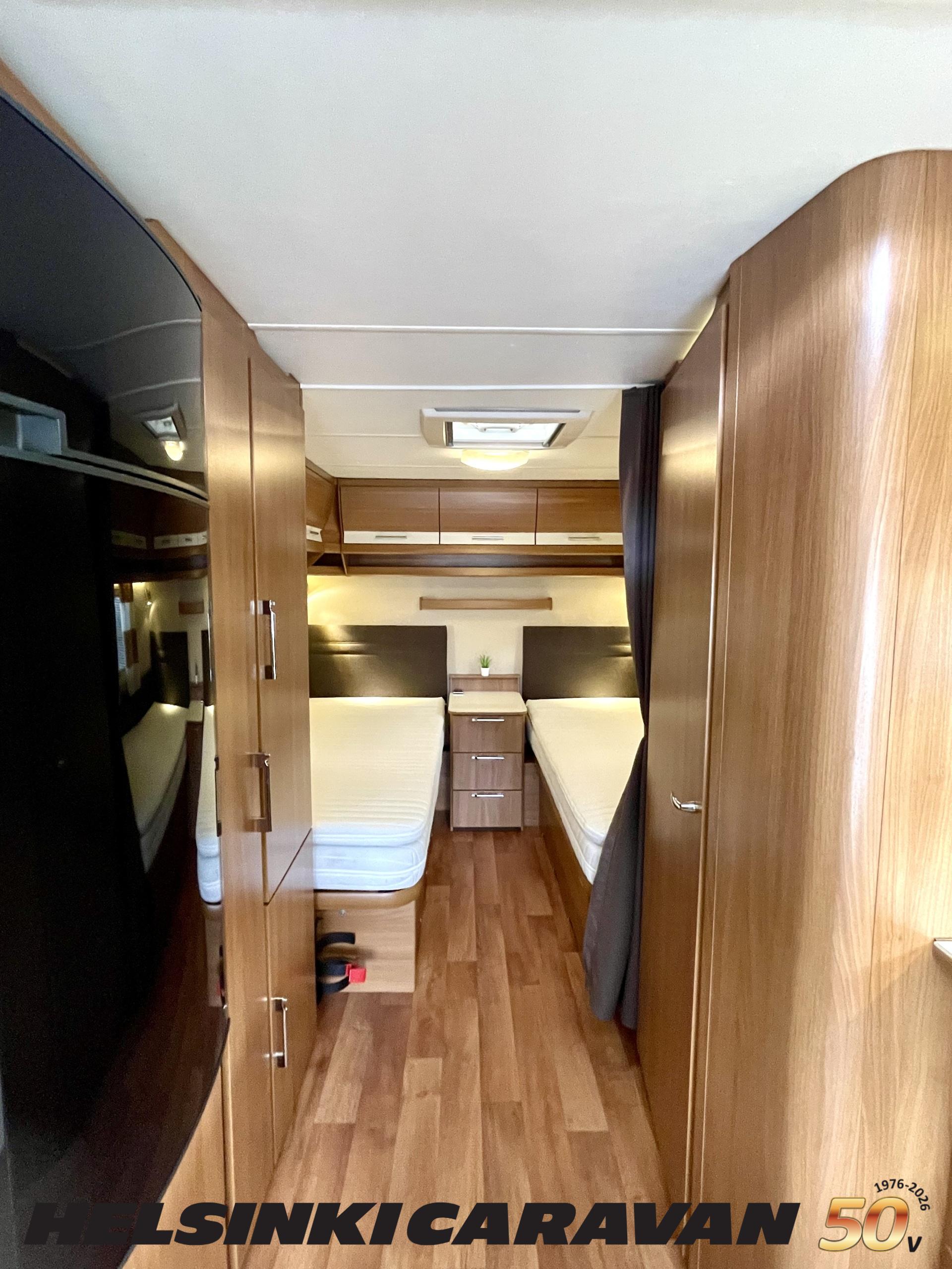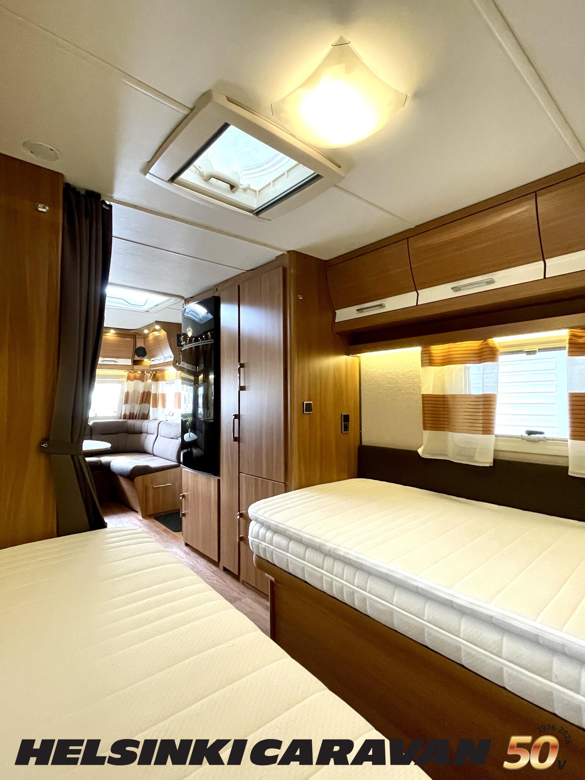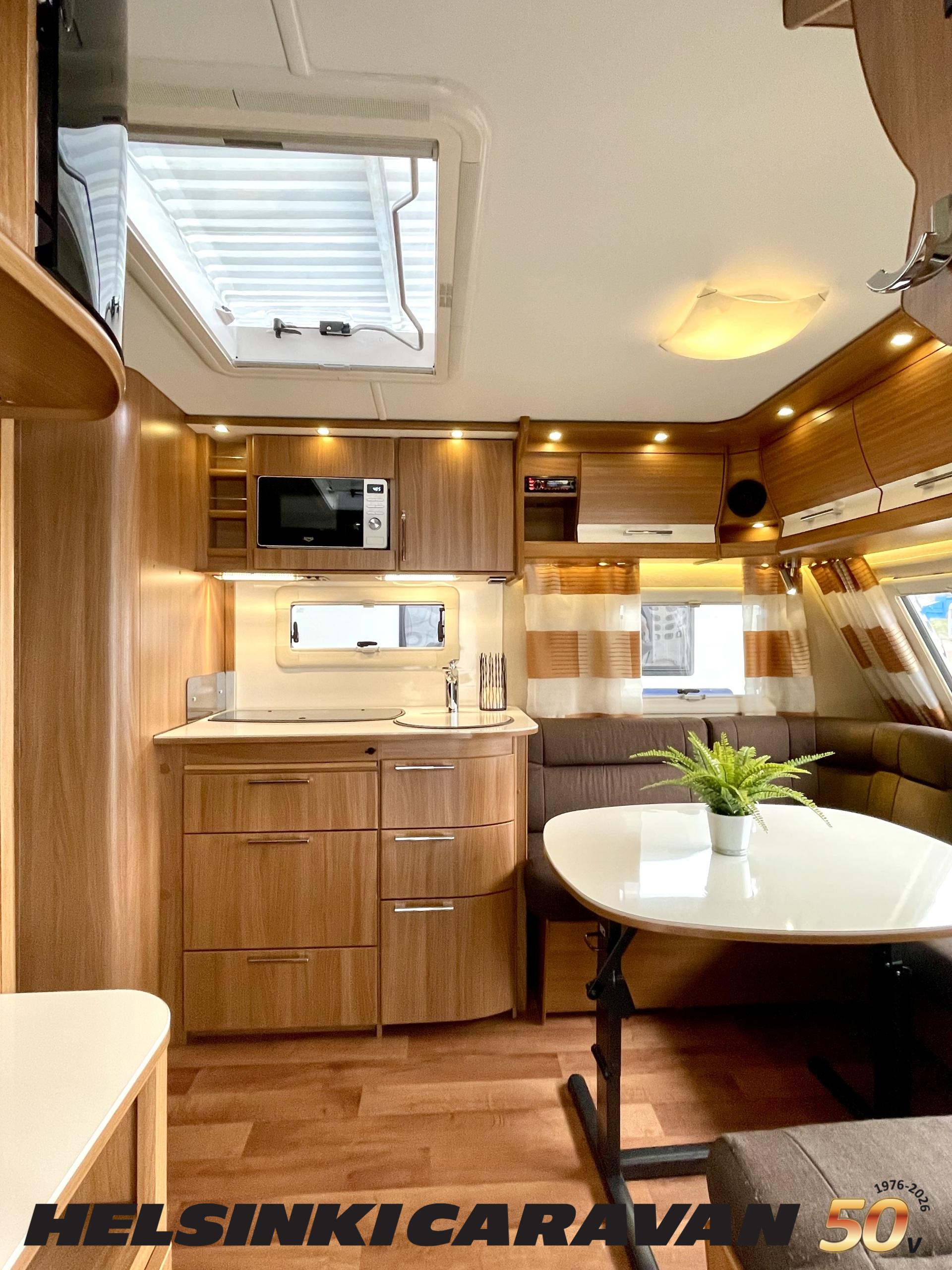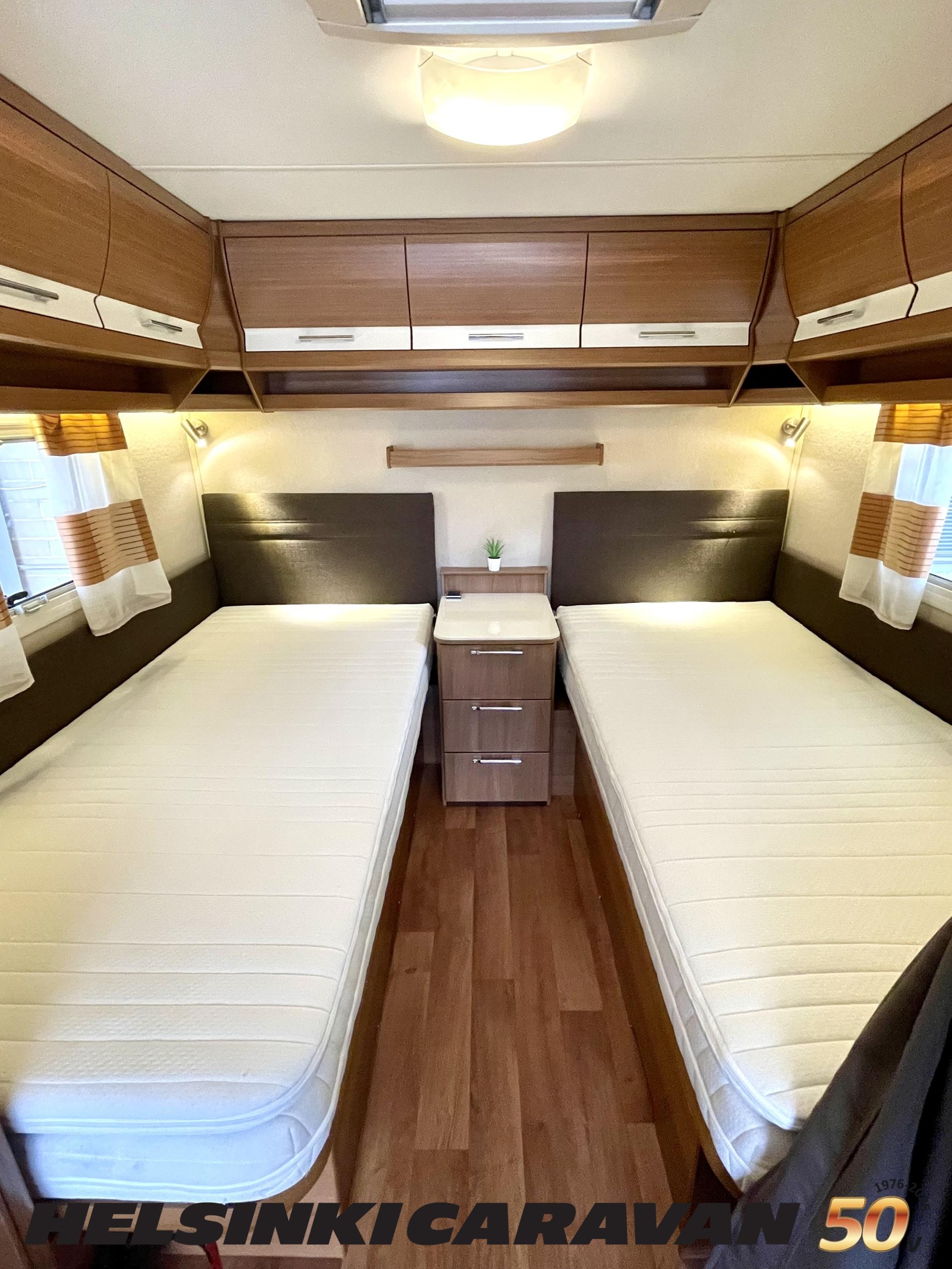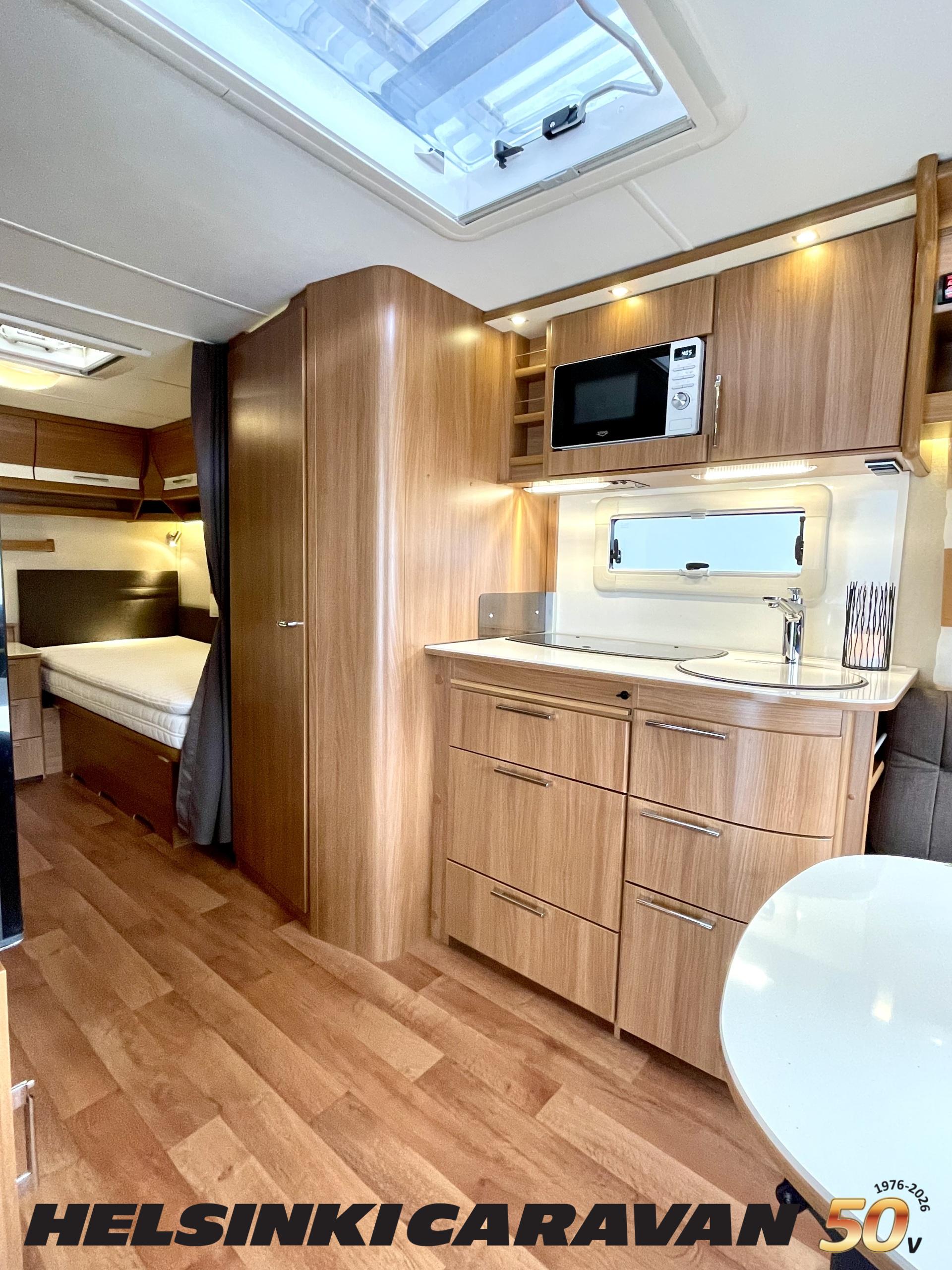 Alde, Nestekiertolämmitys, Sähköpatruuna, Eristetty harmaavesisäiliö, Lattialämmitys (nestekierto), Erillisvuoteet, Mover, Erikoisvanteet, Jääkaappi, Kasetti WC, Kasettiverhot, Kattoluukku, Lattialämmitys, Liesi, Lämminvesiboileri, Pakastelokero, Pesuallas, Radio, Suihku, Suksiluukku, TV-antenni tai lautasantenni, Tukijalat, Kesärenkaat, 1 x kevytmet.vanteet, kaasun ulosotto, sähkön ulosotto, pullonvaihtaja, liesituuletin, Asuinosan hyttysovi/verho