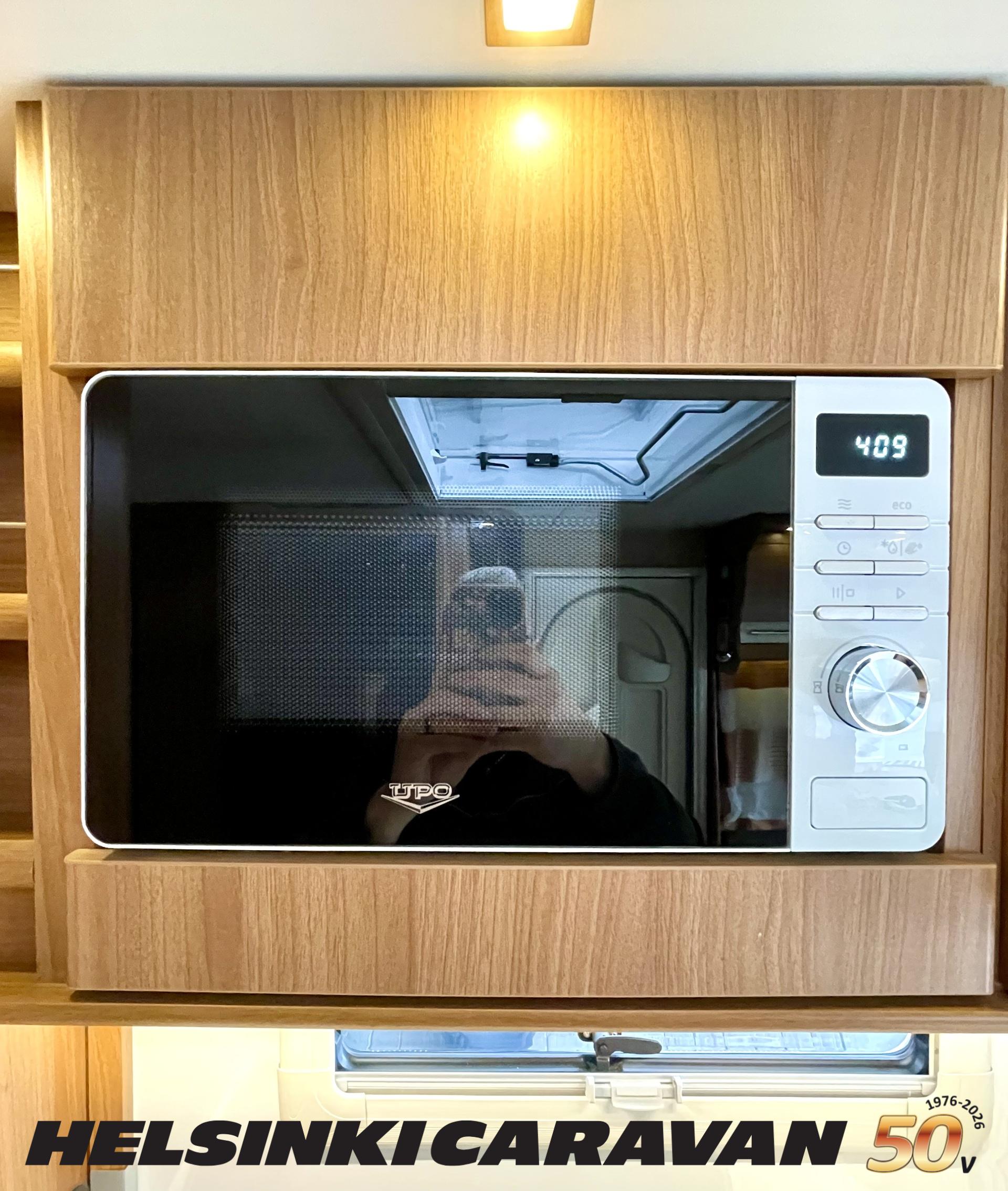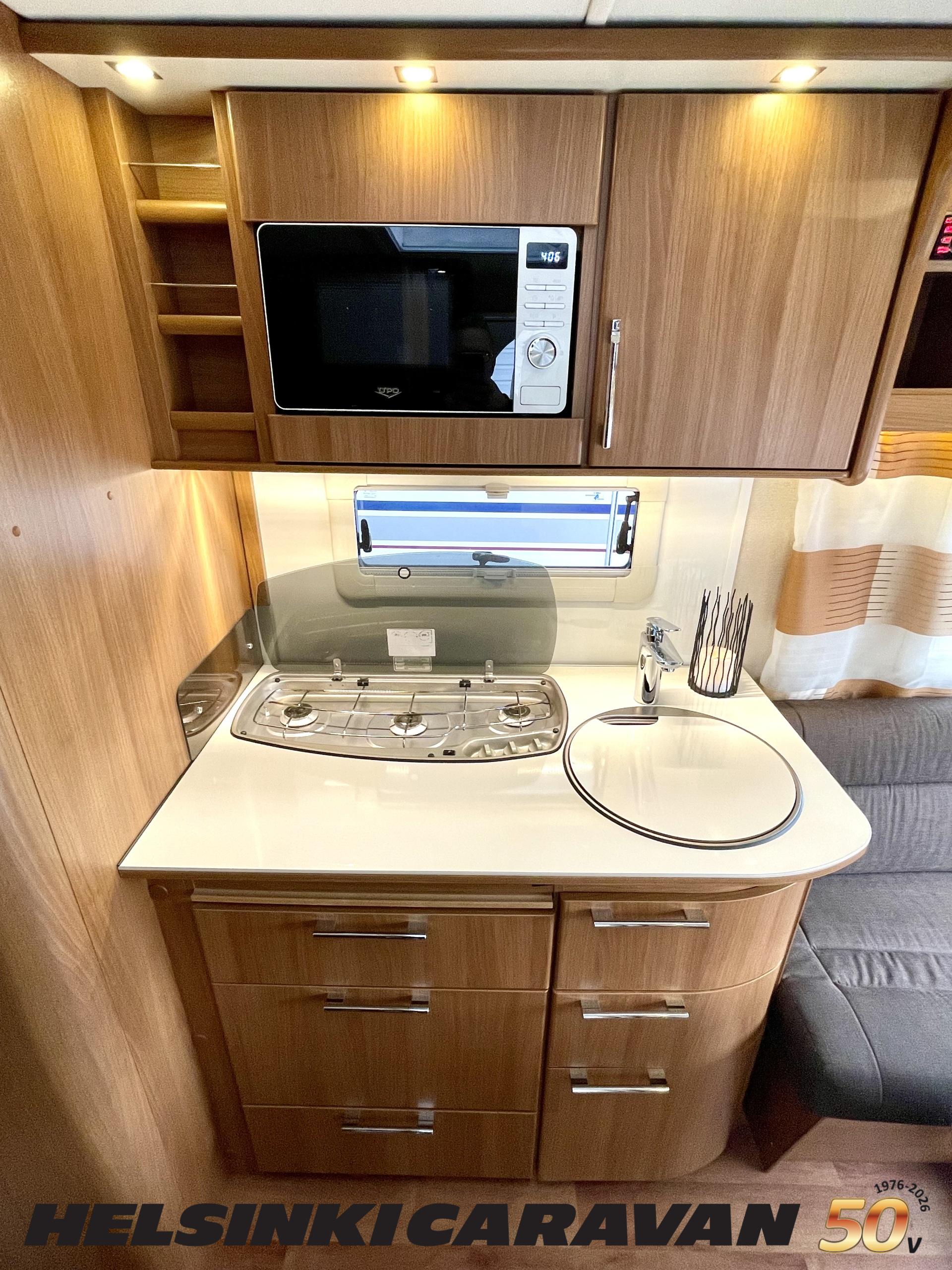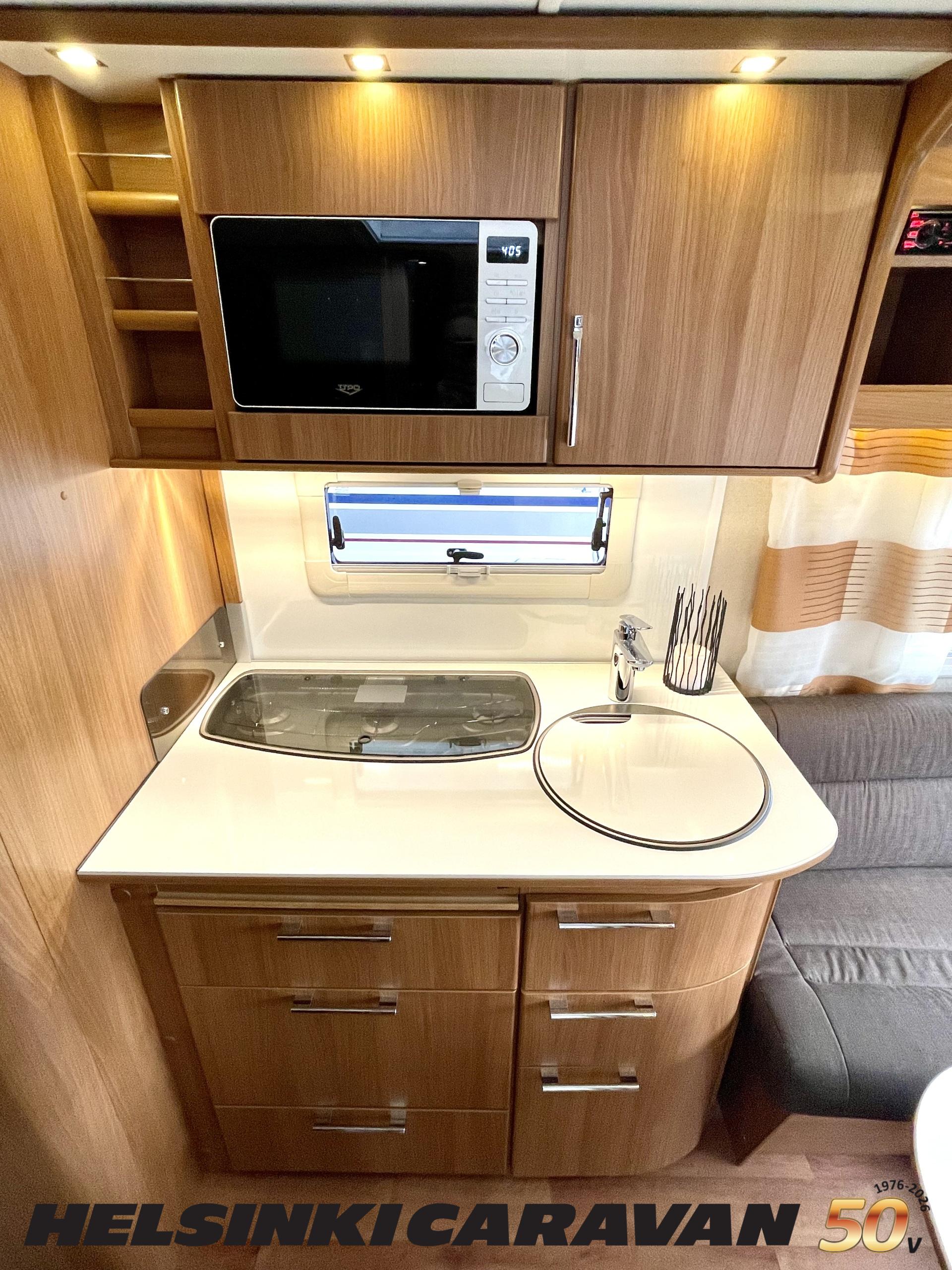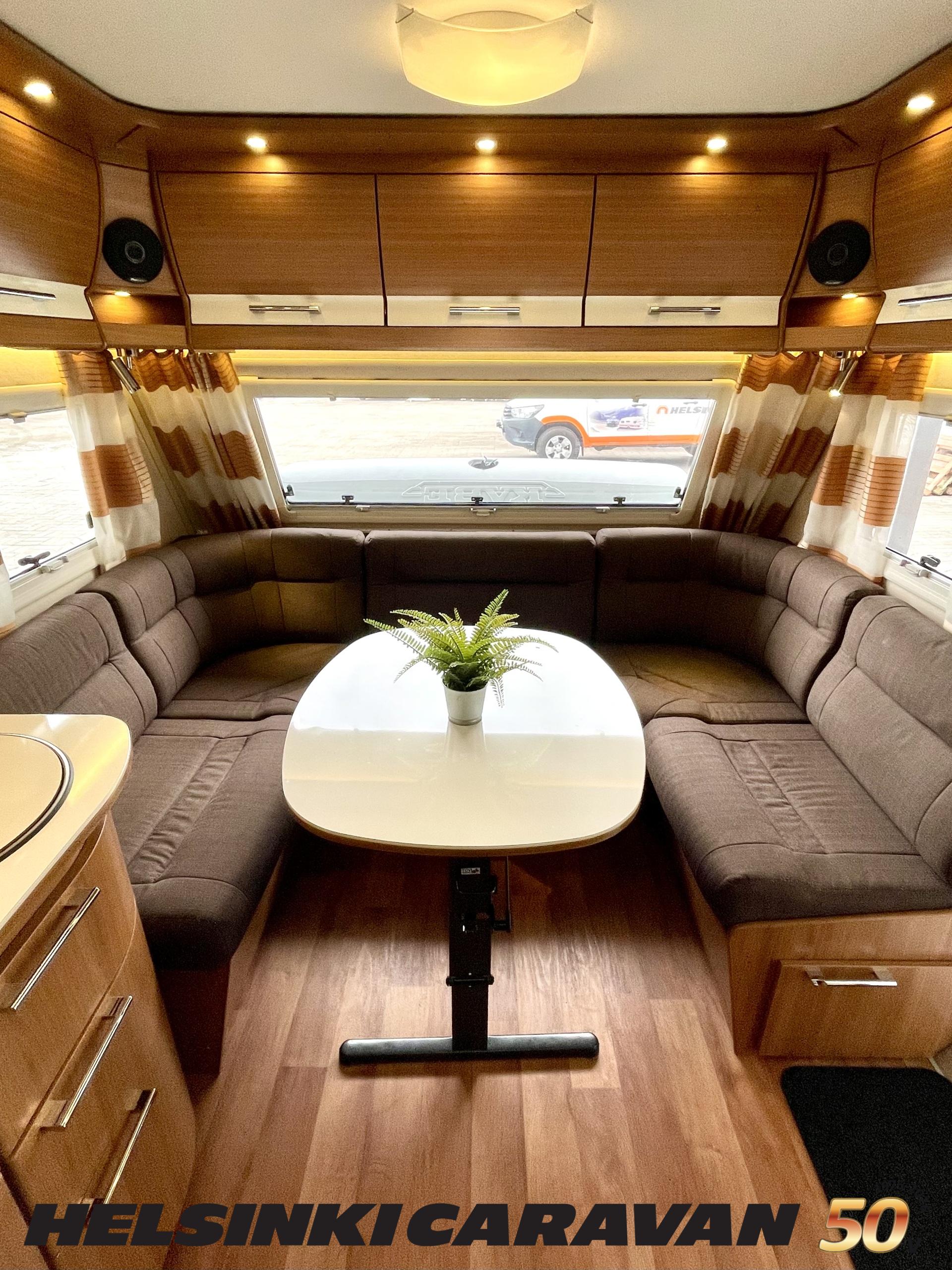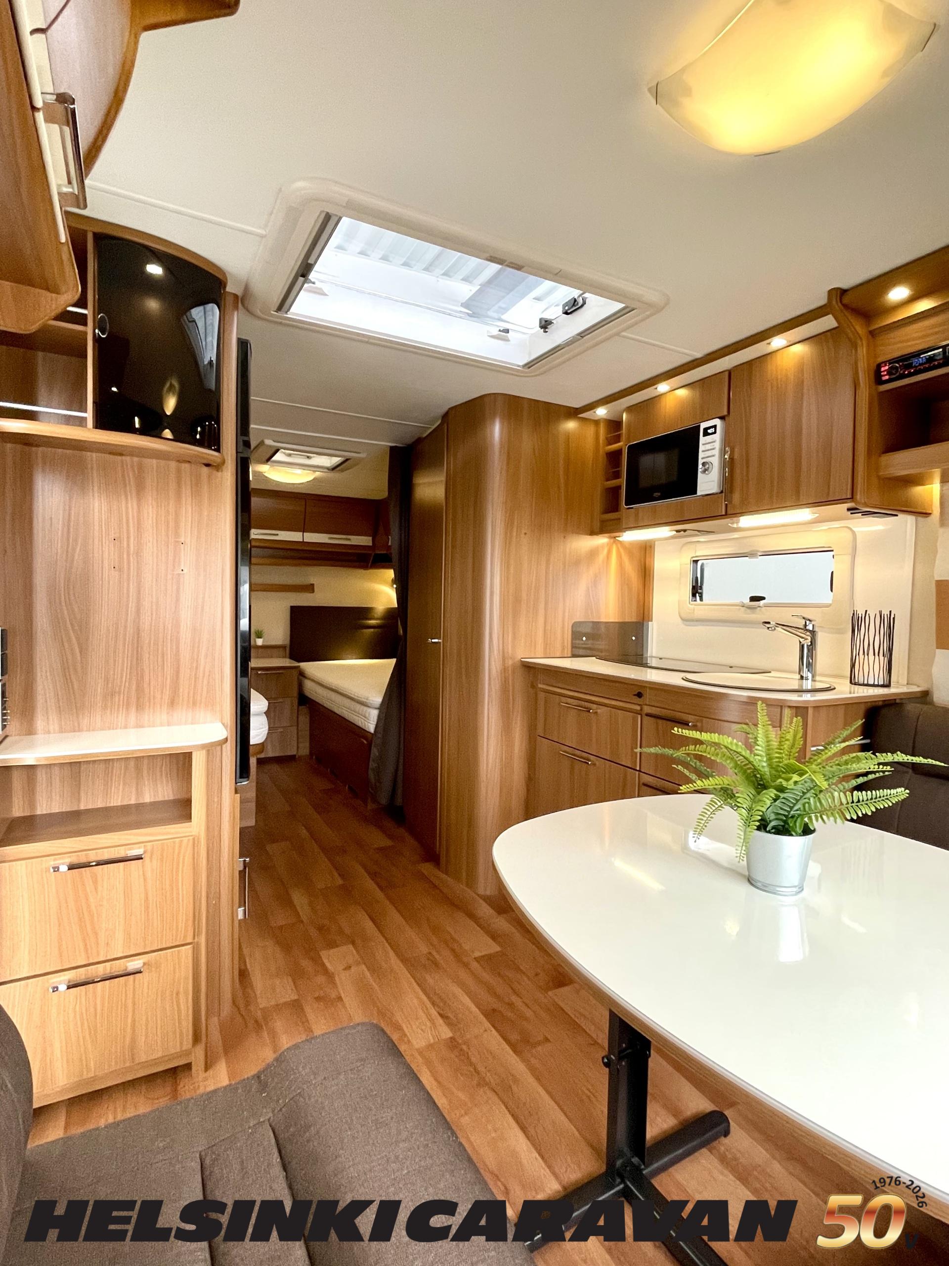 Alde, Nestekiertolämmitys, Sähköpatruuna, Eristetty harmaavesisäiliö, Lattialämmitys (nestekierto), Erillisvuoteet, Mover, Erikoisvanteet, Jääkaappi, Kasetti WC, Kasettiverhot, Kattoluukku, Lattialämmitys, Liesi, Lämminvesiboileri, Pakastelokero, Pesuallas, Radio, Suihku, Suksiluukku, TV-antenni tai lautasantenni, Tukijalat, Kesärenkaat, 1 x kevytmet.vanteet, kaasun ulosotto, sähkön ulosotto, pullonvaihtaja, liesituuletin, Asuinosan hyttysovi/verho