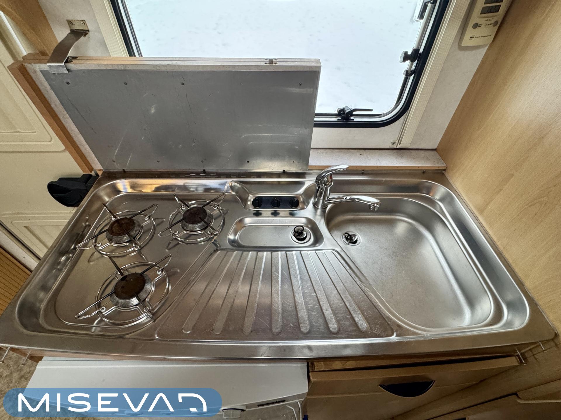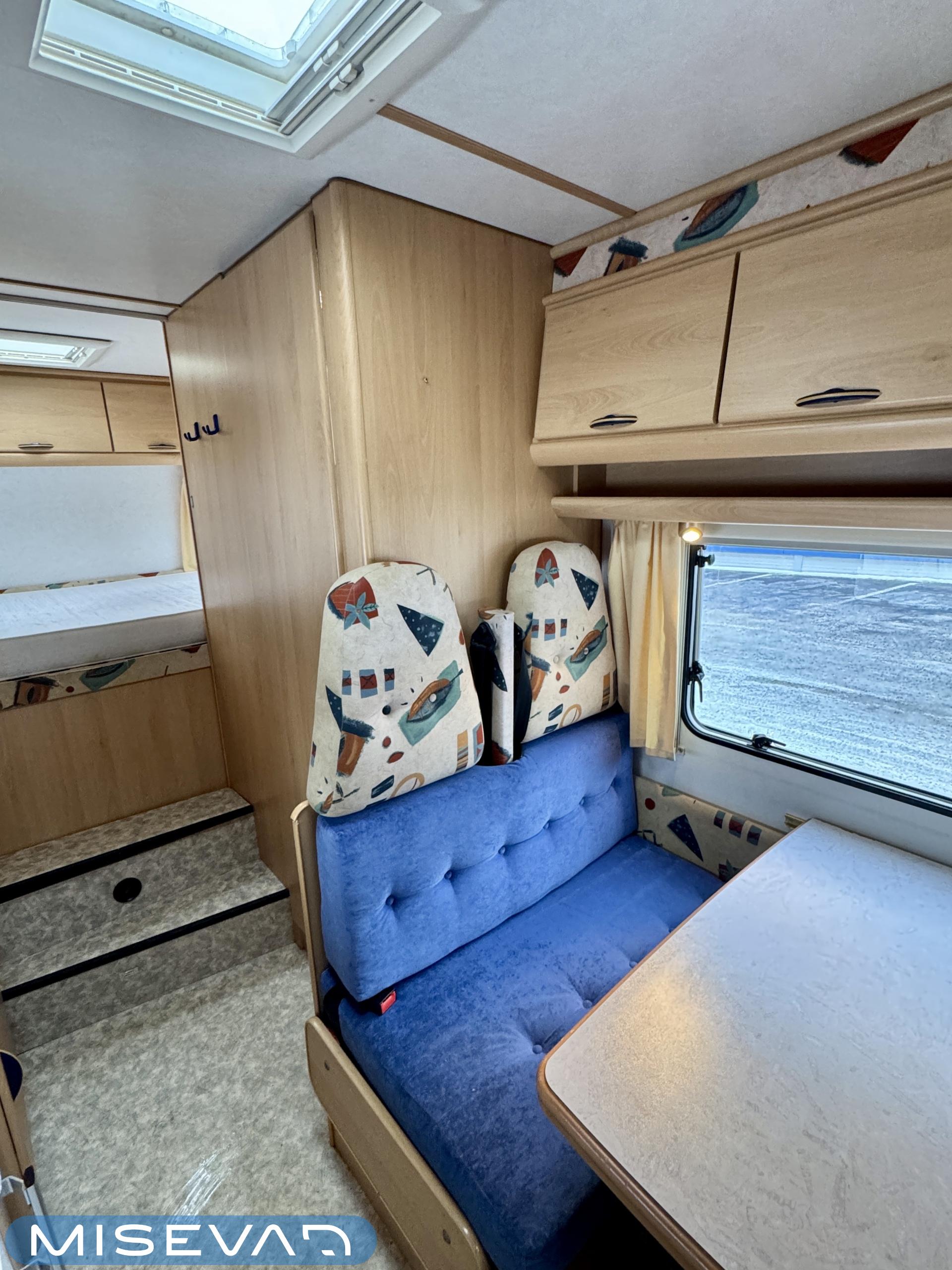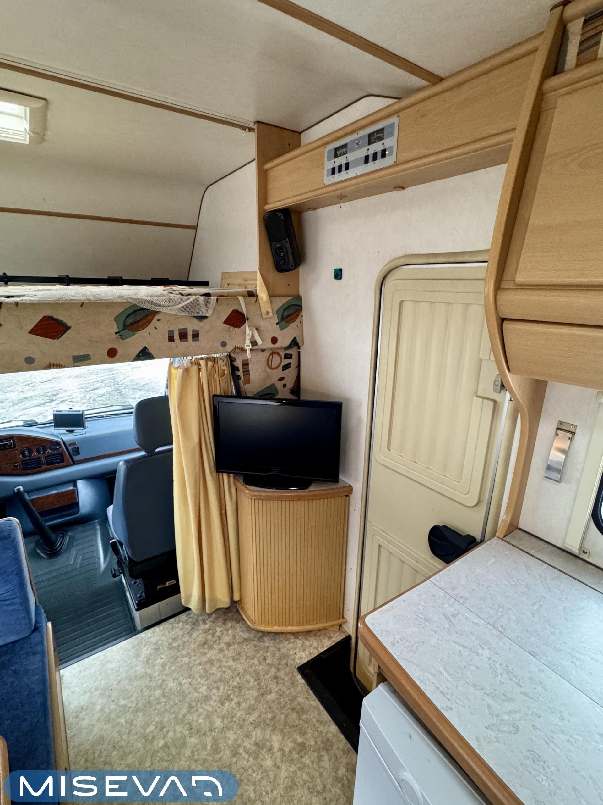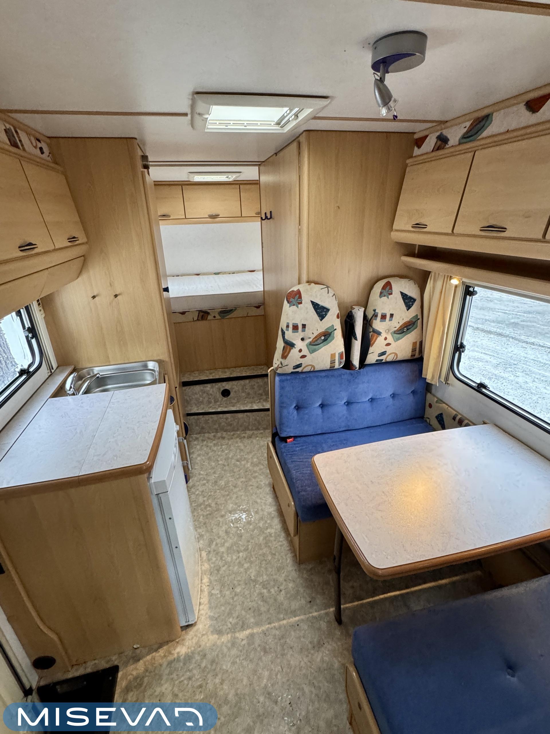CD-soitin, Ilmastointi ajotilassa, Ilmastointi: Manuaalinen, Jääkaappi, Kahdet renkaat, Kasetti WC, Kasettiverhot, Kattoluukku, Keskuslämmitys, Liesi, Lohkolämmitin, Lämminvesiboileri, Markiisi, Ohjaustehostin, Pakastelokero, Parivuode, Pesuallas, Pysäköintikamera, Pyöräteline, Radio, Sisätilanpistoke, Suihku, Trumatic, Vetokoukku, JP-huollot ok, Kesärenkaat, Talvirenkaat(nasta), Polkupyöräteline