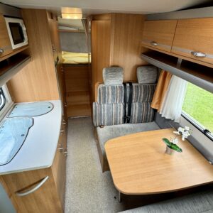 Aurinkopaneeli, Jääkaappi, Kasetti WC, Kasettiverhot, Kattoluukku, Keskuslämmitys, Liesi, Lohkolämmitin, Lämminvesiboileri, Markiisi, Ohjaustehostin, Pakastelokero, Parivuode, Pesuallas, Pysäköintikamera, Radio, Sisätilanpistoke, Suihku, Sähkökäyttöiset ikkunat, Sähköpeilit, Trumatic
