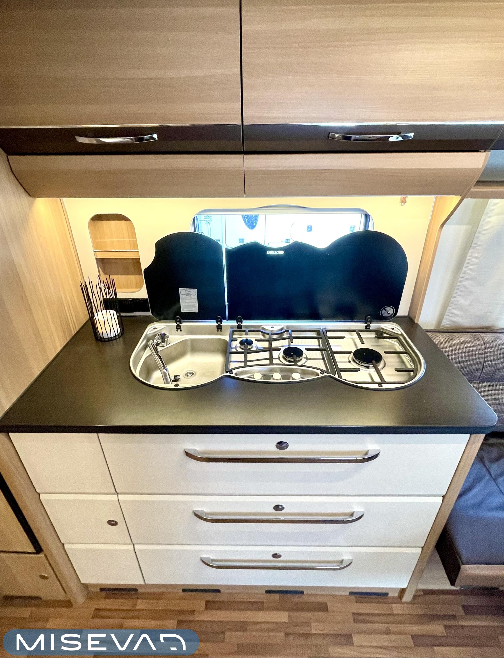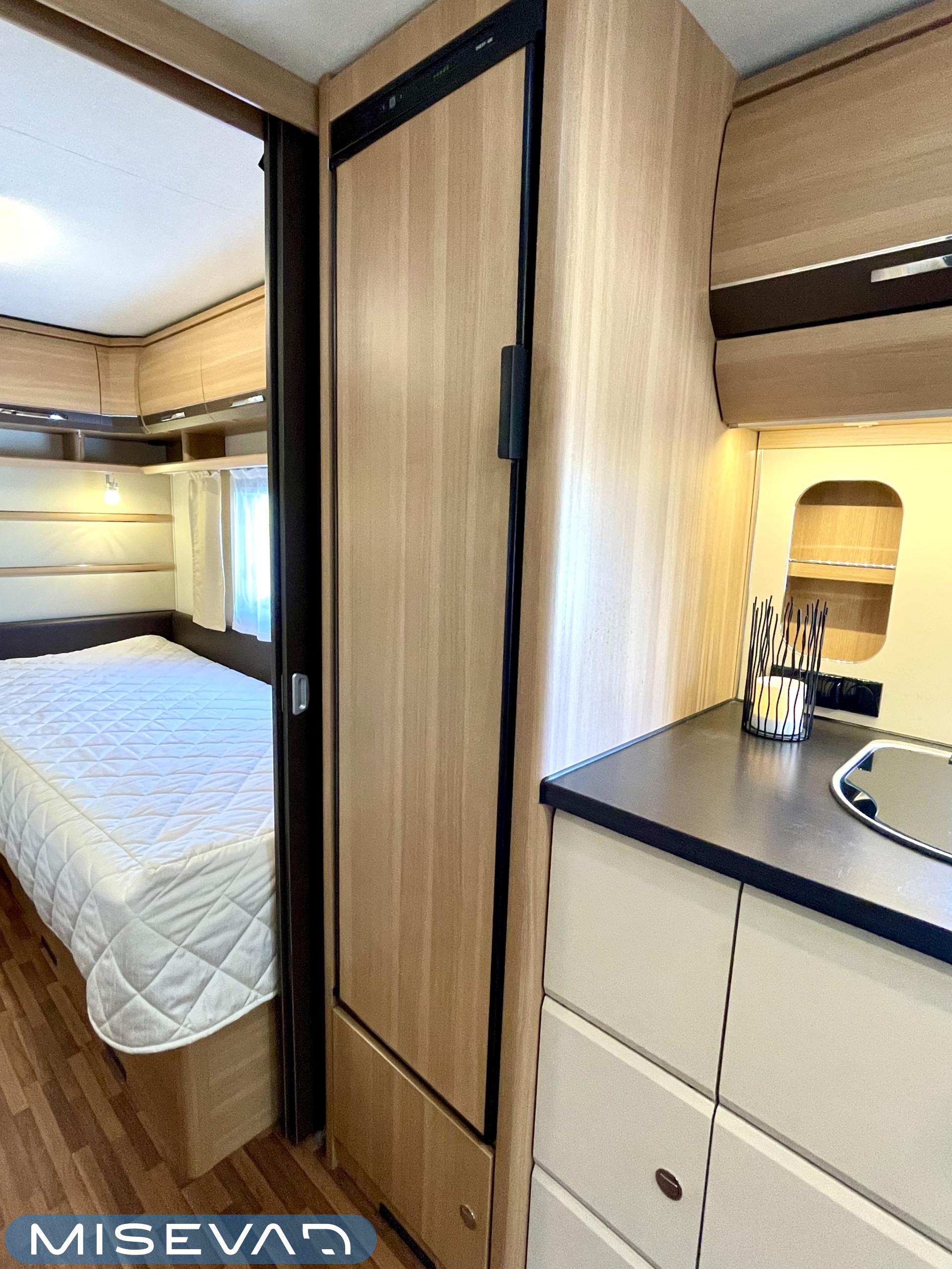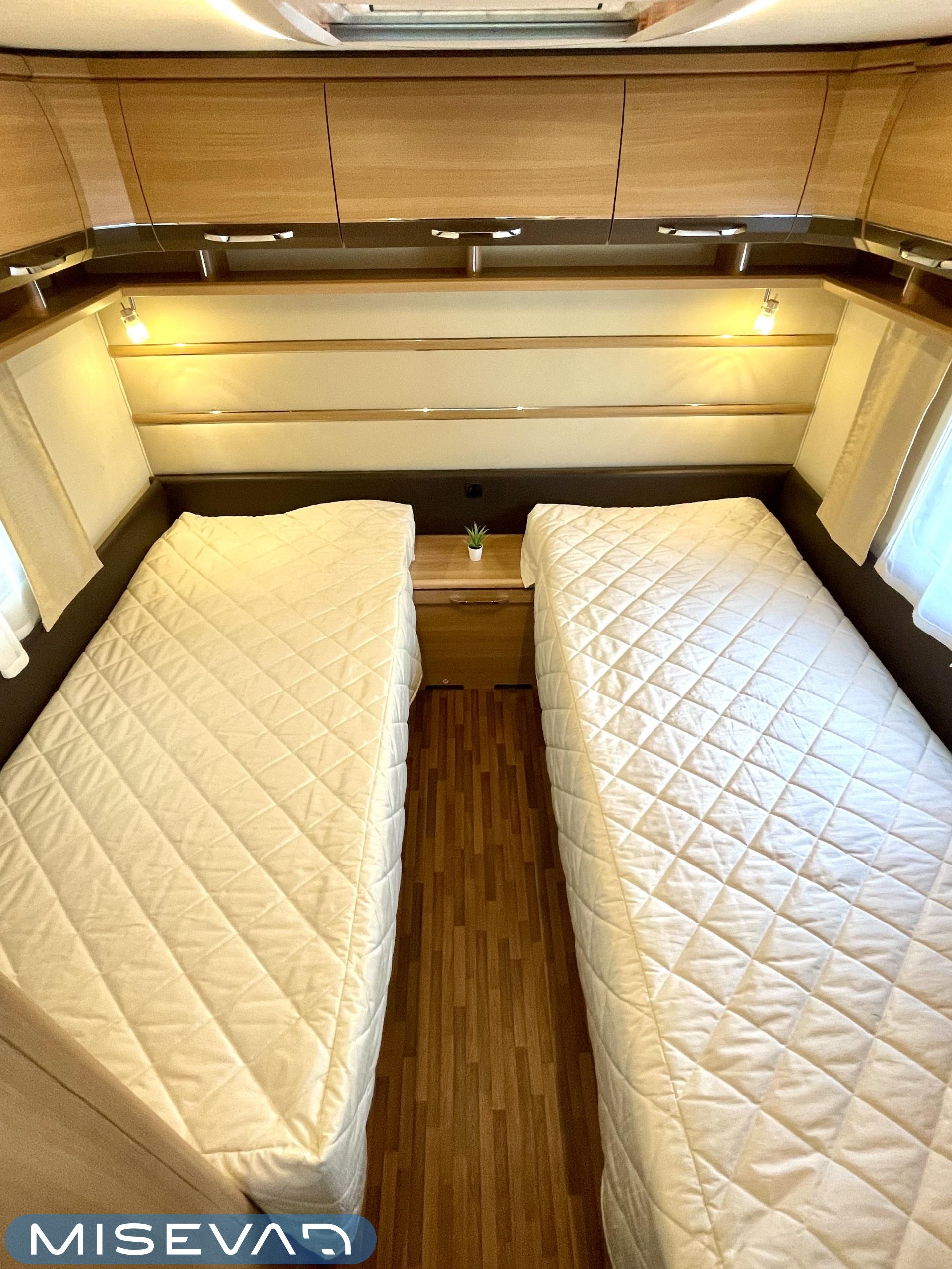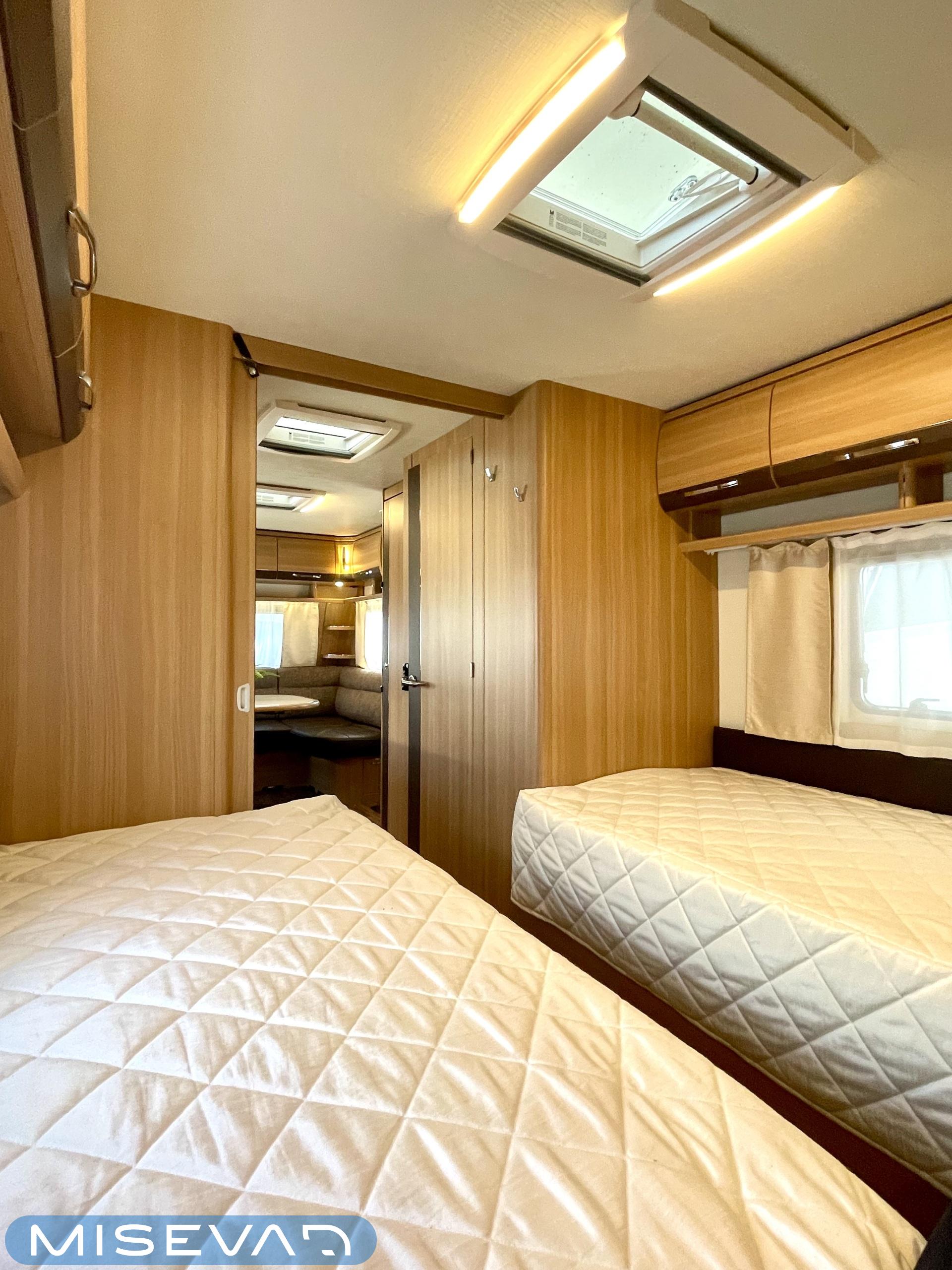 Aurinkopaneeli, Erillisvuoteet, Jääkaappi, Kasetti WC, Kasettiverhot, Kattoluukku, Lattiamatot asunto-osassa, Liesi, Lämminvesiboileri, Mover, Nestekiertolämmitys, Pakastelokero, Pesuallas, TV-antenni tai lautasantenni, Tukijalat, Alde, Lattialämmitys (nestekierto), Kesärenkaat, Tupla-akut, kwh-mittari, Eristetty harmaavesisäiliö, liesituuletin, pullonvaihtaja, kaasun ulosotto, sähkön ulosotto, televisioteline, Asuinosan hyttysovi/verho