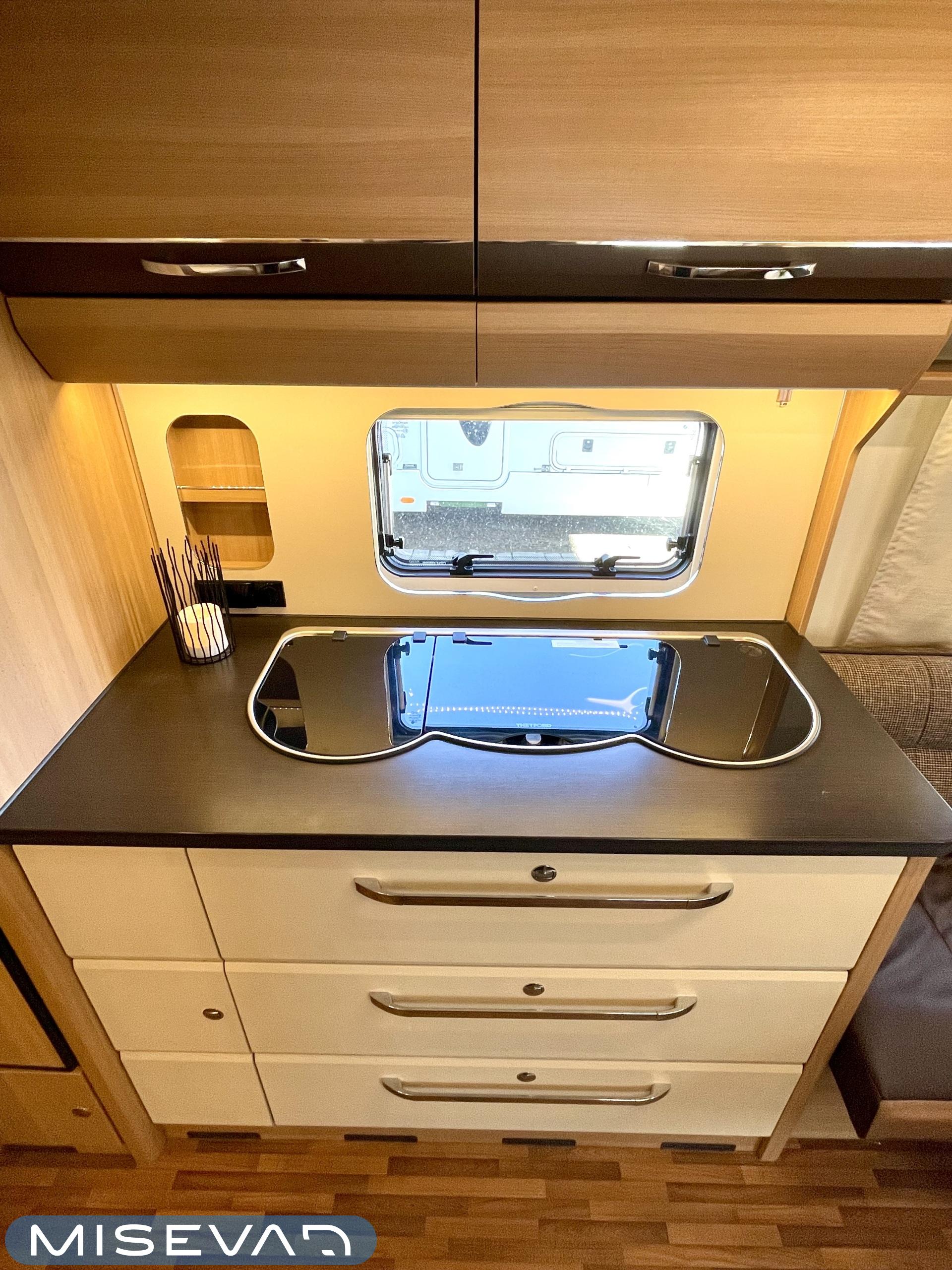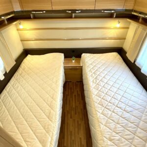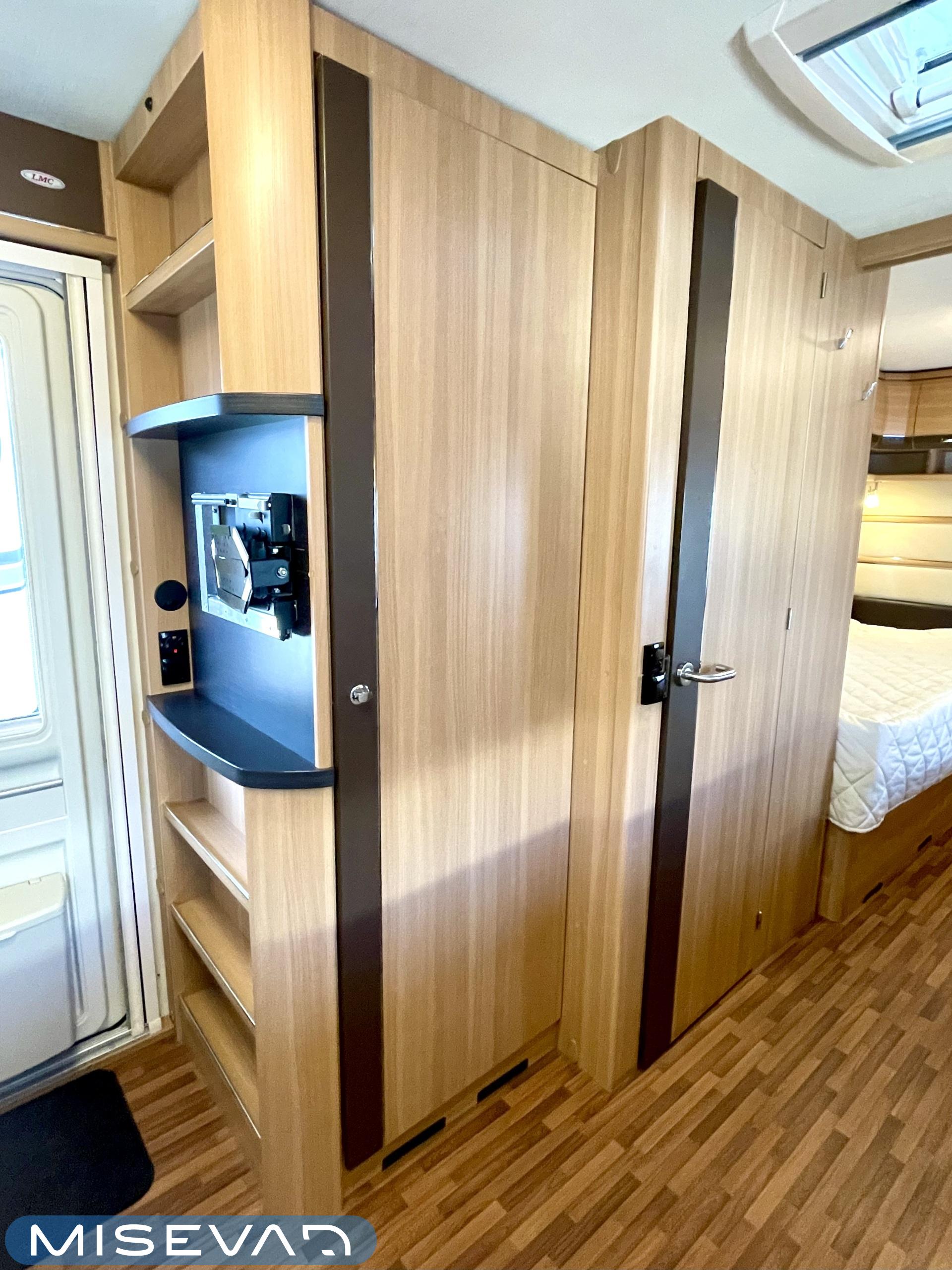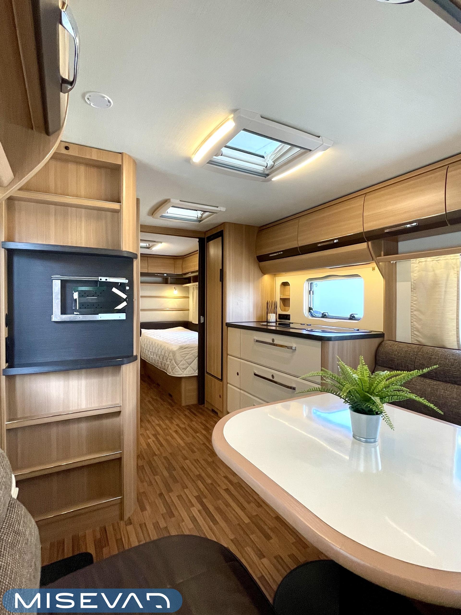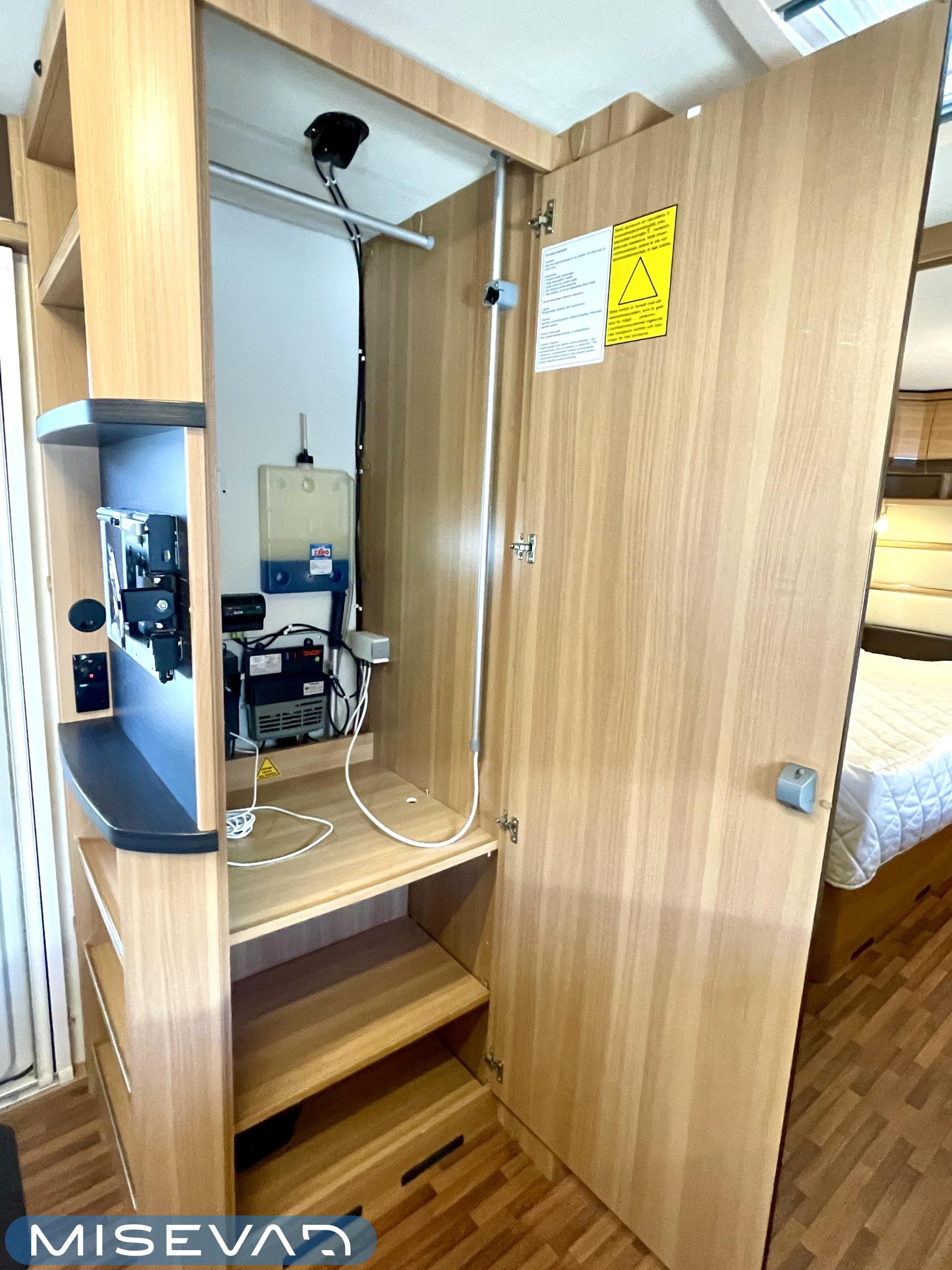 Aurinkopaneeli, Erillisvuoteet, Jääkaappi, Kasetti WC, Kasettiverhot, Kattoluukku, Lattiamatot asunto-osassa, Liesi, Lämminvesiboileri, Mover, Nestekiertolämmitys, Pakastelokero, Pesuallas, TV-antenni tai lautasantenni, Tukijalat, Alde, Lattialämmitys (nestekierto), Kesärenkaat, Tupla-akut, kwh-mittari, Eristetty harmaavesisäiliö, liesituuletin, pullonvaihtaja, kaasun ulosotto, sähkön ulosotto, televisioteline, Asuinosan hyttysovi/verho