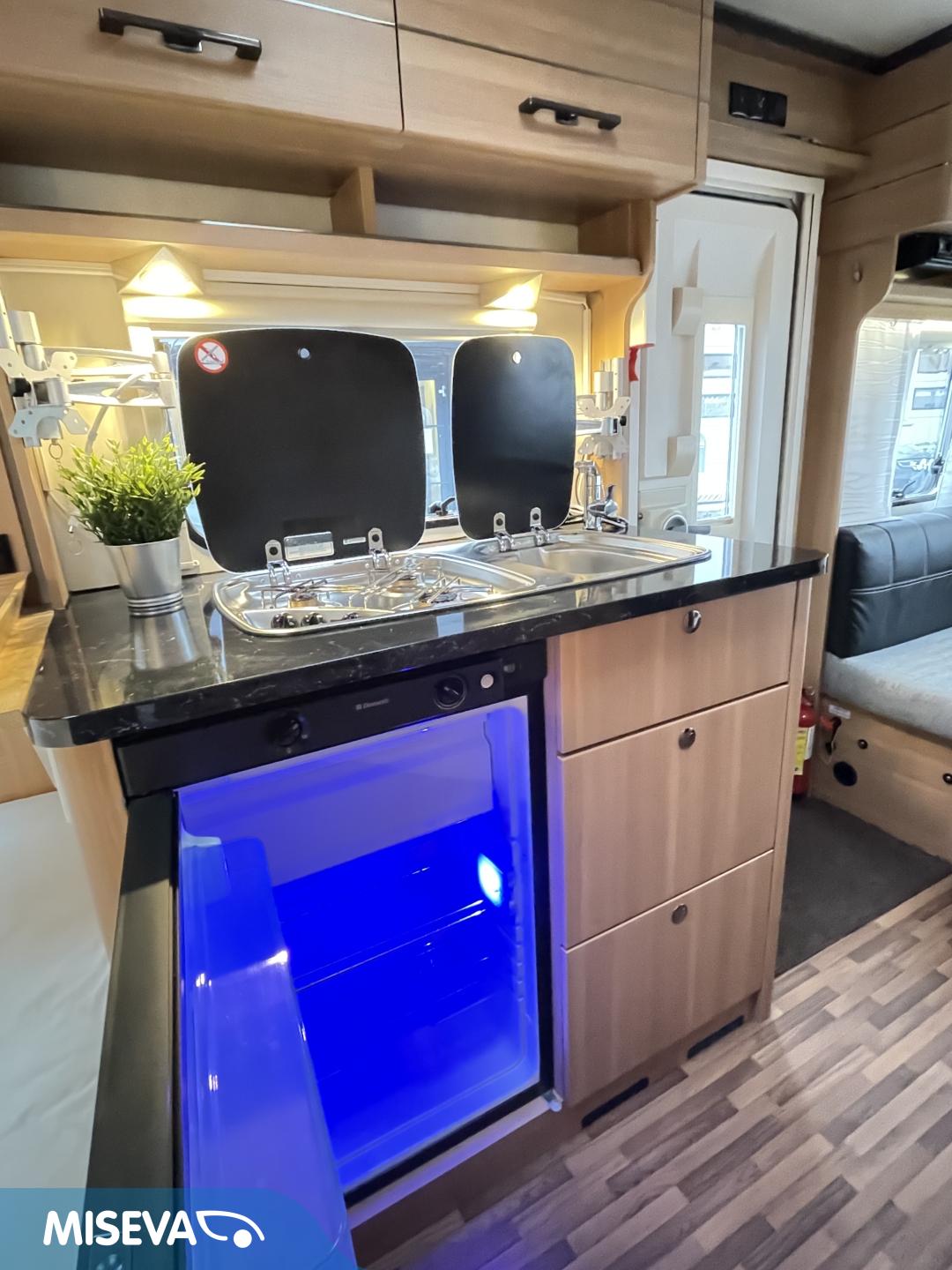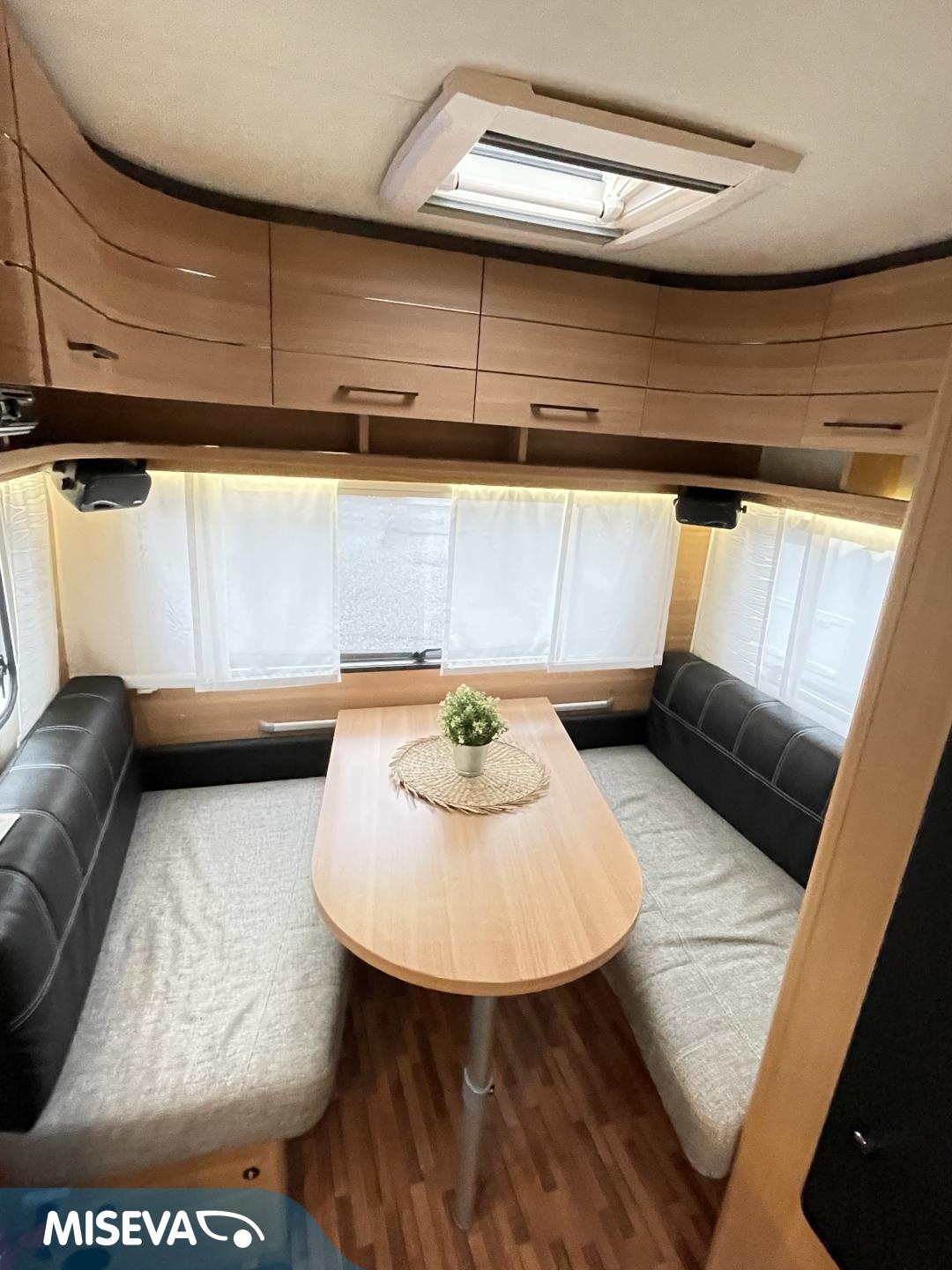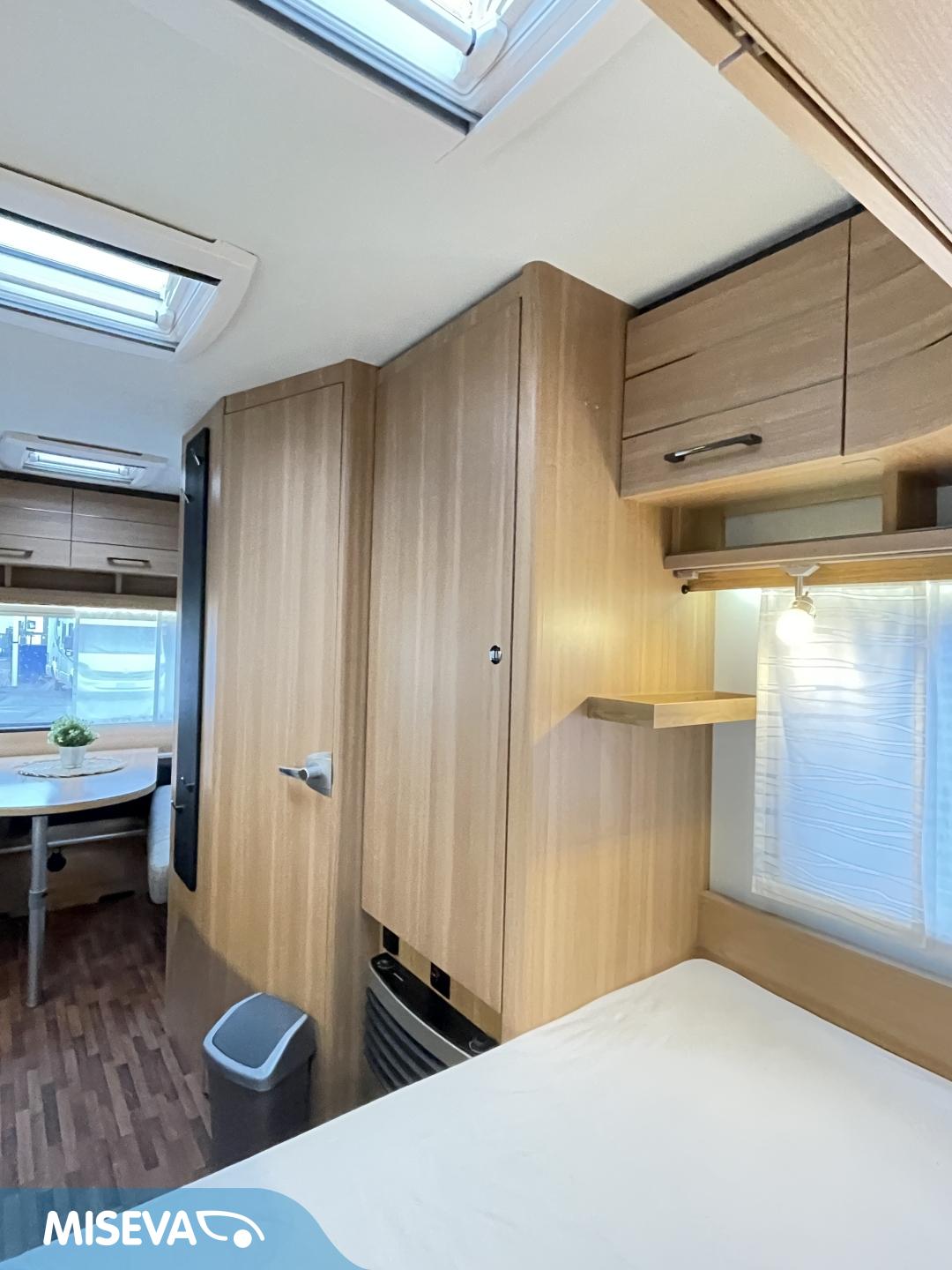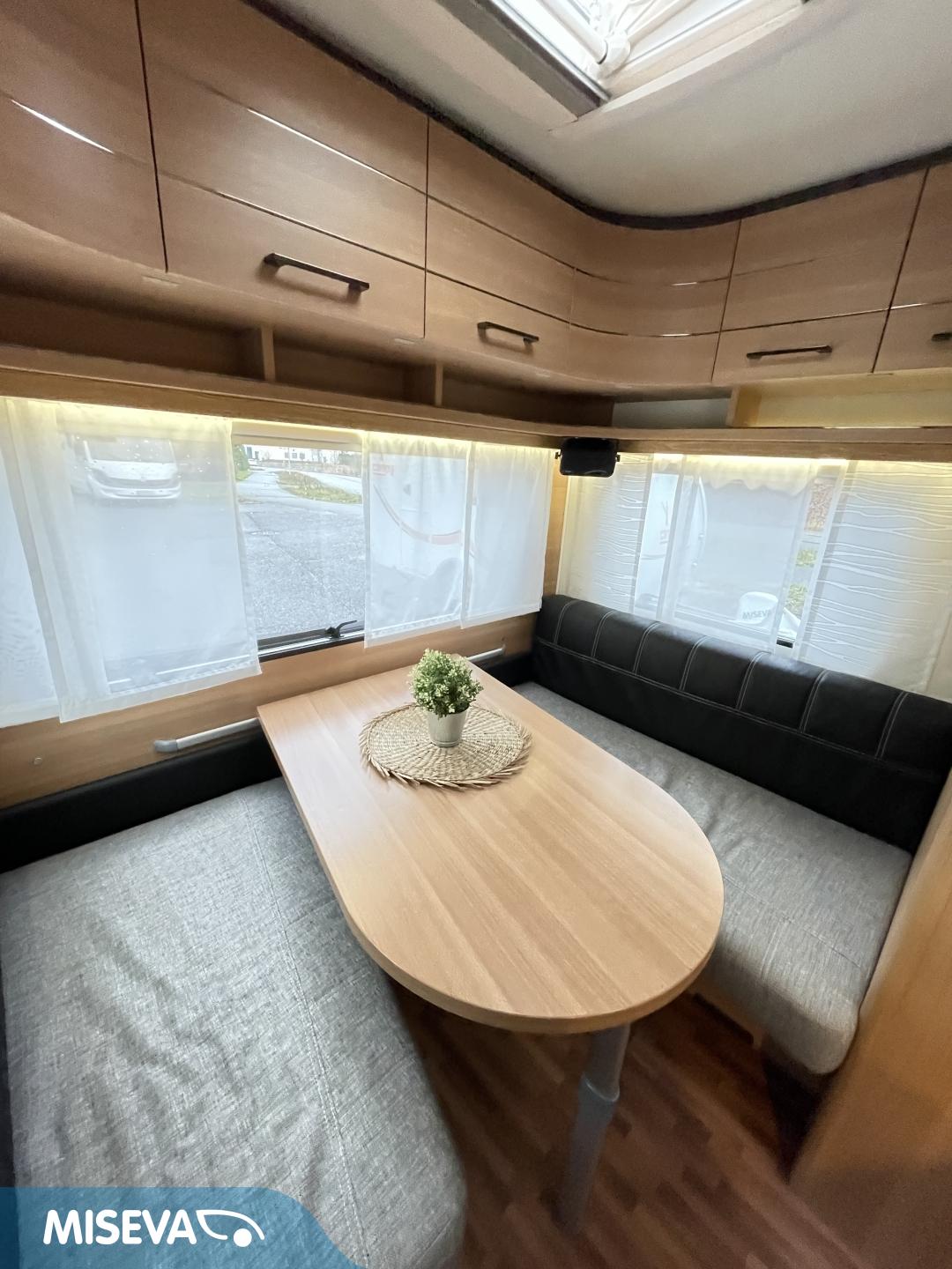CD-soitin, Jääkaappi, Kahdet renkaat, Kasetti WC, Kasettiverhot, Kattoluukku, Lattiamatot asunto-osassa, Liesi, Lämminvesiboileri, Markiisi, Pakastelokero, Parivuode, Sähköpatruuna, TV-antenni tai lautasantenni, Tukijalat, Truma, Invertteri, mover, kaasun ulosotto, televisioteline, Puuvapaa korirakenne foamilla, Asuinosan hyttysovi/verho