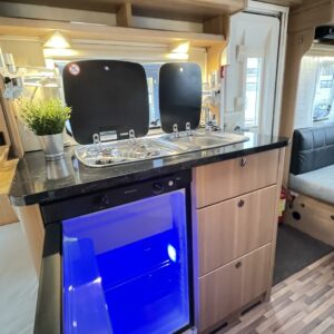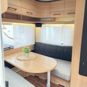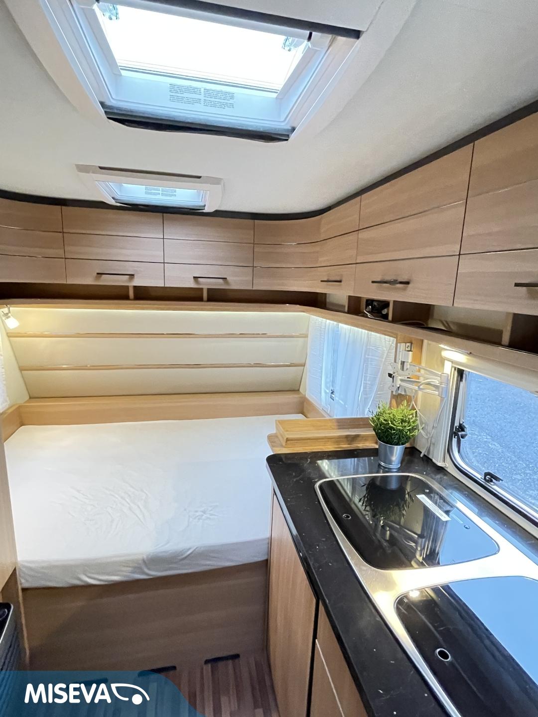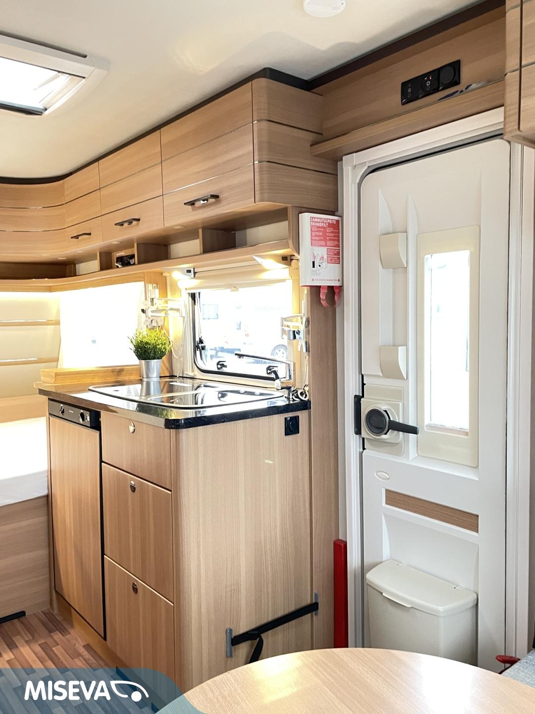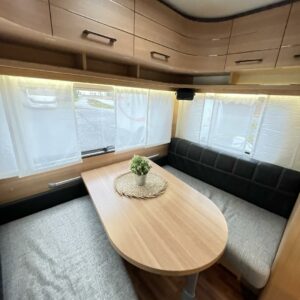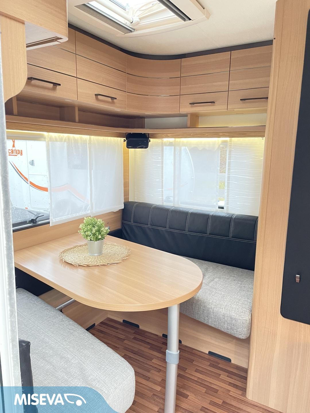 CD-soitin, Jääkaappi, Kahdet renkaat, Kasetti WC, Kasettiverhot, Kattoluukku, Lattiamatot asunto-osassa, Liesi, Lämminvesiboileri, Markiisi, Pakastelokero, Parivuode, Sähköpatruuna, TV-antenni tai lautasantenni, Tukijalat, Truma, Invertteri, mover, kaasun ulosotto, televisioteline, Puuvapaa korirakenne foamilla, Asuinosan hyttysovi/verho