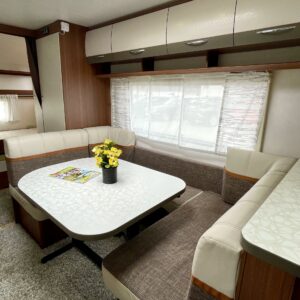 Trumatic, Sähköpatruuna, Lattialämmitys (sähkö), Liesi, Kasetti WC, Kasettiverhot, Aurinkopaneeli, Pesuallas, Pakastelokero, Parivuode, Kattoluukku, Jääkaappi