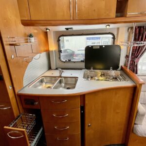 Ilmastointi ajotilassa, Jääkaappi, Kasetti WC, Kasettiverhot, Kattoluukku, Keskuslämmitys, Lattiamatot asunto-osassa, Liesi, Lämminvesiboileri, Markiisi, Nestekiertolämmitys, Ohjaustehostin, Pakastelokero, Parivuode, Pesuallas, Pysäköintikamera, Radio, Suihku, Sähköpatruuna, Sähkörappu, Tuplapohja, Vetokoukku, Alde, Ilmastointi (asuintila), Vakionopeuden säädin, Ilmastointi (ohjaamo), suihkun ulosotto, kaasun ulosotto, Asuinosan hyttysovi/verho, jenkkijääkaappi