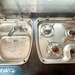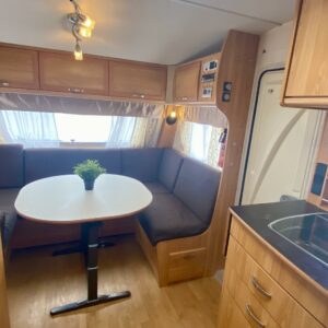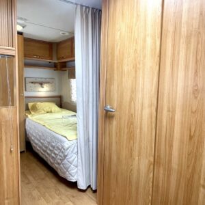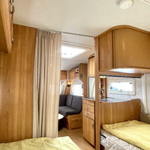 Erillisvuoteet, Jääkaappi, Kasetti WC, Kasettiverhot, Kattoluukku, Liesi, Lämminvesiboileri, Nestekiertolämmitys, Pesuallas, Pyöräteline, Sähköpatruuna, Tukijalat, Lattialämmitys (nestekierto), Kesärenkaat