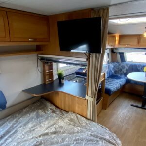 Alde, Erikoisvanteet, Ilmastointi: Automaattinen, Jääkaappi, Kaasu-uuni, Kasetti WC, Kasettiverhot, Kattoluukku, Lattialämmitys, Liesi, Lämminvesiboileri, Mikroaaltouuni, Nestekiertolämmitys, Pakastelokero, Parivuode, Pesuallas, Pyöräteline, Radio, Suihku, Sähköpatruuna, TV-antenni tai lautasantenni, Tukijalat, Lattialämmitys (nestekierto), Kesärenkaat, 1 x kevytmet.vanteet, liesituuletin, kaasun ulosotto, sähkön ulosotto, televisio, televisioteline, Eristetty harmaavesisäiliö, kwh-mittari