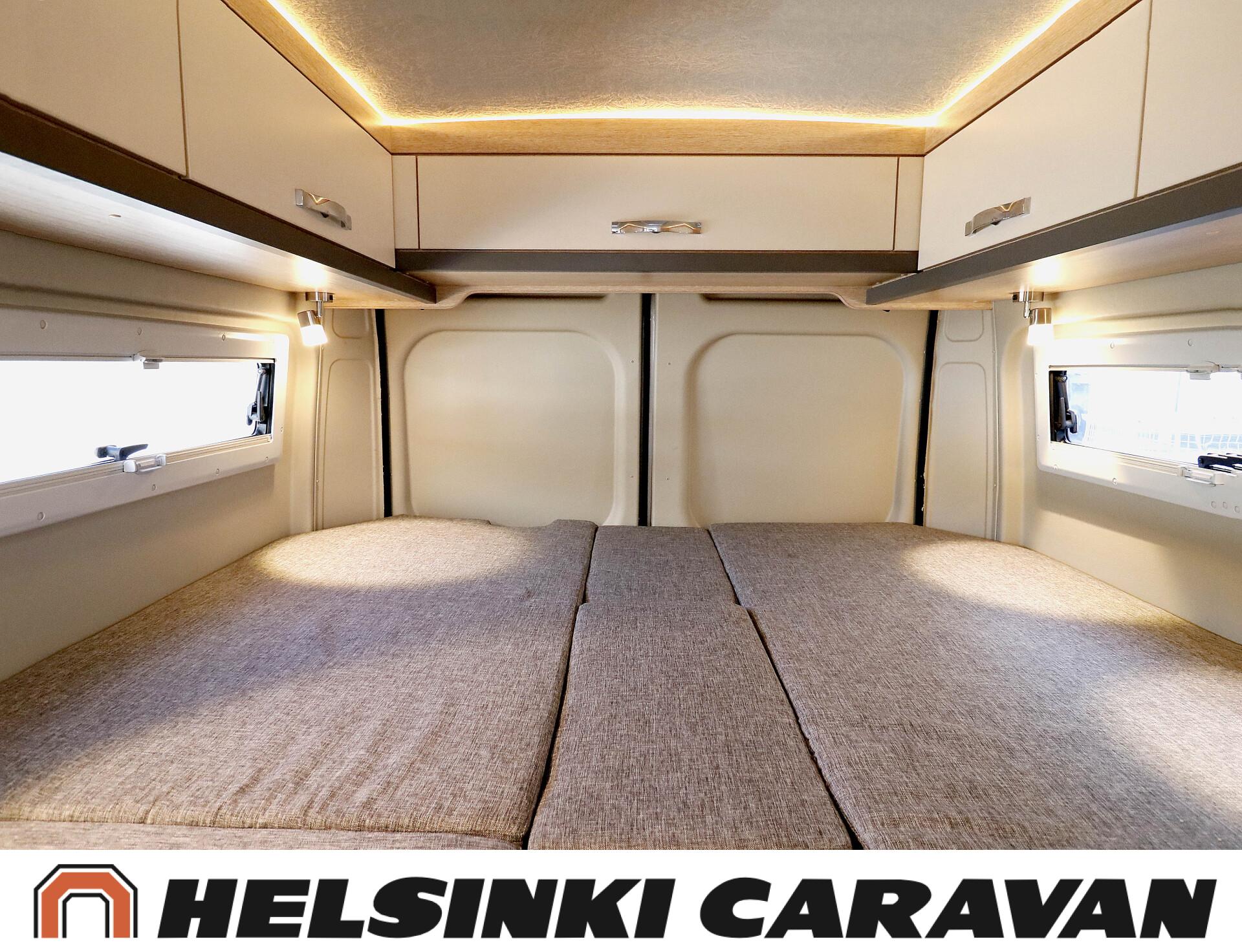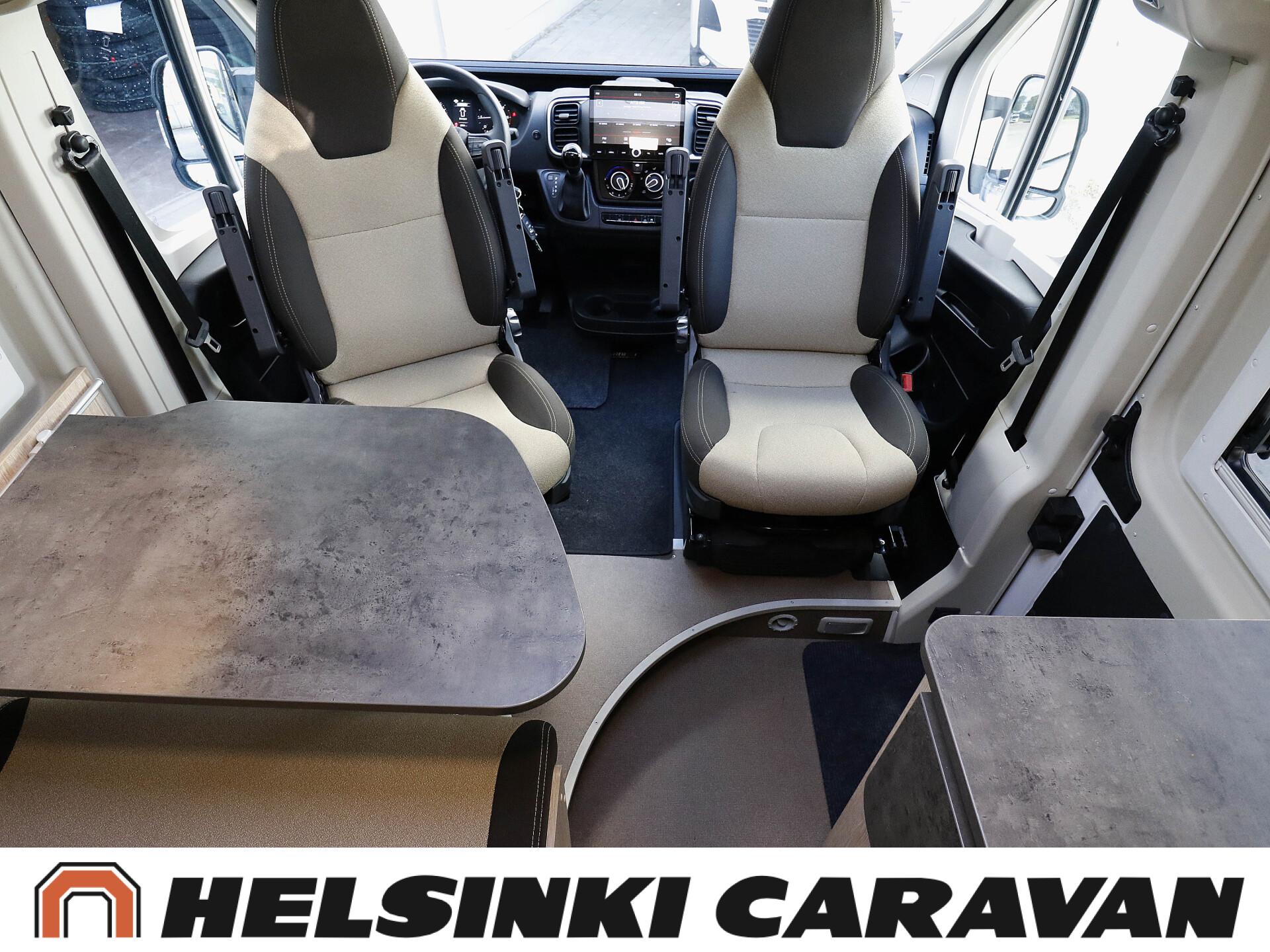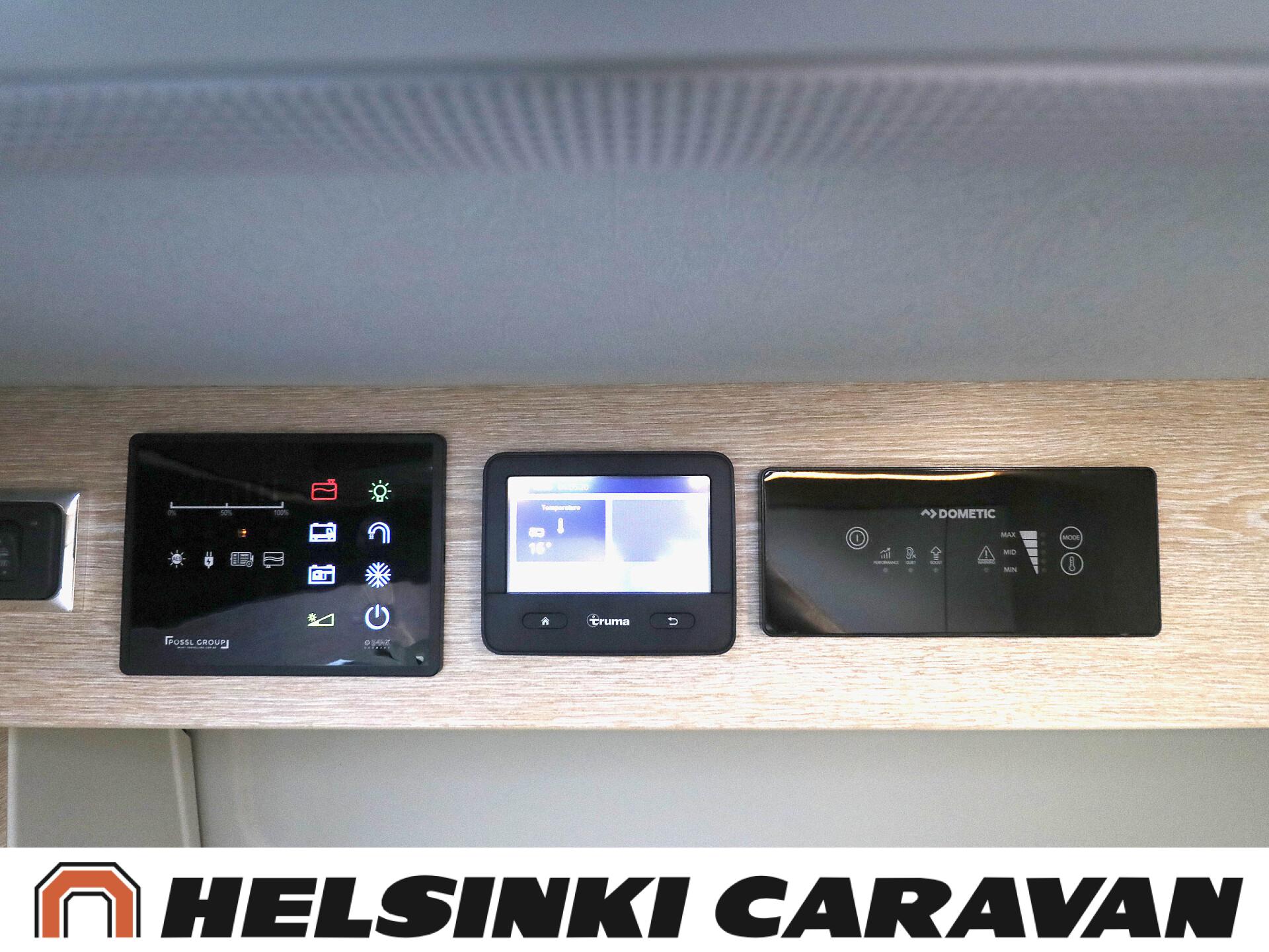 Markiisi, Erillisvuoteet, ohjaamon kasettiverhot, ABS-jarrut, Airbag, Ajotietokone, Ilmastointi ajotilassa, Jääkaappi, Kasetti WC, Kasettiverhot, Kattoluukku, Liesi, Käynnistyksenesto, Keskuslämmitys, Keskuslukitus: Kaukosäätöinen, Lämminvesiboileri, Ohjaustehostin, Pakastelokero, Sähkökäyttöiset ikkunat, Sähköpeilit, Trumatic, Turbo, Vakionopeudensäädin