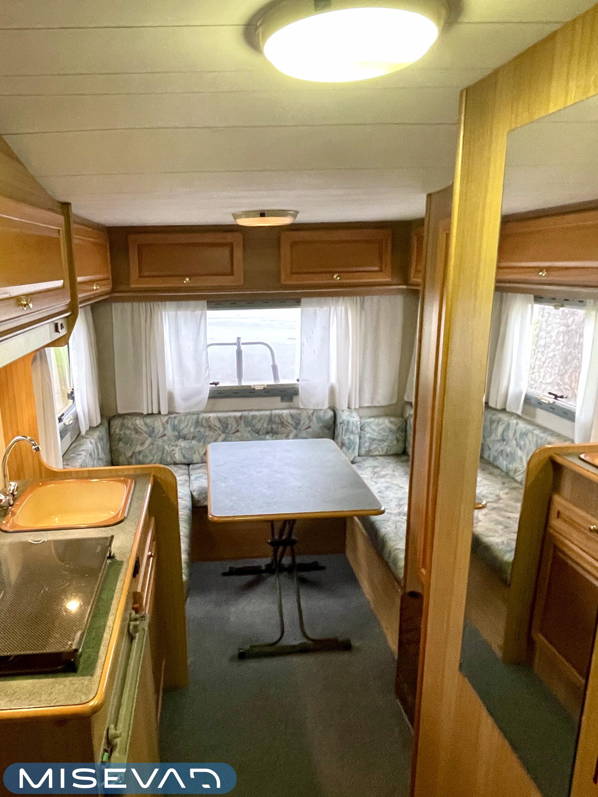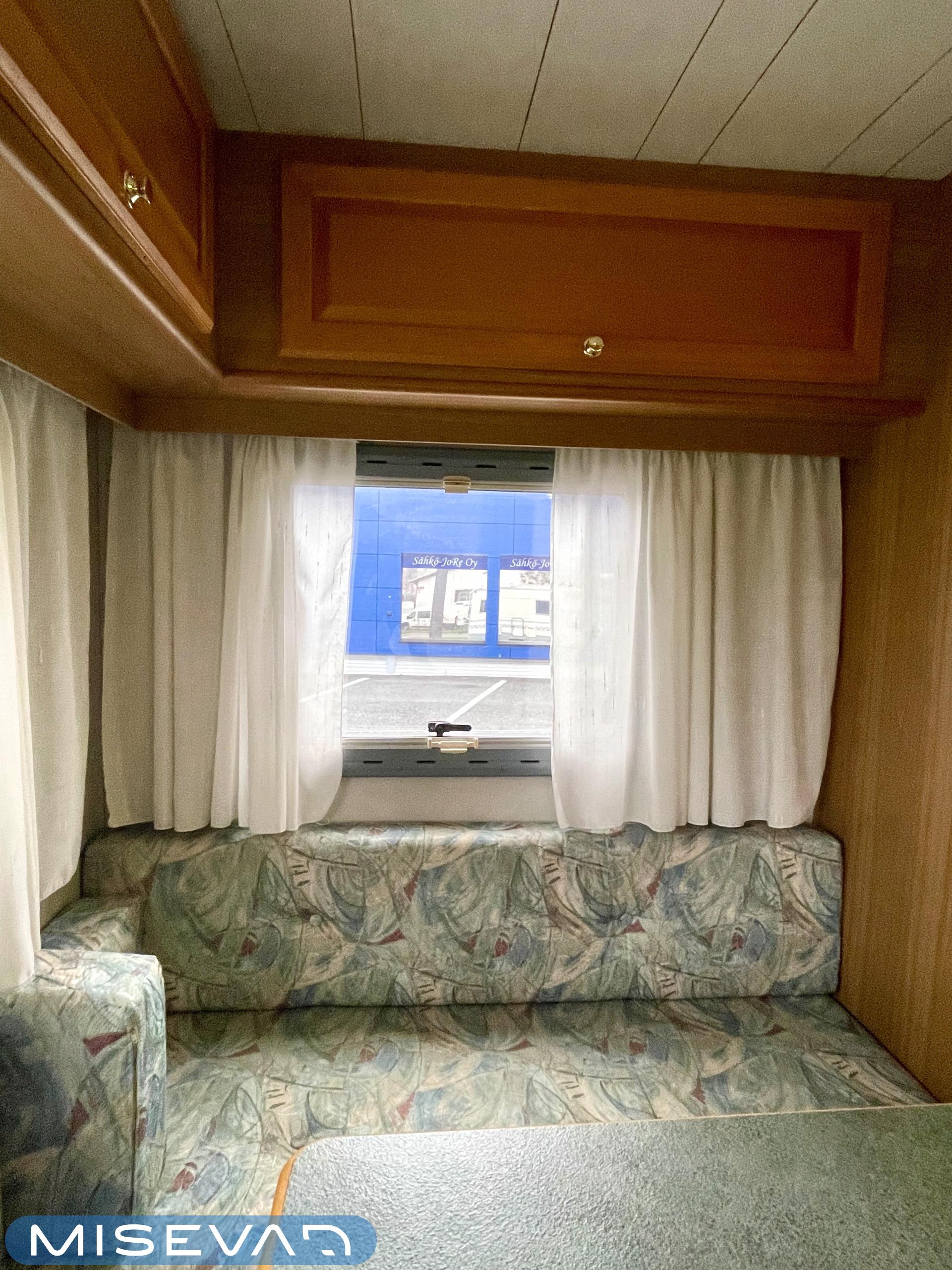 Jääkaappi, Kasetti WC, Kattoluukku, Liesi, Lämminvesiboileri, Pakastelokero, Pesuallas, Radio, Polttoainlämmitys(asuintila), Kesärenkaat