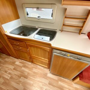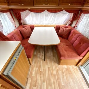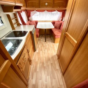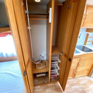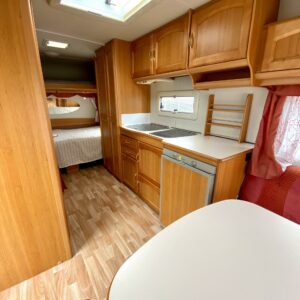 Alde, Jääkaappi, Kasetti WC, Kasettiverhot, Kattoluukku, Kerrossänky, Lämminvesiboileri, Liesi, Nestekiertolämmitys, Pakastelokero, Parivuode, Pesuallas, Radio, Suihku, Sähköpatruuna, TV-antenni tai lautasantenni, Tukijalat