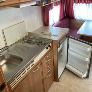 Jääkaappi, Kasetti WC, Liesi, Lämminvesiboileri, Nestekiertolämmitys, Radio, Sähköpatruuna, TV-antenni tai lautasantenni, Tukijalat, Primus, Lattialämmitys (nestekierto), kwh-mittari, Lattialämmitys, Kattoluukku, Parivuode, Pesuallas