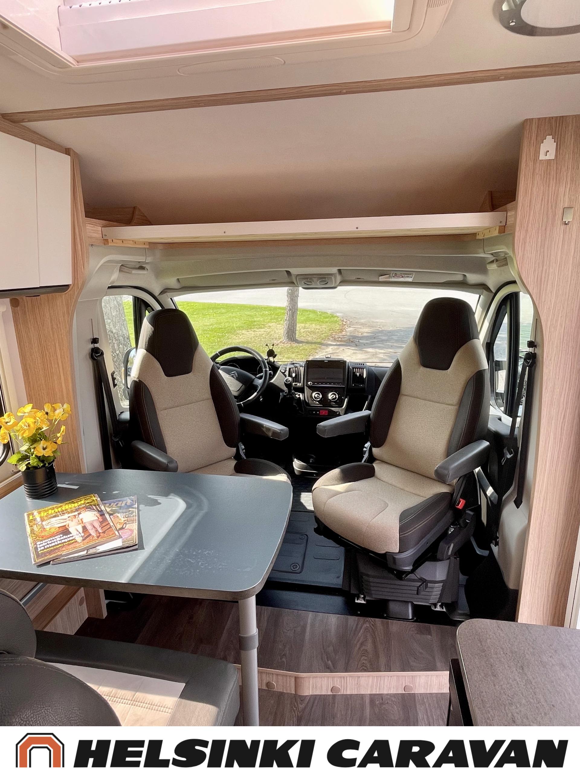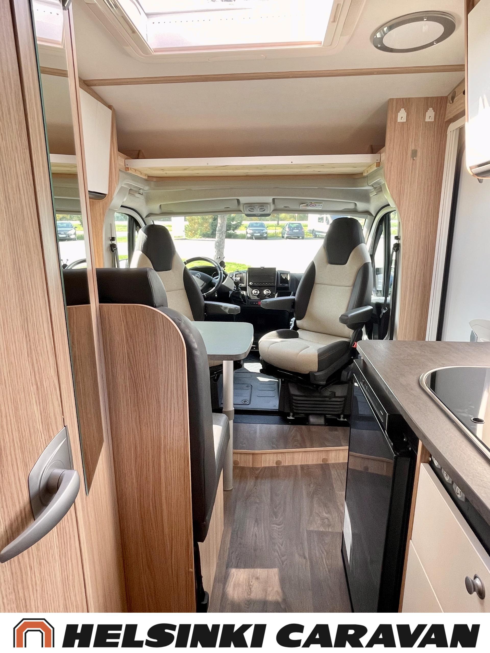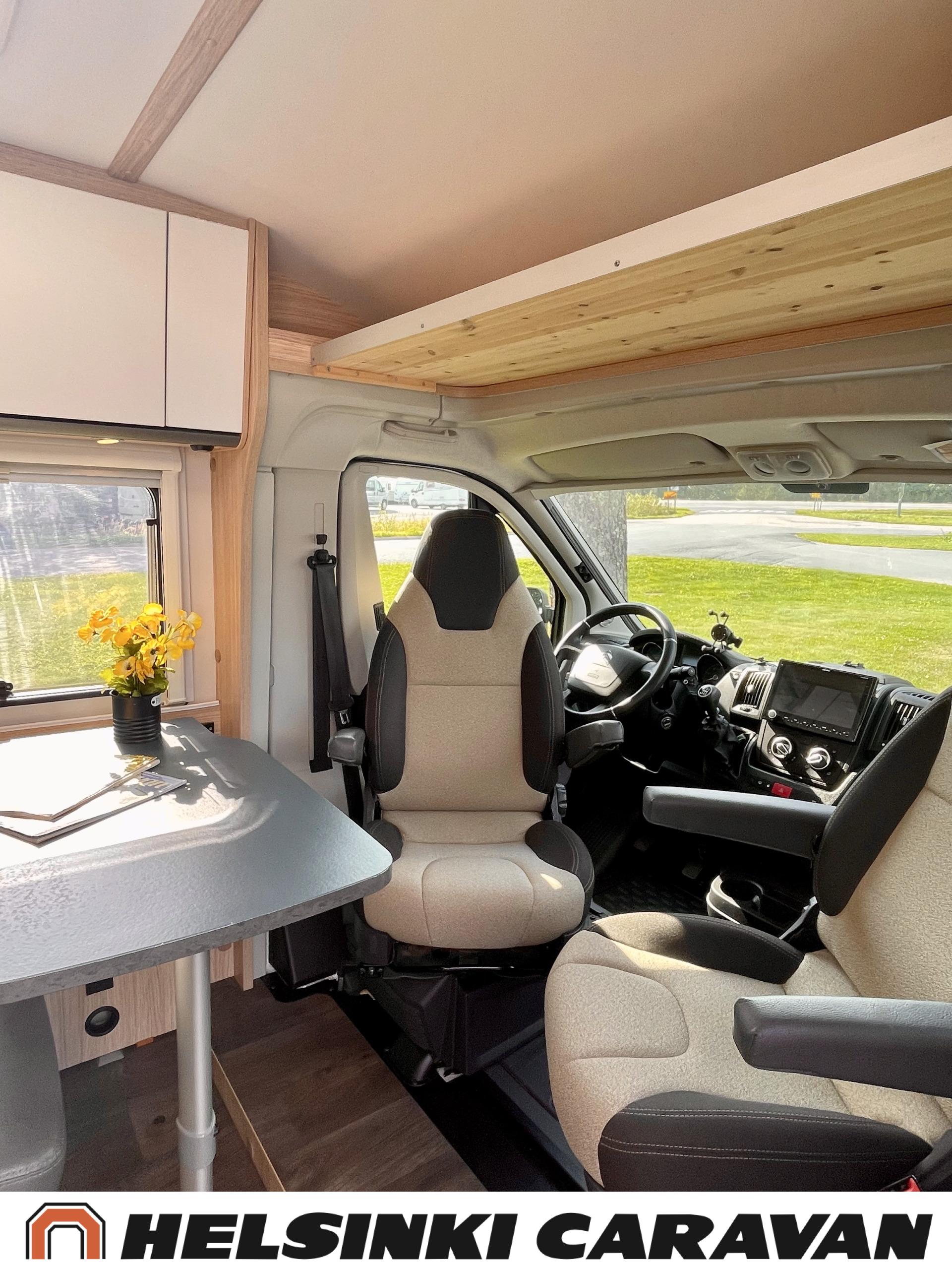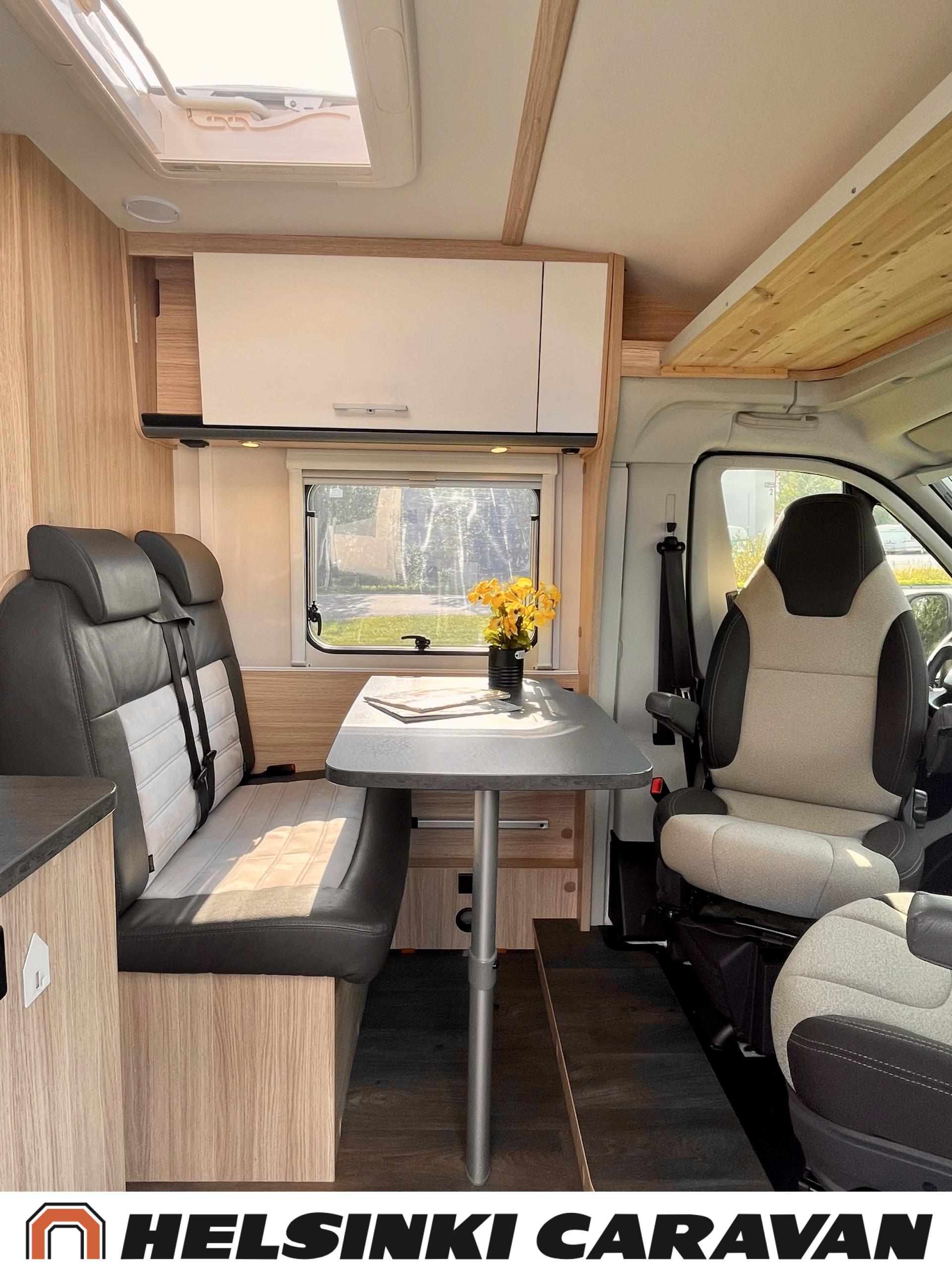 Peruutuskamera: Kamera takana, Trumatic- ilmapuhalluslämmitys, Pyöräteline, Peruutuskamera, Aurinkopaneeli, Truma, ABS-jarrut, Airbag, Ajonvakautusjärjestelmä, Erikoisvanteet, Eristetty harmaavesisäiliö, Huoltokirja, Jääkaappi, Kahdet renkaat, Kasetti WC, Kasettiverhot, Kattoluukku, Käynnistyksenesto, Lattialämmitys, Lattiamatot asunto-osassa, Liesi, Luistonesto, Lämminvesiboileri, Markiisi, Navigaattori, Ohjaustehostin, Pakastelokero, Pesuallas, Pysäköintikamera, Radio, Suihku, Sähkökäyttöiset ikkunat, Sähköpatruuna, Sähköpeilit, Sähkörappu, Turbo, USB, Vakionopeudensäädin, Lattialämmitys (sähkö), Ilmastointi (ohjaamo), ohjaamon kasettiverhot, kaasun ulosotto, Multimedialaite (sis. p-kamera, navi, soitin, bluetooth, handsfree), Asuinosan hyttysovi/verho