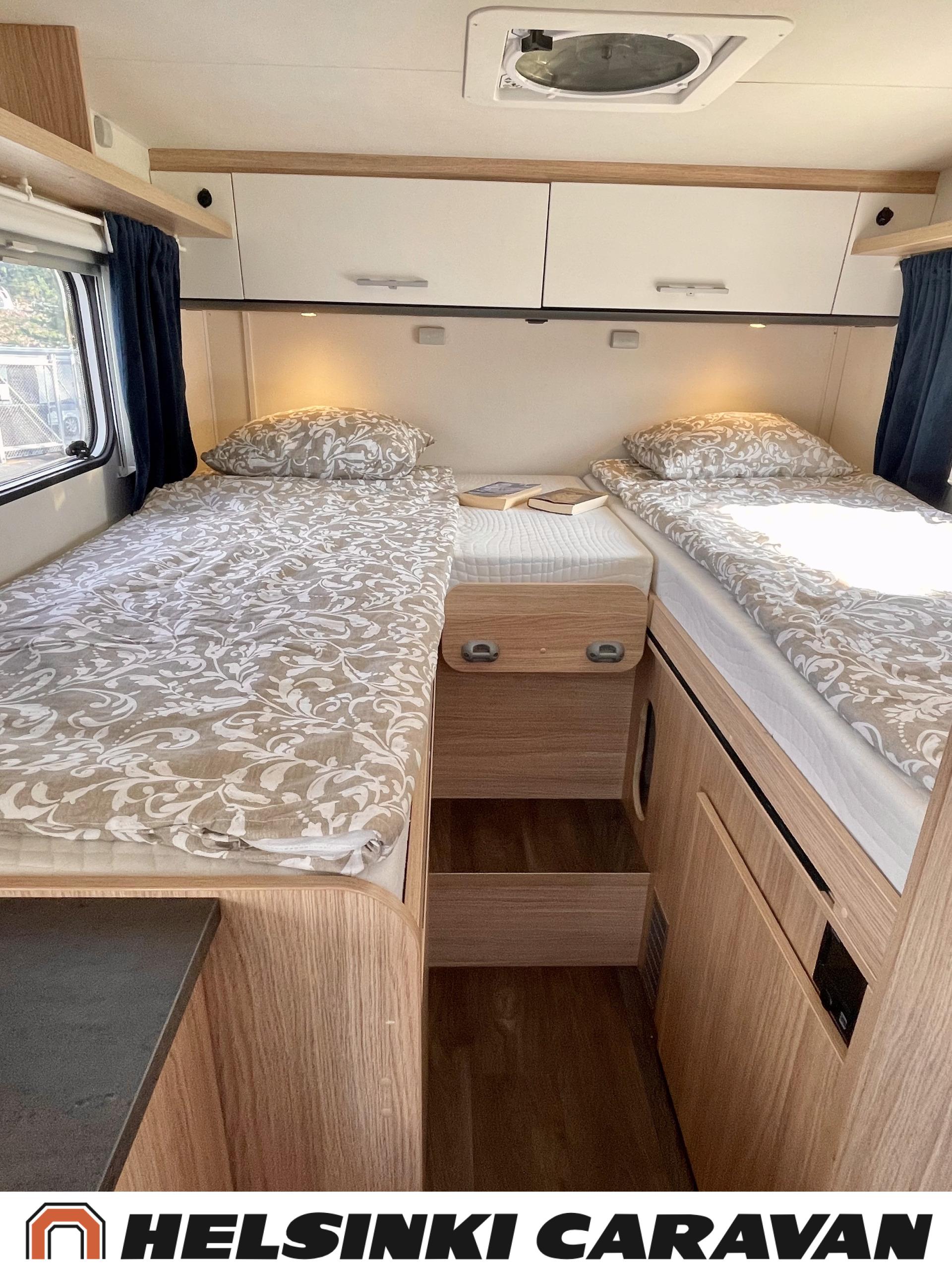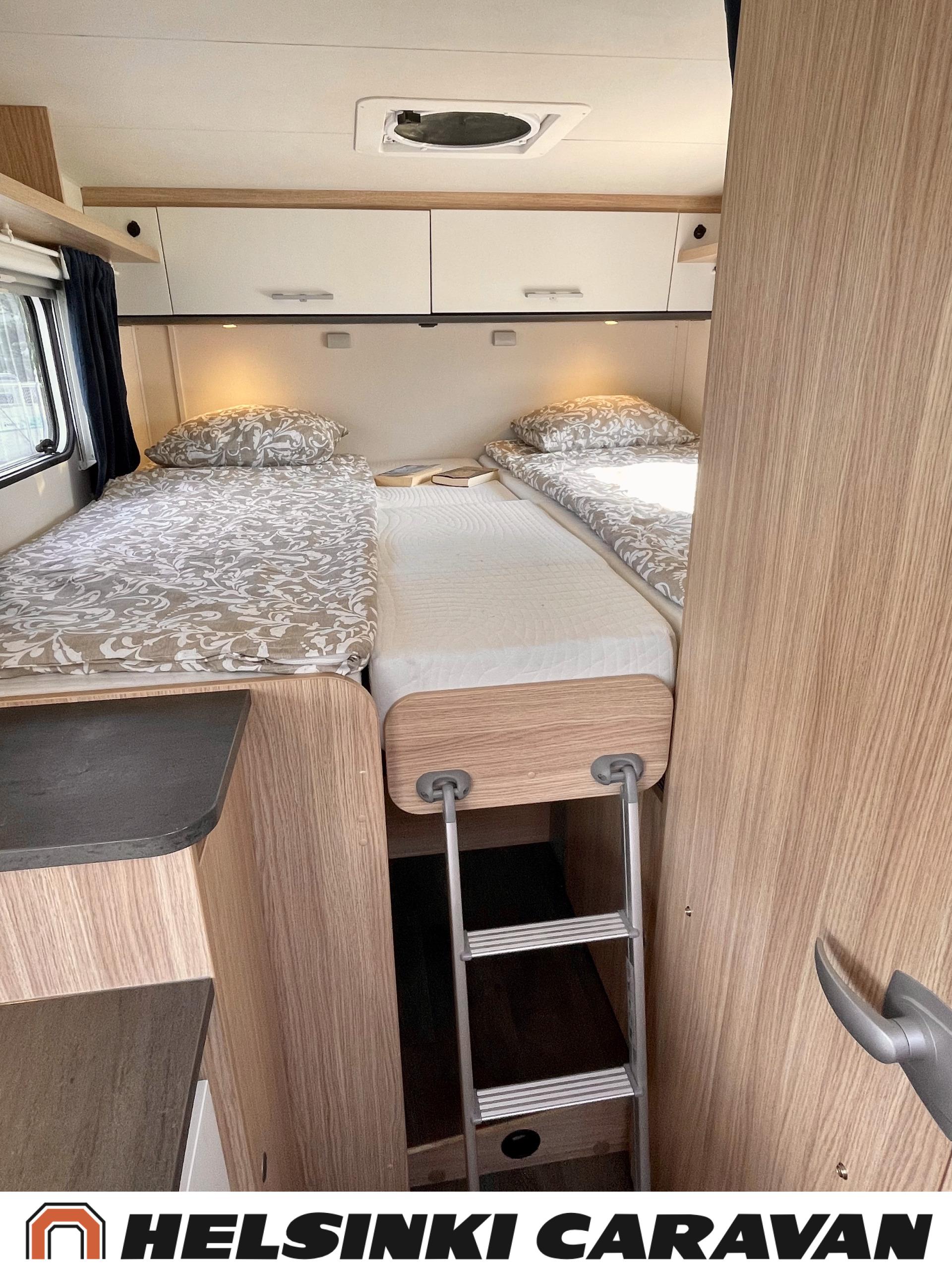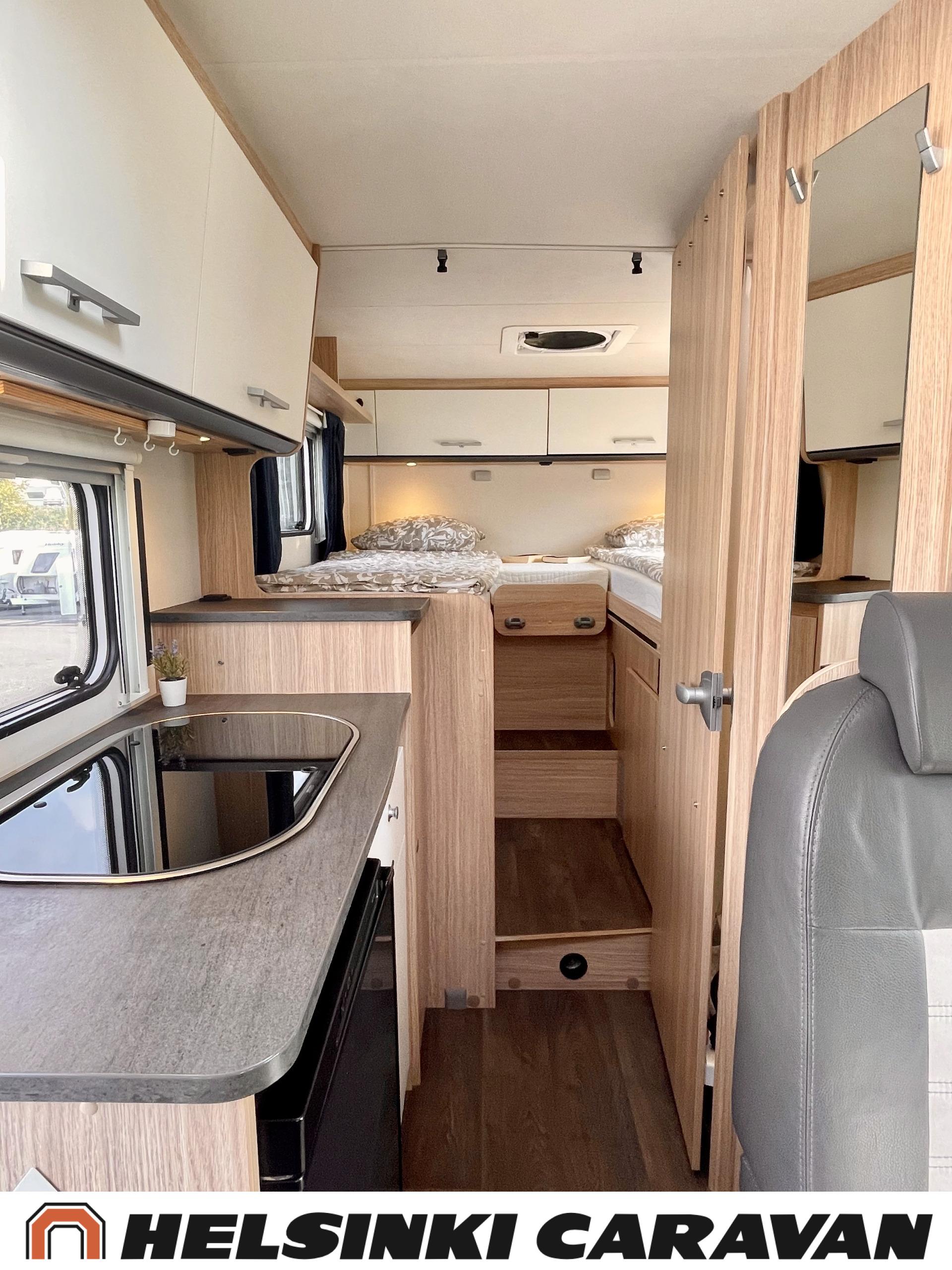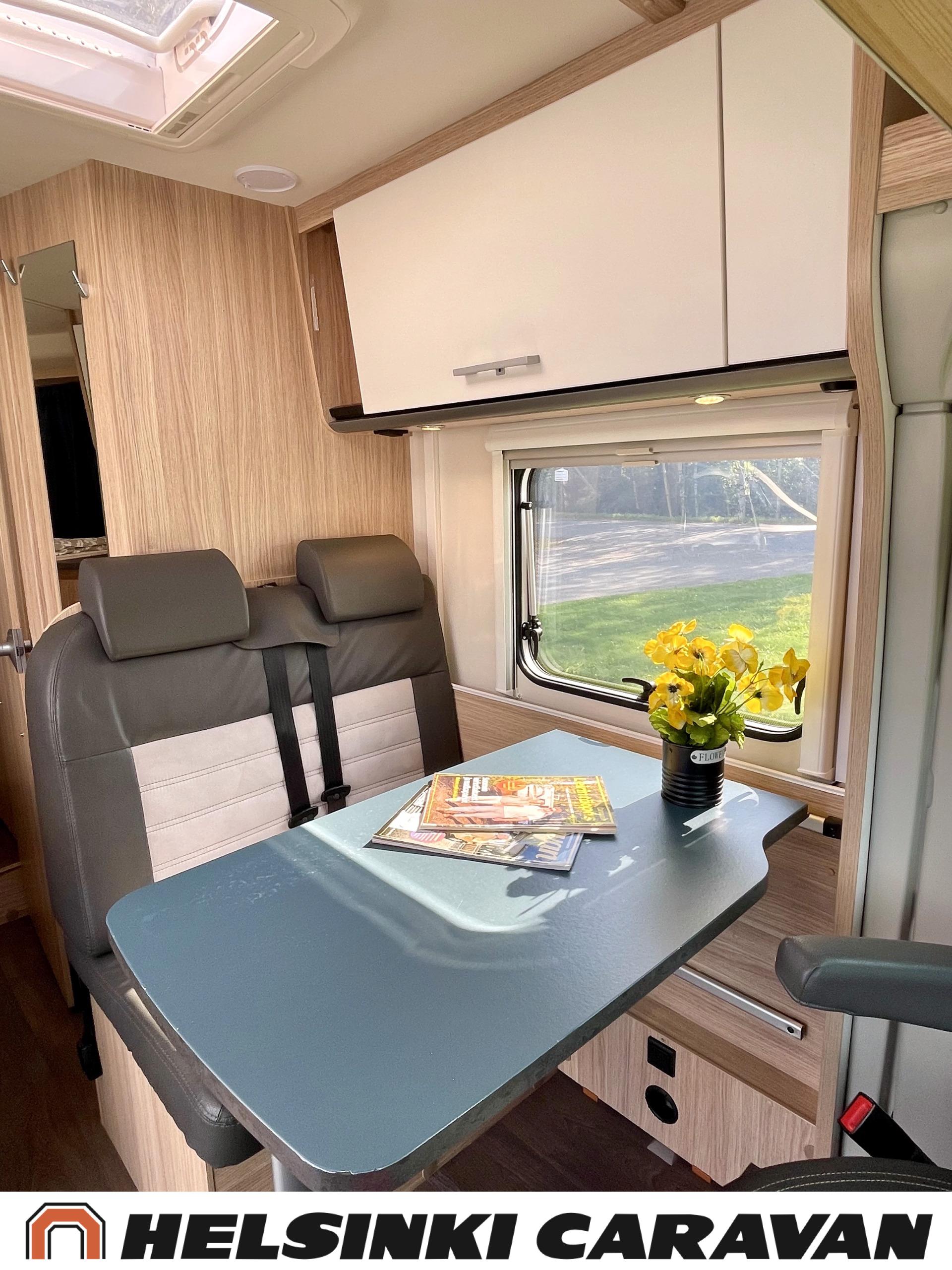 Peruutuskamera: Kamera takana, Trumatic- ilmapuhalluslämmitys, Pyöräteline, Peruutuskamera, Aurinkopaneeli, Truma, ABS-jarrut, Airbag, Ajonvakautusjärjestelmä, Erikoisvanteet, Eristetty harmaavesisäiliö, Huoltokirja, Jääkaappi, Kahdet renkaat, Kasetti WC, Kasettiverhot, Kattoluukku, Käynnistyksenesto, Lattialämmitys, Lattiamatot asunto-osassa, Liesi, Luistonesto, Lämminvesiboileri, Markiisi, Navigaattori, Ohjaustehostin, Pakastelokero, Pesuallas, Pysäköintikamera, Radio, Suihku, Sähkökäyttöiset ikkunat, Sähköpatruuna, Sähköpeilit, Sähkörappu, Turbo, USB, Vakionopeudensäädin, Lattialämmitys (sähkö), Ilmastointi (ohjaamo), ohjaamon kasettiverhot, kaasun ulosotto, Multimedialaite (sis. p-kamera, navi, soitin, bluetooth, handsfree), Asuinosan hyttysovi/verho
