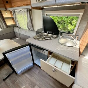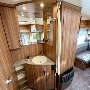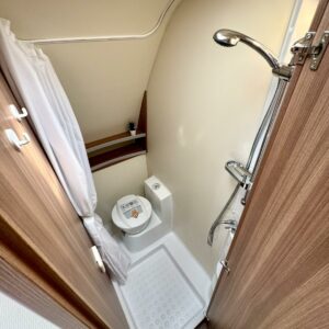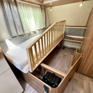 Jääkaappi, Kasetti WC, Kasettiverhot, Kattoluukku, Liesi, Lämminvesiboileri, Pakastelokero, Parivuode, Pesuallas, Trumatic, Tukijalat