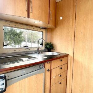 Jääkaappi, Kahdet renkaat, Kasetti WC, Kasettiverhot, Kattoluukku, Keskuslämmitys, Liesi, Lohkolämmitin, Lämminvesiboileri, Markiisi, Pakastelokero, Parivuode, Pesuallas, Pyöräteline, Stereot, Suihku, Sähkökäyttöiset ikkunat, Sähköpeilit, Sähkörappu, Takakeittiö, Trumatic, Tuplapohja, Turbo, Huoltokirja, Keskuslukitus: Ilman kaukosäädintä, Radio