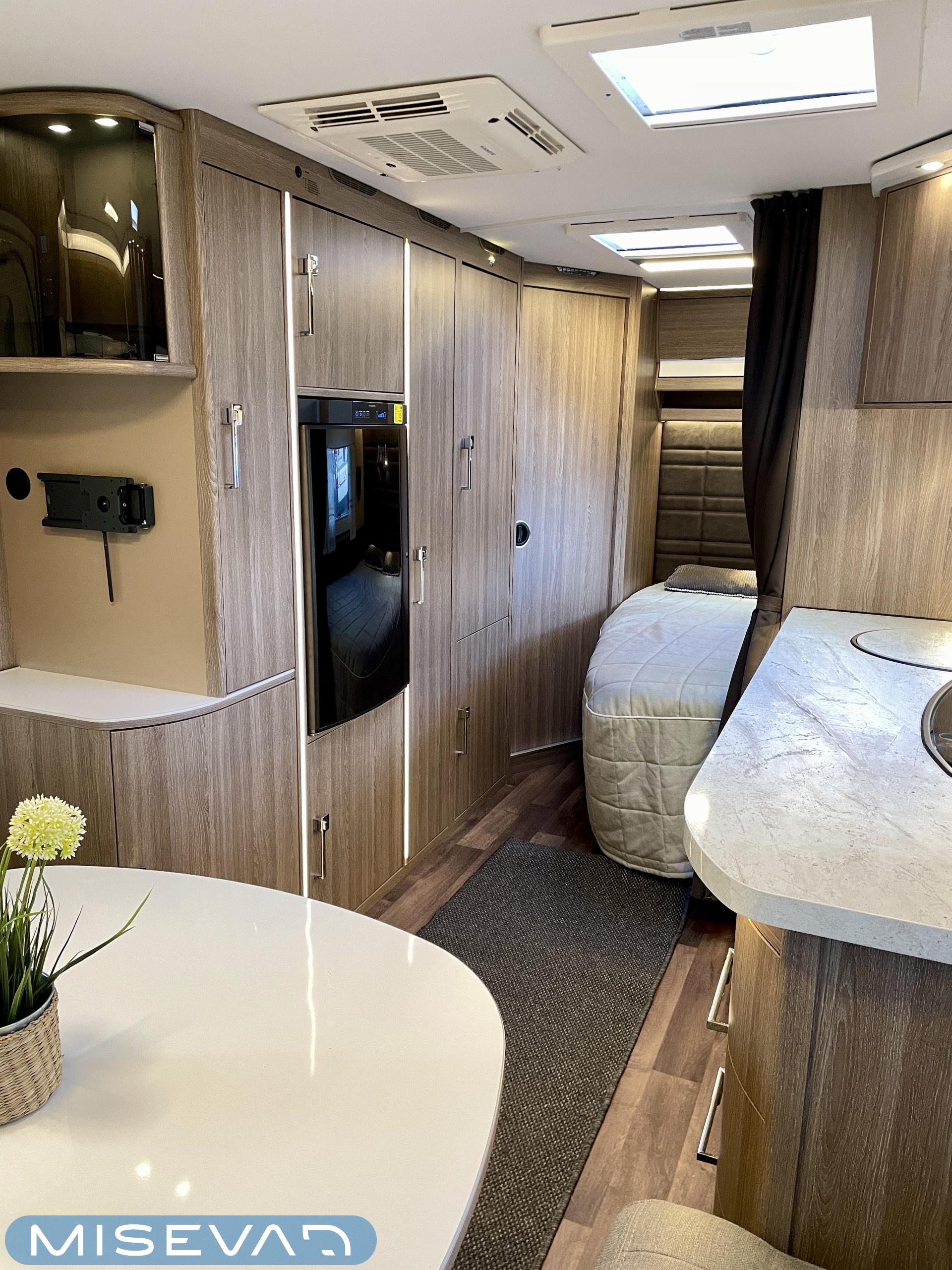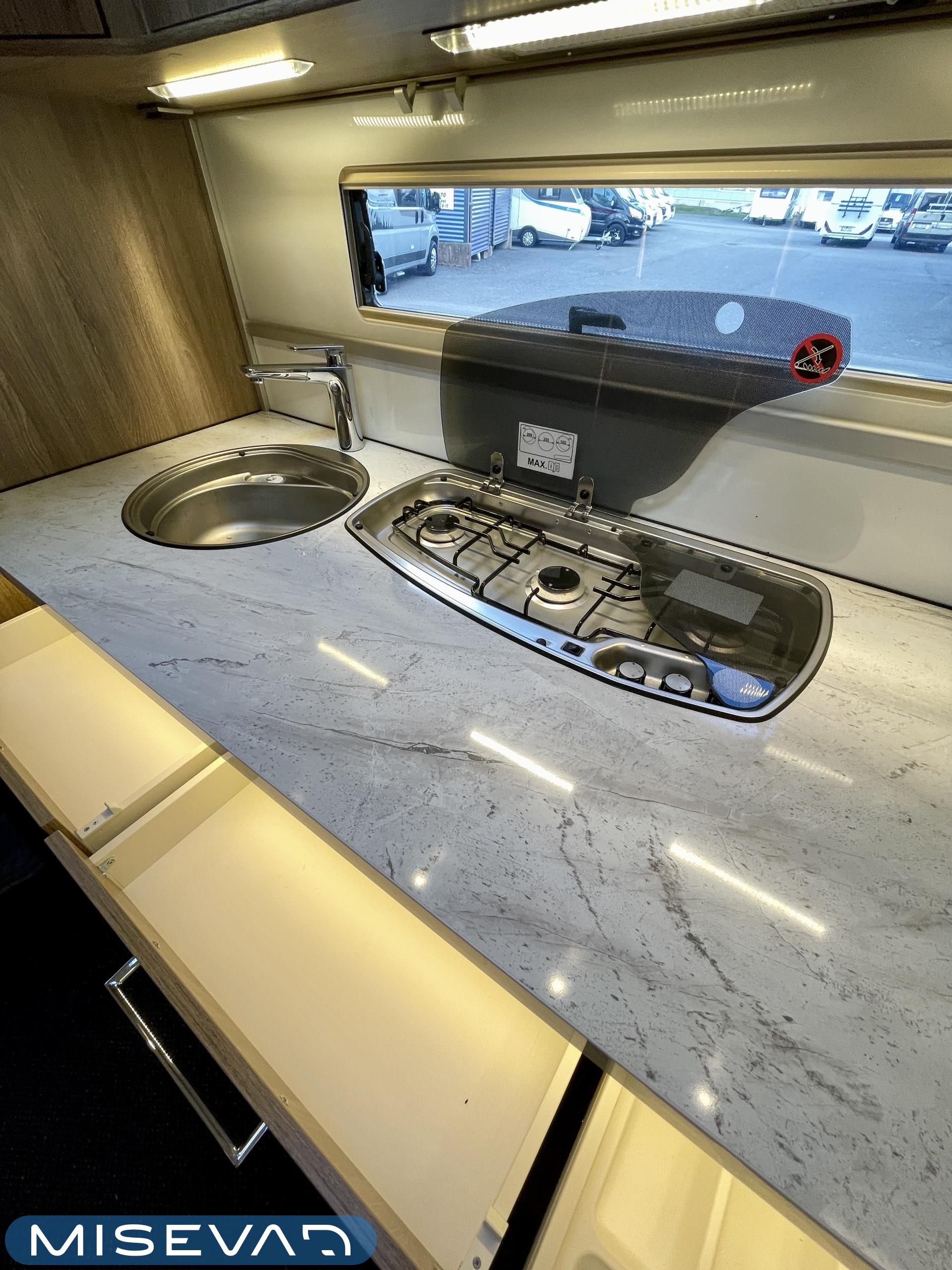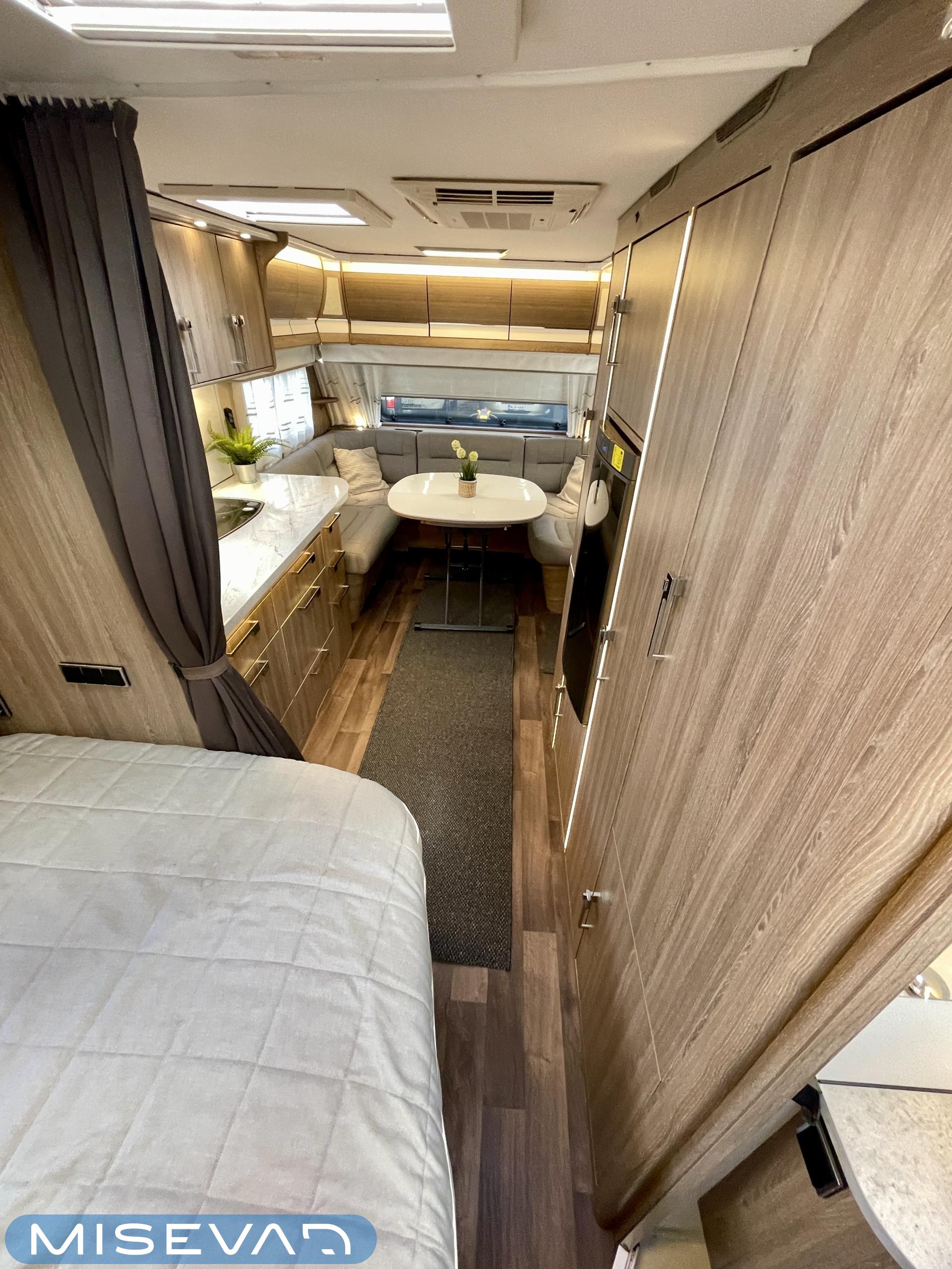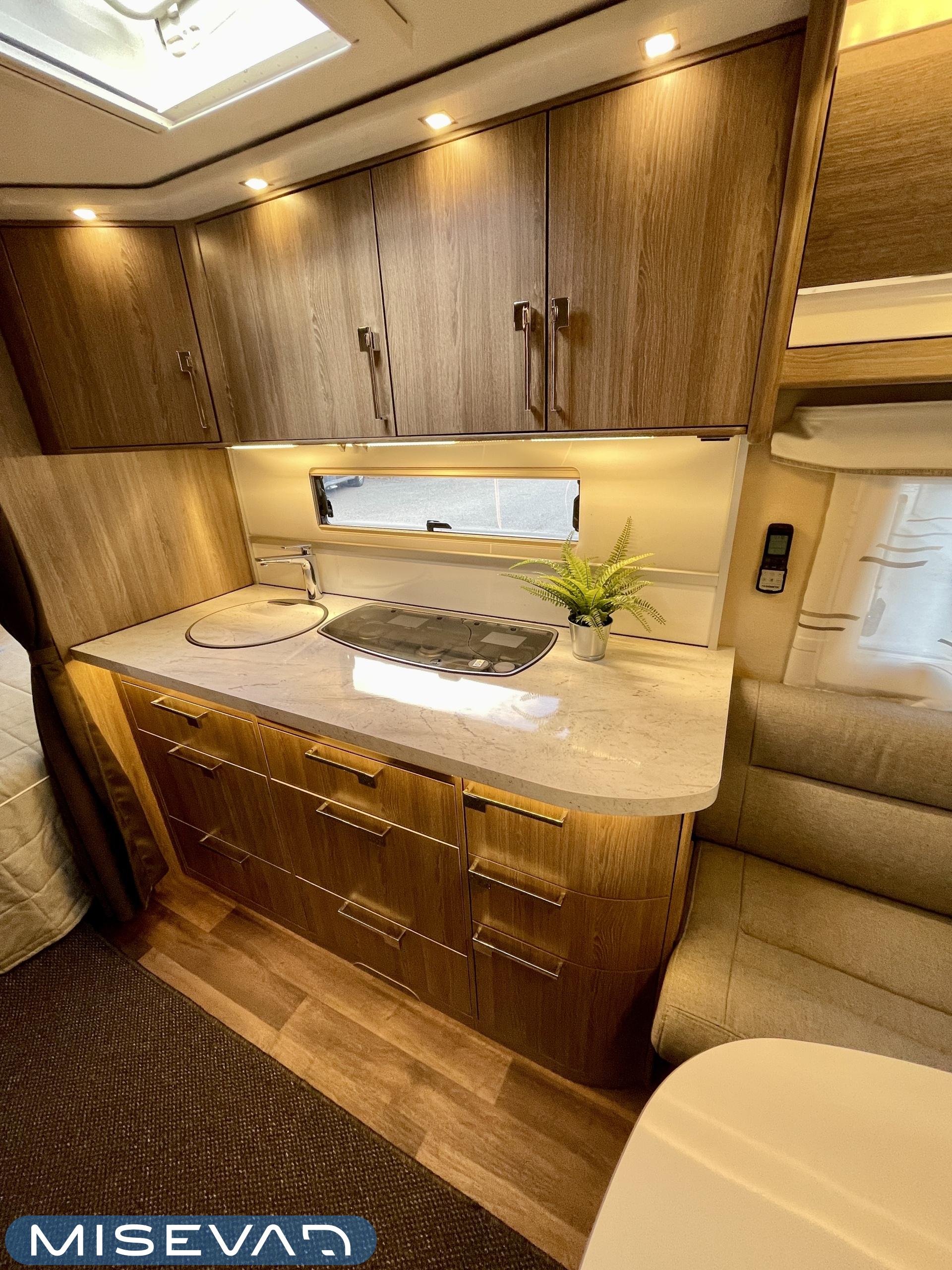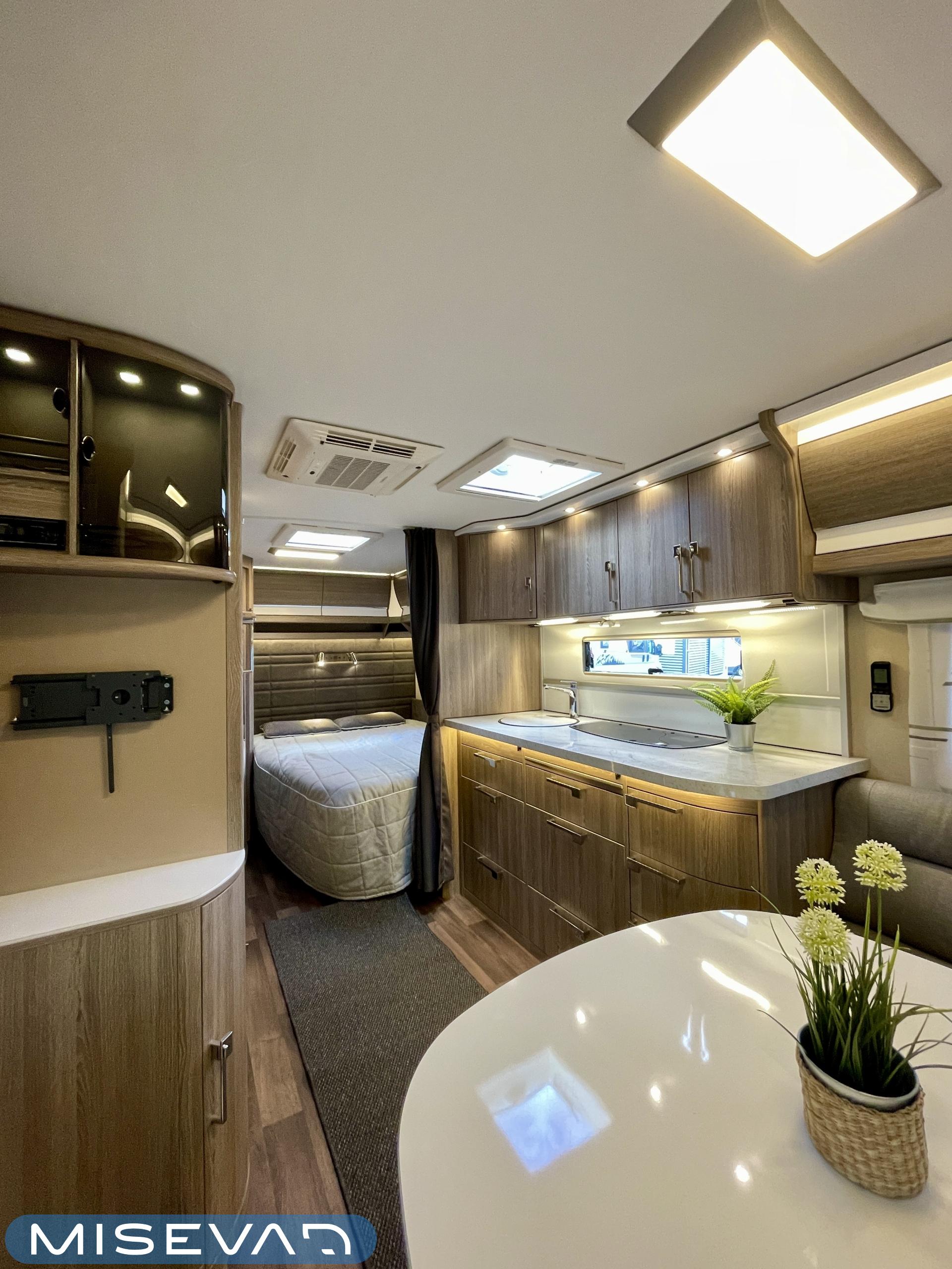 Alde, Special wheels, Separate beds, Fridge, Cassette WC, Cassette blinds, Hot water boiler, Stove, Floor heating, Roof hatch, Fluid circulation heating, Sink, Freezer compartment, Shower, Electric heating cartridge, Support legs