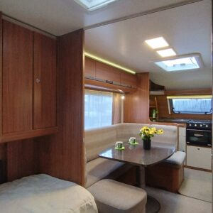 Alde, Special wheels, Separate beds, Fridge, Gas oven, Cassette WC, Cassette blinds, Roof hatch, Passenger area carpets, Stove, Hot water boiler, Fluid circulation heating, Freezer compartment, Sink, Bicycle rack, Shower, Electric heating cartridge, Kesärenkaat, kwh-mittari, sähkön ulosotto, Floor heating