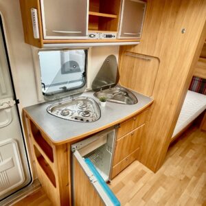 Alde, CD-soitin, Special wheels, Fridge, Cassette WC, Cassette blinds, Roof hatch, Floor heating, Stove, Hot water boiler, Sun shade, Fluid circulation heating, Freezer compartment, Double bed, Sink, Electric heating cartridge, TV-antenni tai lautasantenni, Support legs, Lattialämmitys (sähkö), kwh-mittari