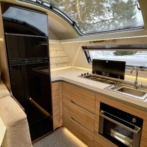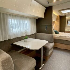 Alde, Fridge, Gas oven, Two tyre sets, Cassette WC, Cassette blinds, Roof hatch, Bunk bed, Stove, Hot water boiler, Microwave oven, Fluid circulation heating, Freezer compartment, Double bed, Sink, Shower, Electric heating cartridge, Support legs, Lattialämmitys (nestekierto), Kesärenkaat, Talvirenkaat(nasta), sähkön ulosotto