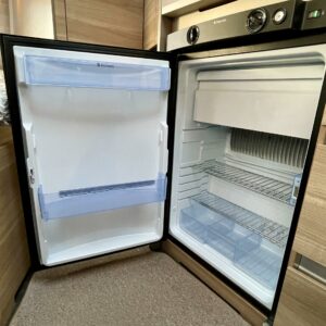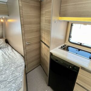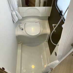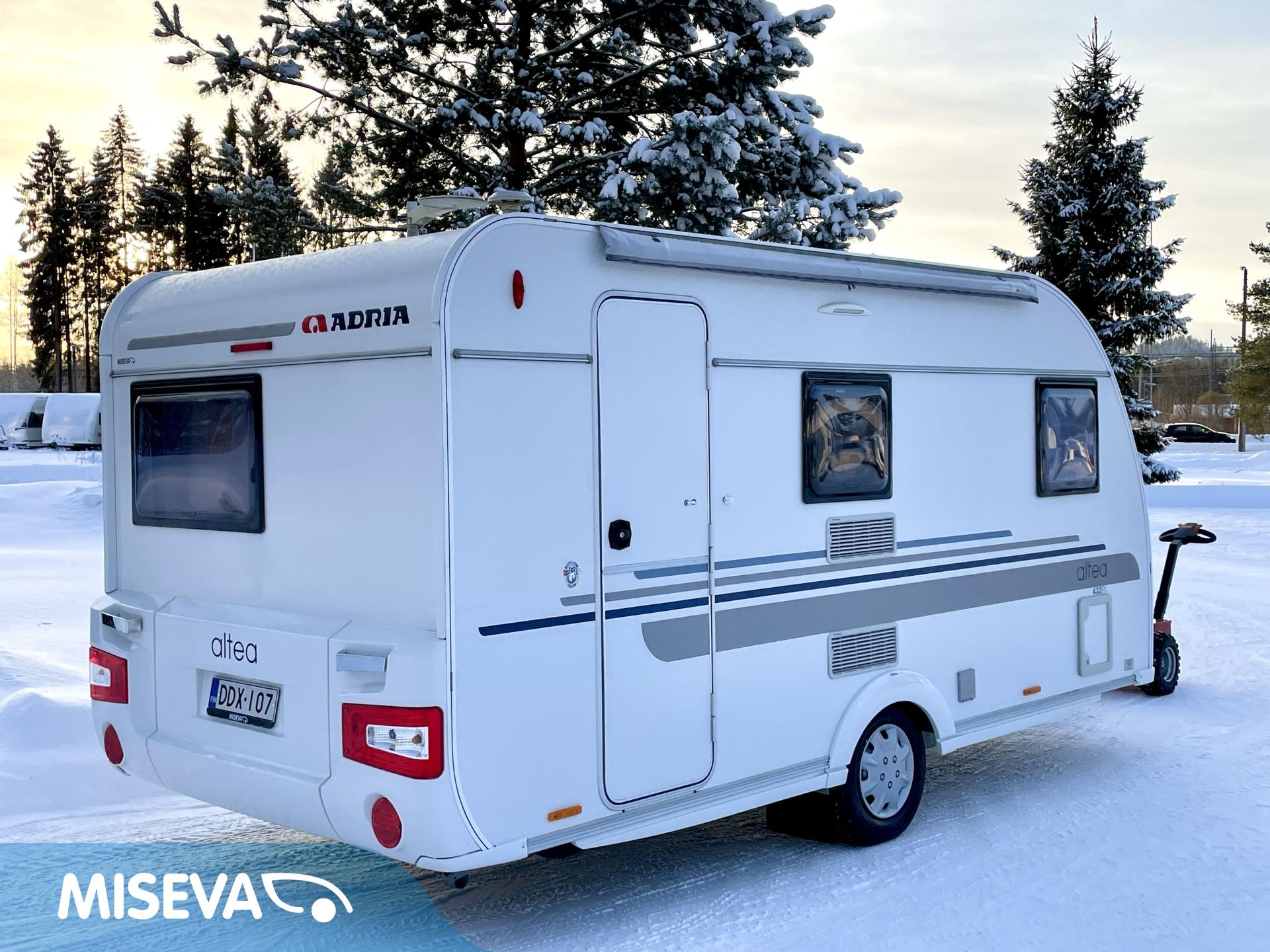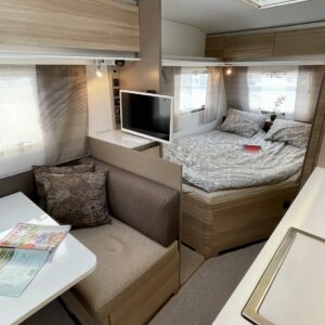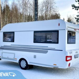 Cassette blinds, Cassette WC, Fridge, Roof hatch, Floor heating, Stove, Hot water boiler, Sun shade, Sink, Freezer compartment, Double bed, Electric heating cartridge, TV-antenni tai lautasantenni, Trumatic, Support legs, Passenger area carpets, Shower, Bicycle rack