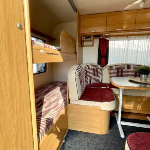 Alde, CD-soitin, Special wheels, Fridge, Cassette WC, Cassette blinds, Roof hatch, Bunk bed, Floor heating, Passenger area carpets, Stove, Hot water boiler, Fluid circulation heating, Freezer compartment, Double bed, Sink, Electric heating cartridge, TV-antenni tai lautasantenni, Support legs, Lattialämmitys (sähkö), Asuinosan hyttysovi/verho