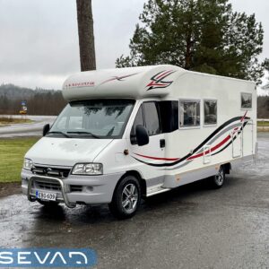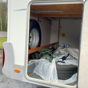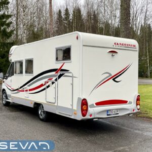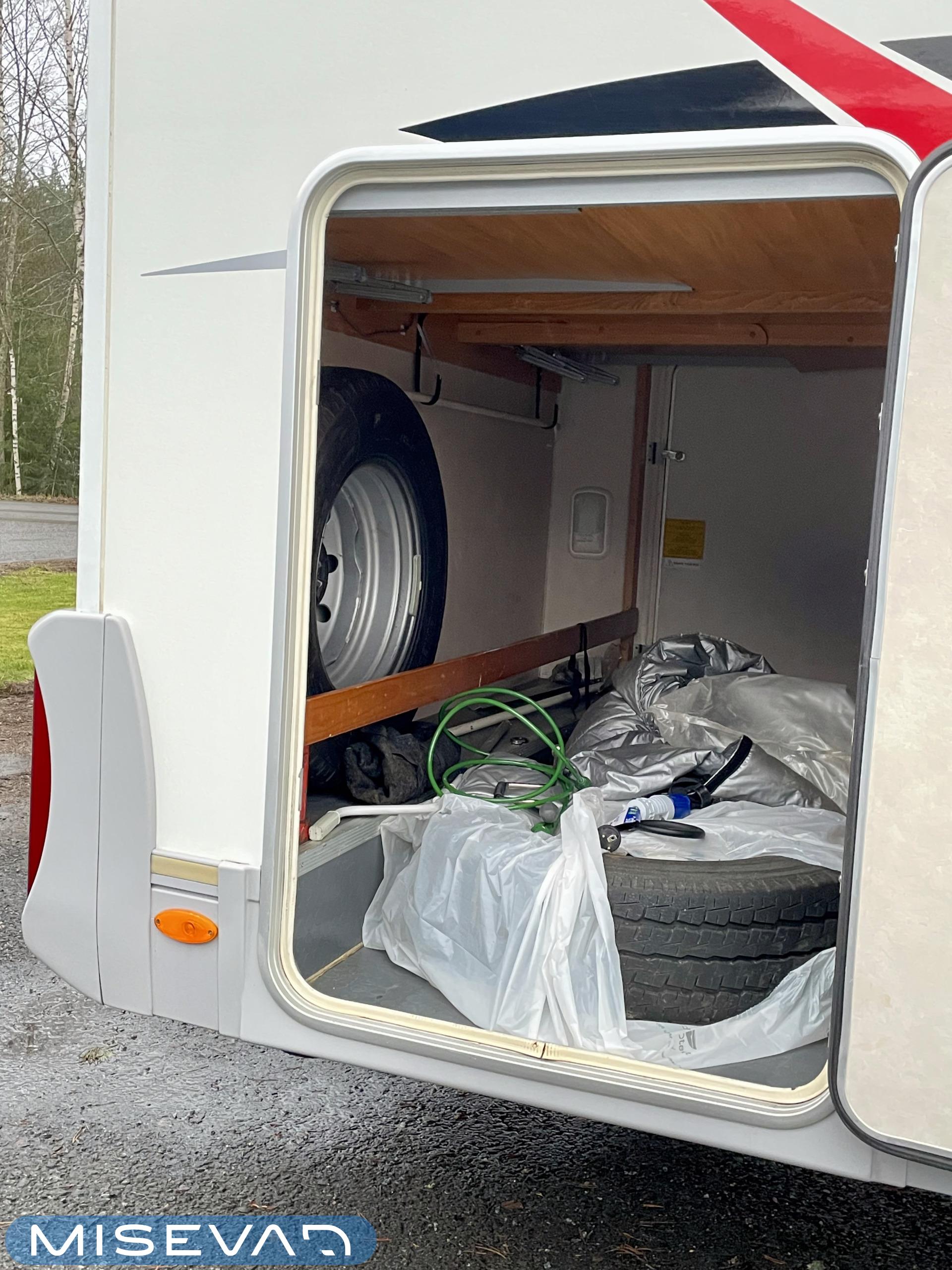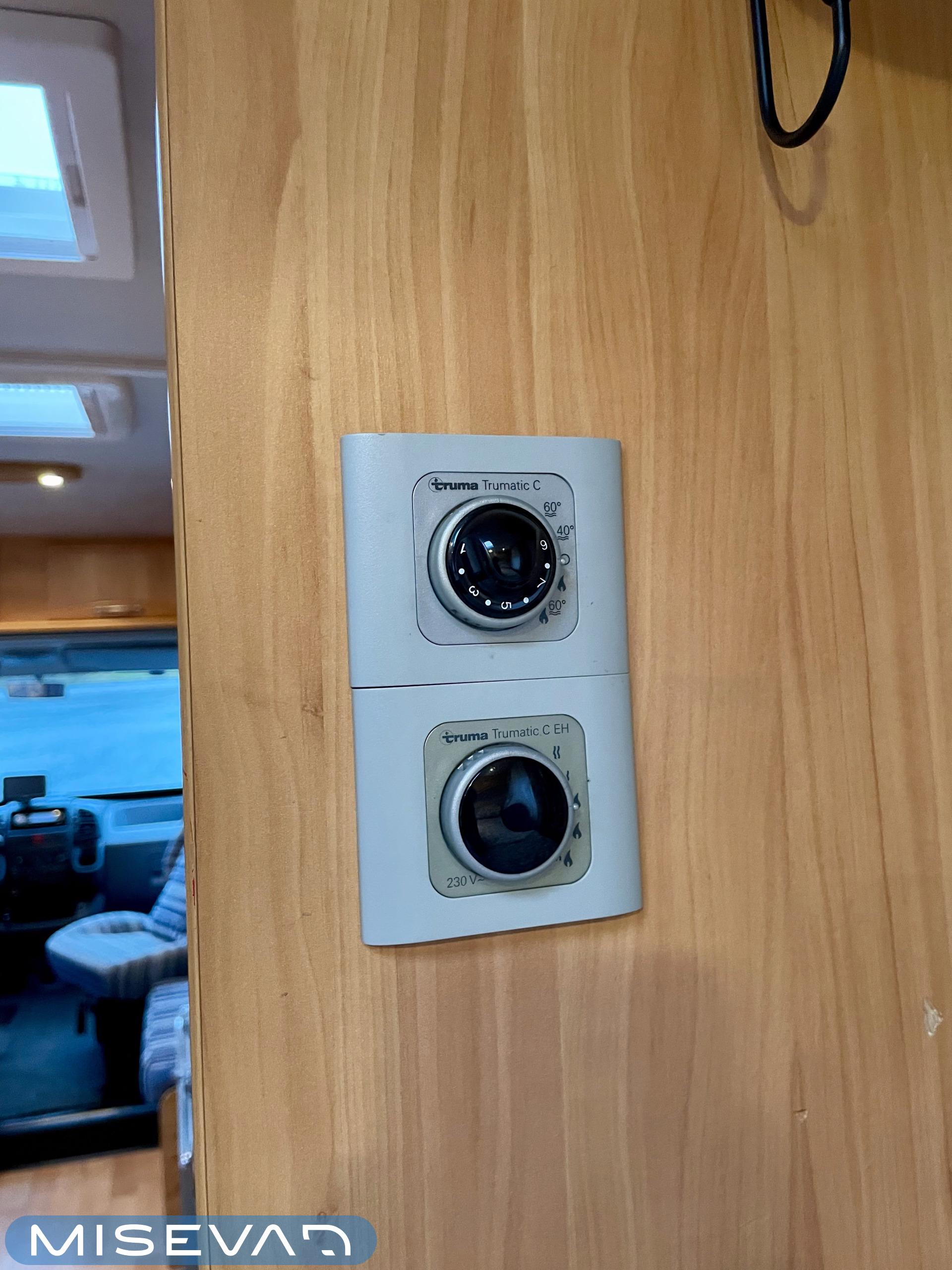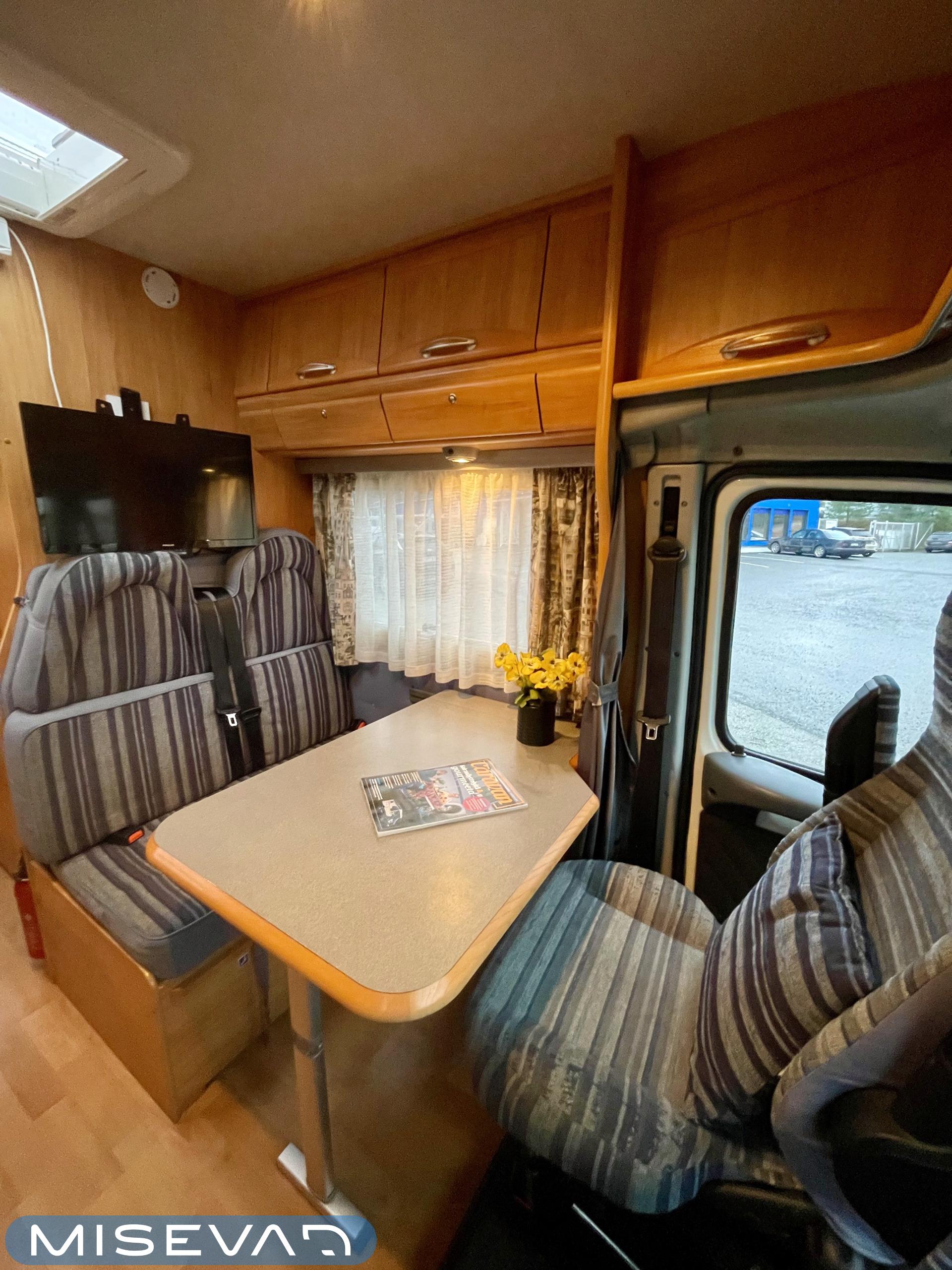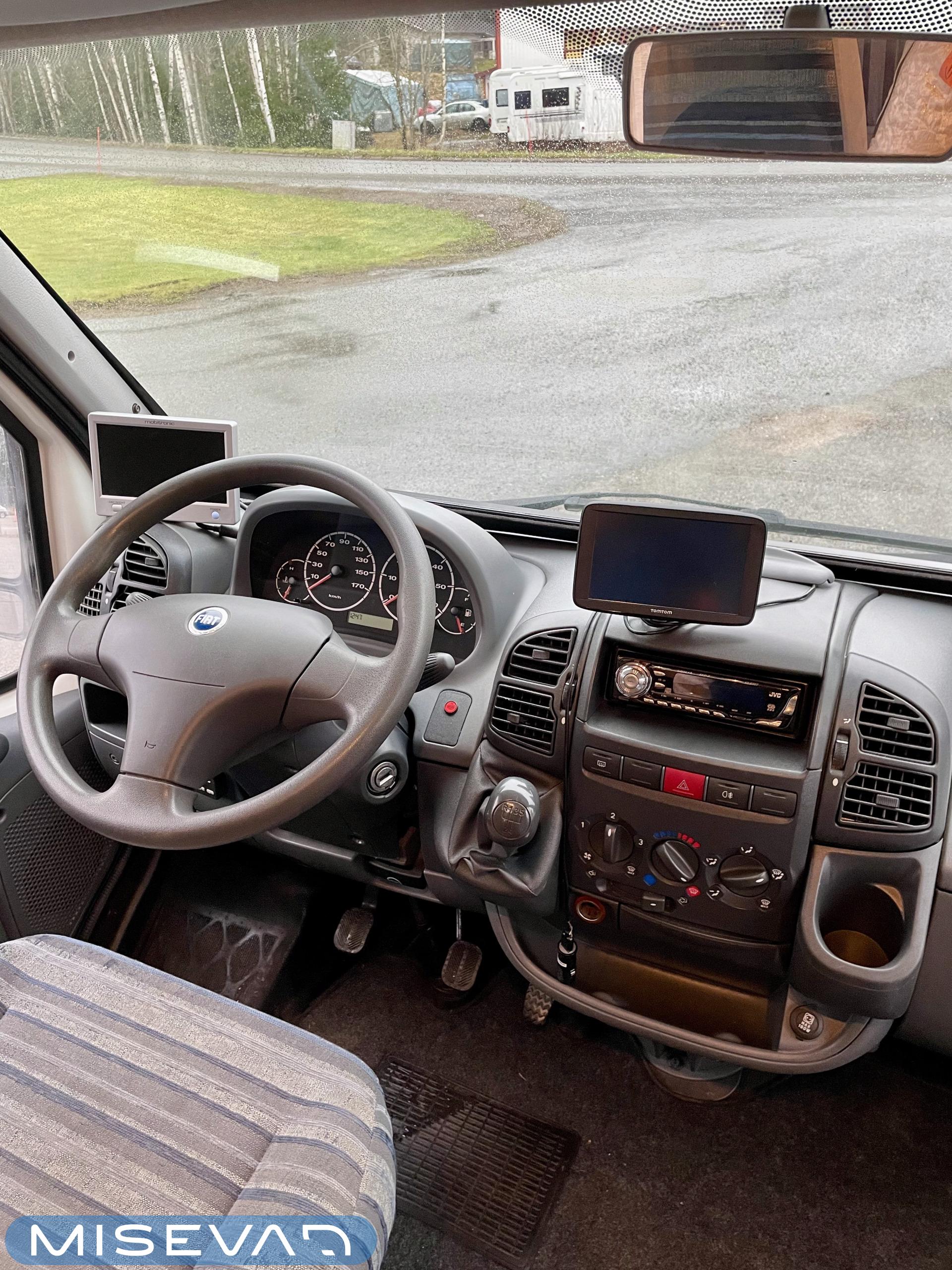 Electric heating cartridge, Sun shade, Insulated grey water tank, harmaavesisäiliön lämmitys, Separate beds, Fridge, Pysäköintikamera, Trumatic, Floor heating, Stove, Electric steps, Radio, Interior plug, Shower, Cassette WC, Service history, Invertteri, Asuinosan hyttysovi/verho, Two tyre sets, Engine heater, Navigator, Special wheels, Microwave oven