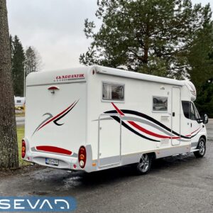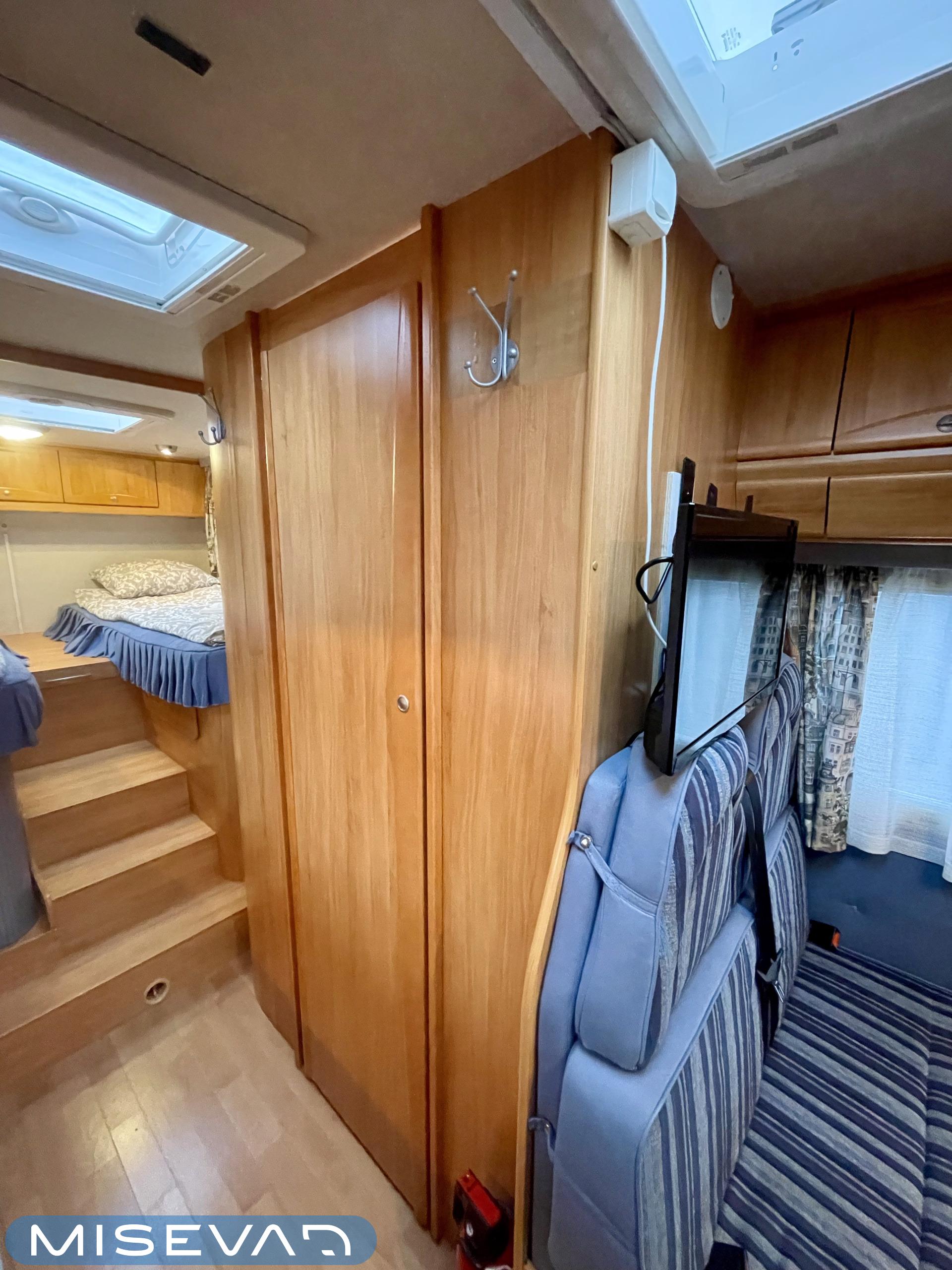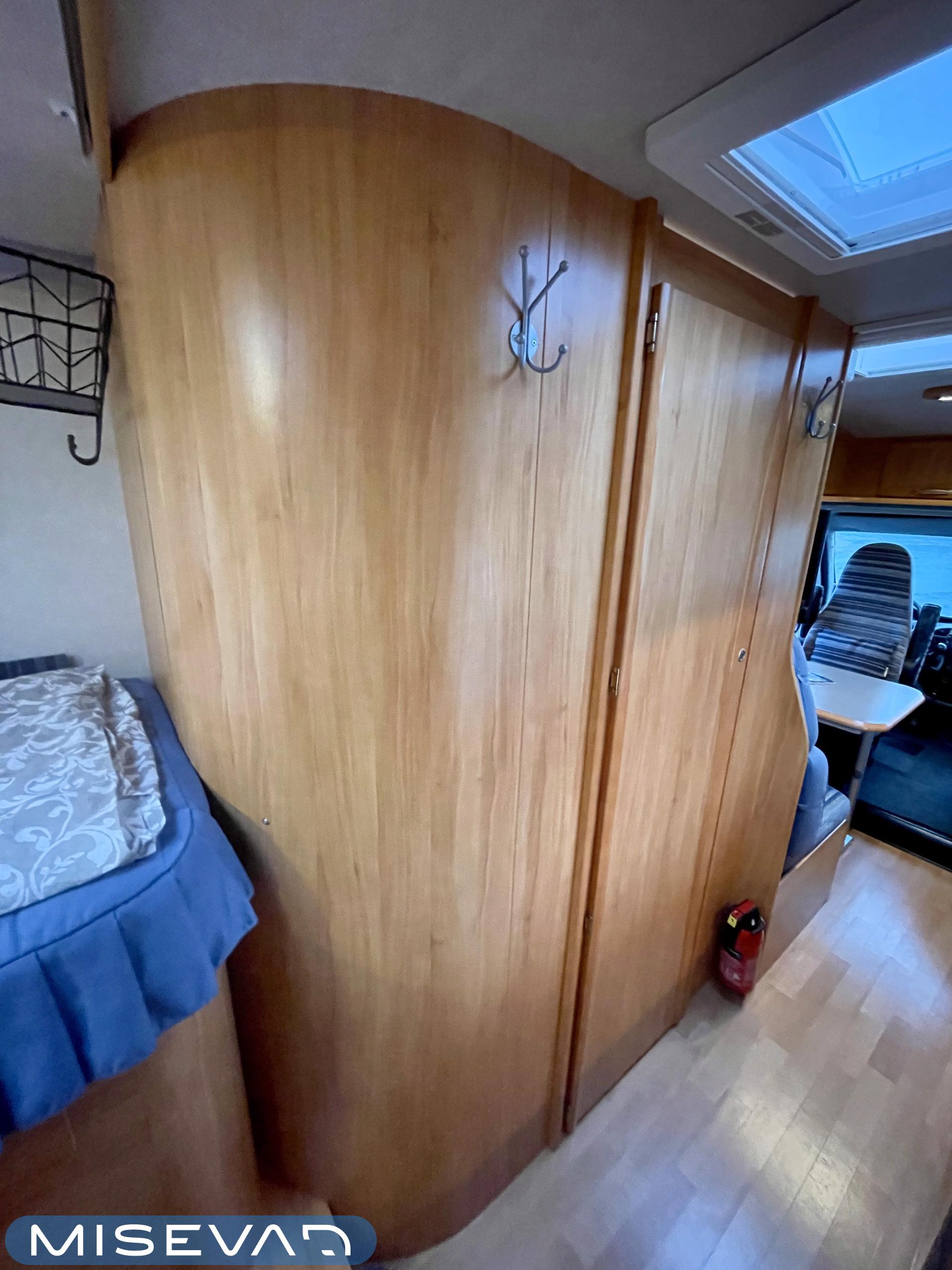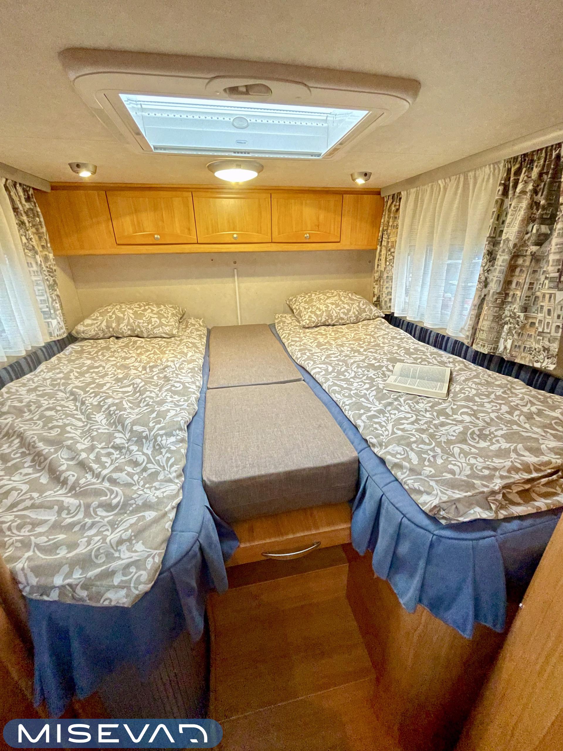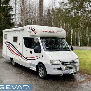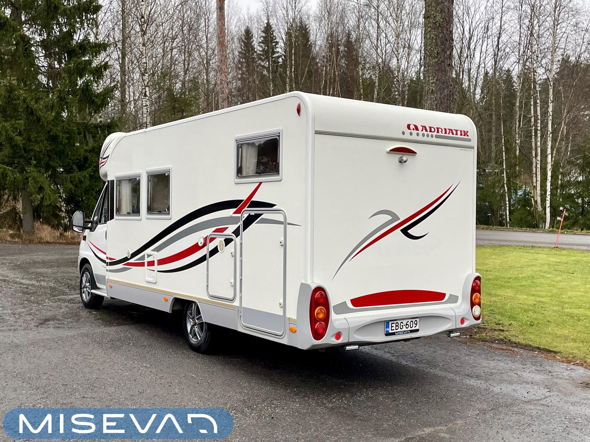 Electric heating cartridge, Sun shade, Insulated grey water tank, harmaavesisäiliön lämmitys, Separate beds, Fridge, Pysäköintikamera, Trumatic, Floor heating, Stove, Electric steps, Radio, Interior plug, Shower, Cassette WC, Service history, Invertteri, Asuinosan hyttysovi/verho, Two tyre sets, Engine heater, Navigator, Special wheels, Microwave oven