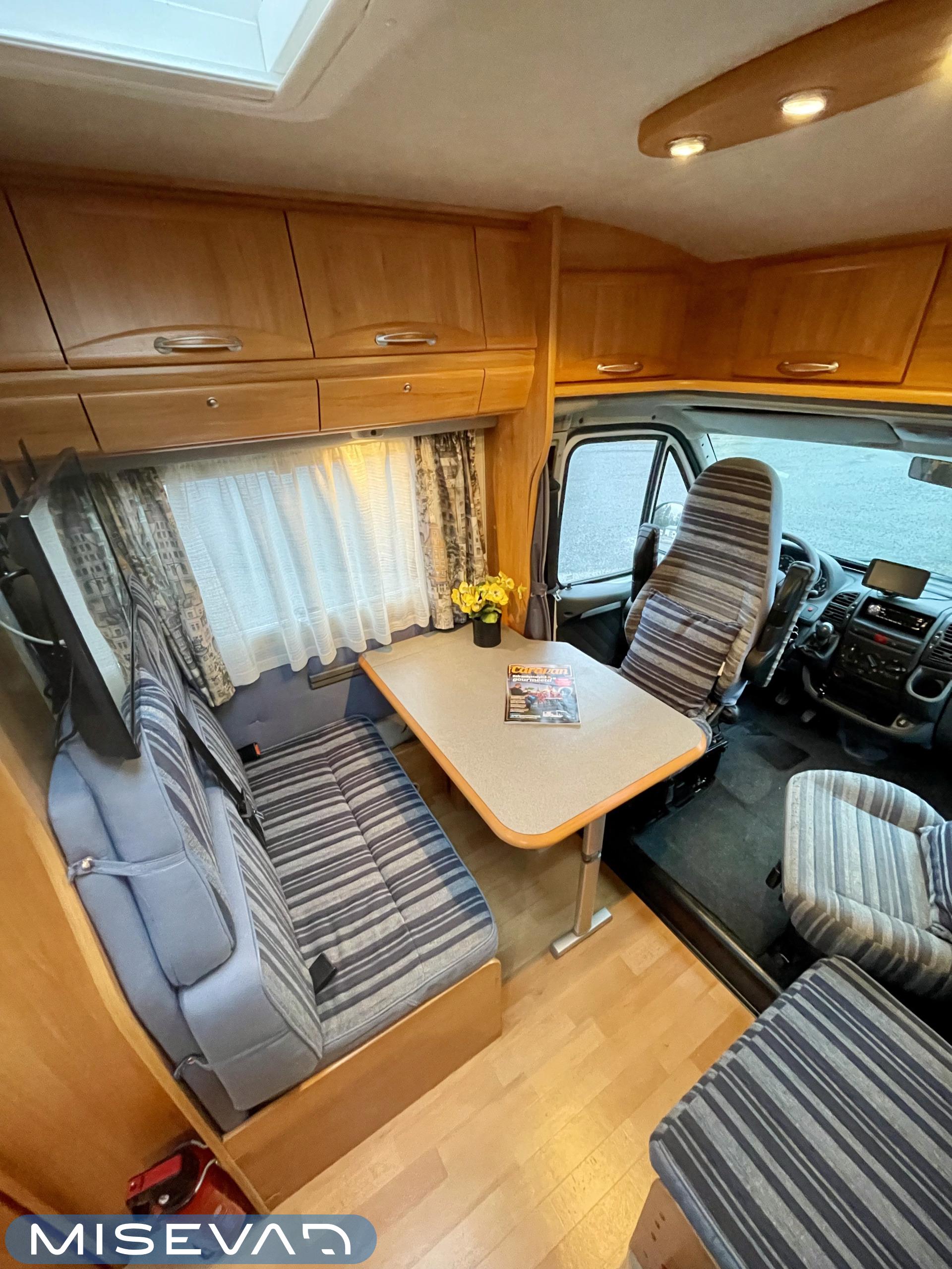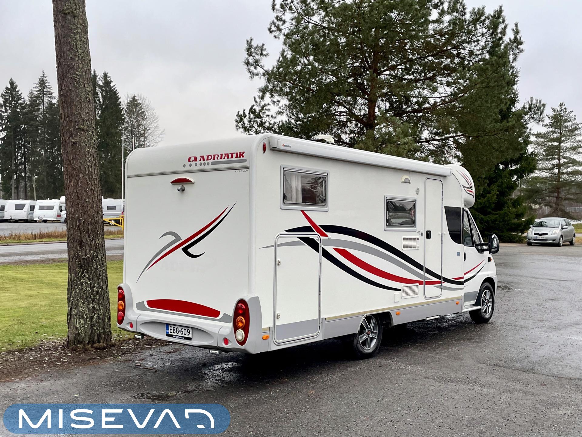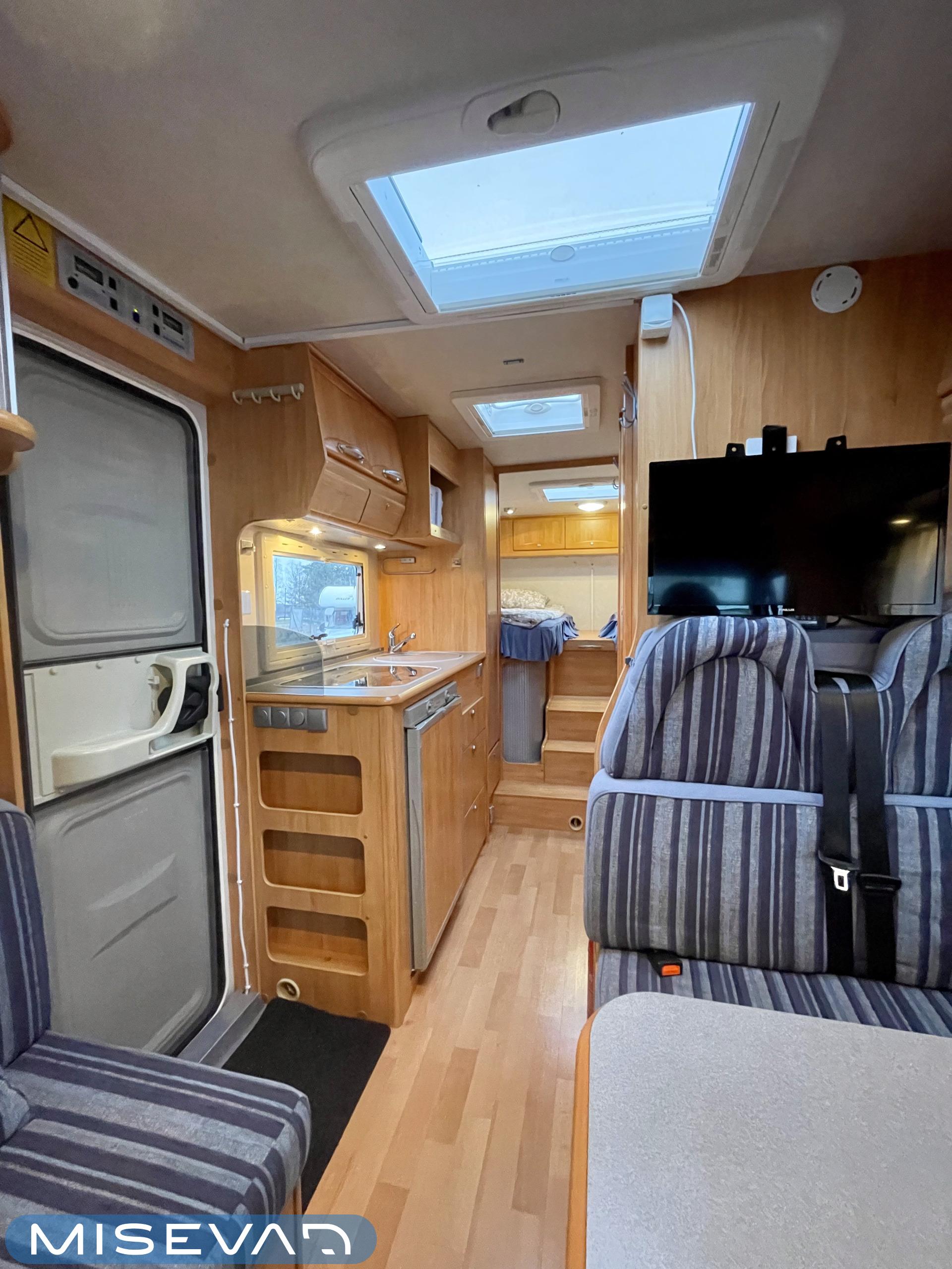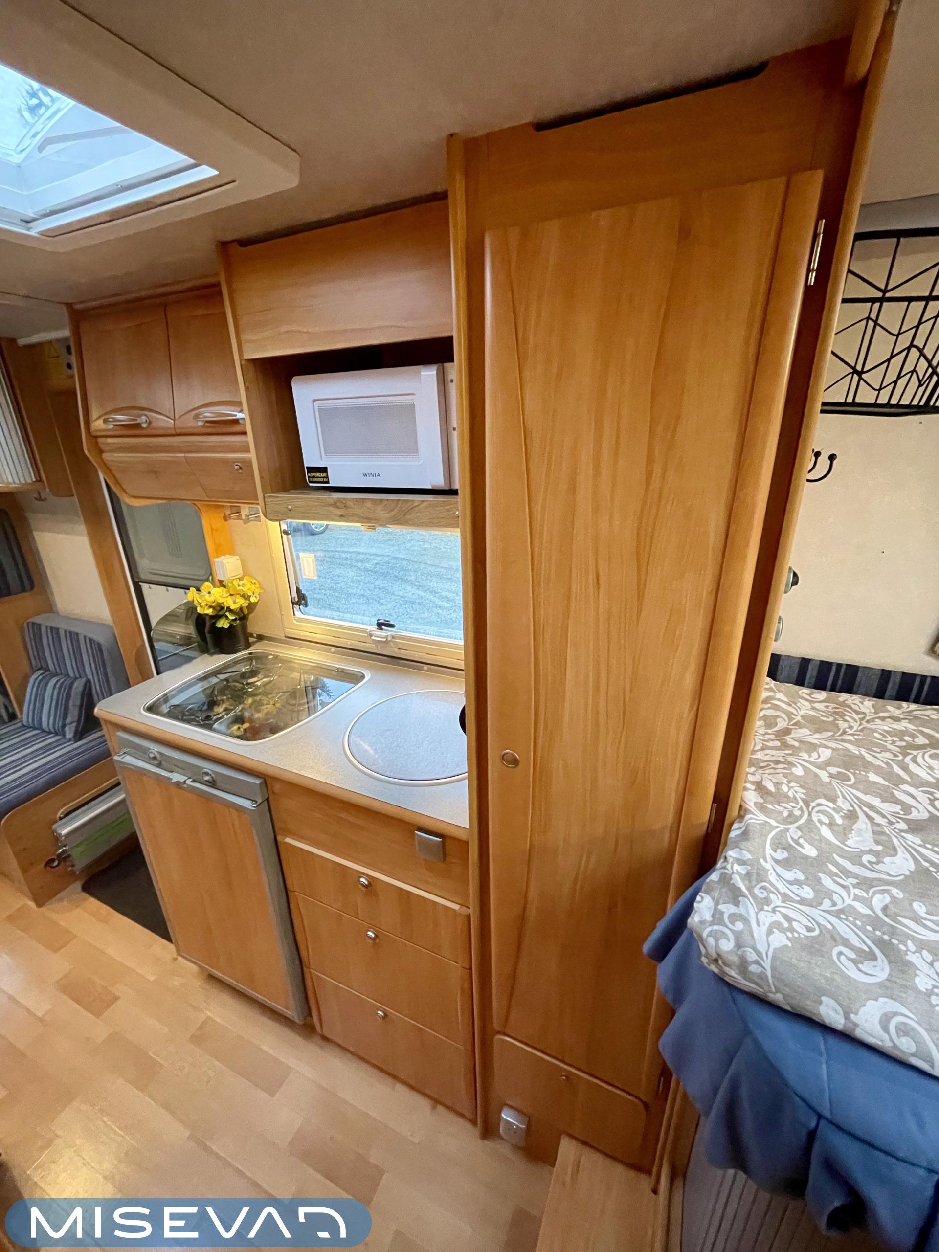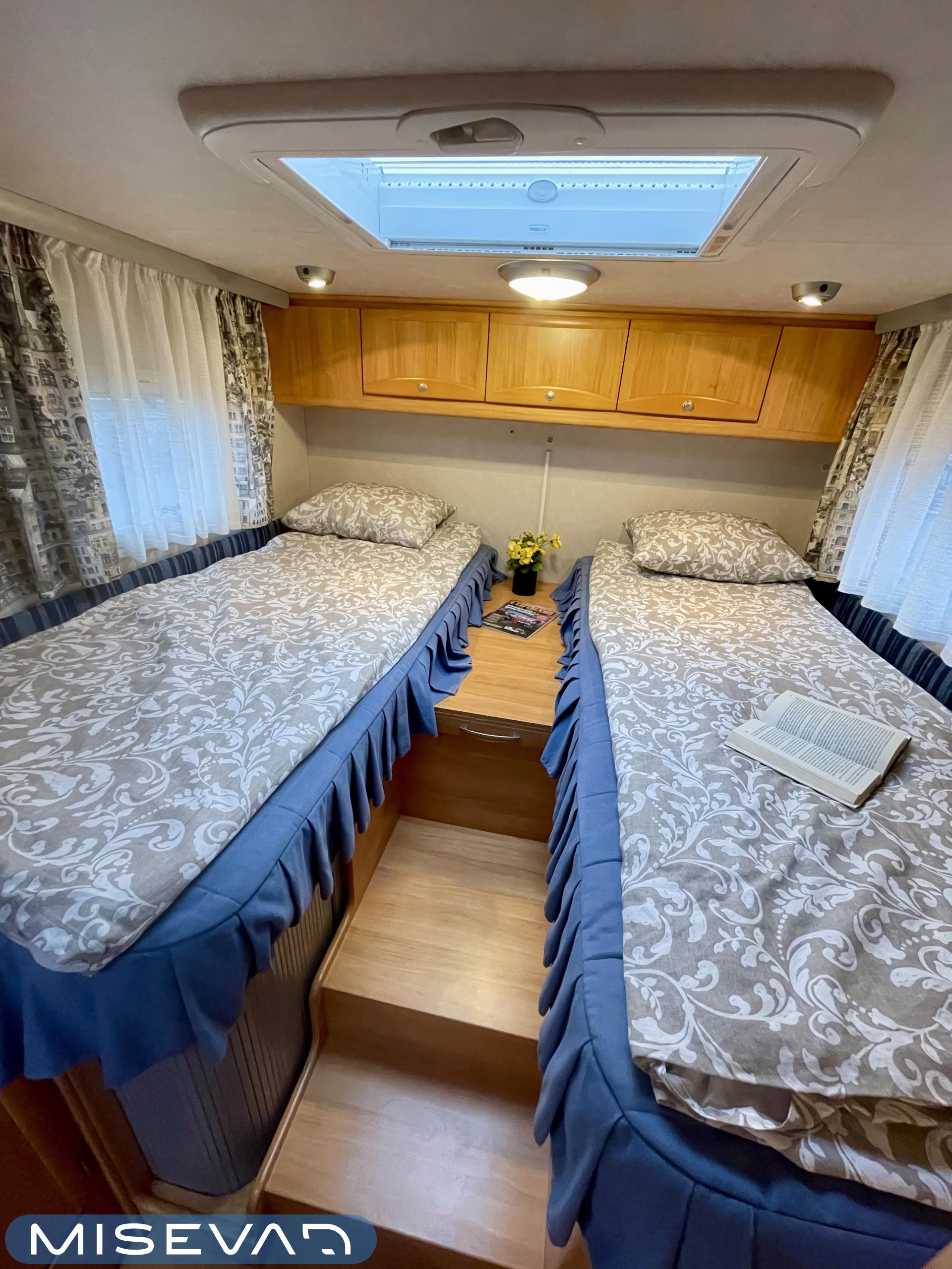 Electric heating cartridge, Sun shade, Insulated grey water tank, harmaavesisäiliön lämmitys, Separate beds, Fridge, Pysäköintikamera, Trumatic, Floor heating, Stove, Electric steps, Radio, Interior plug, Shower, Cassette WC, Service history, Invertteri, Asuinosan hyttysovi/verho, Two tyre sets, Engine heater, Navigator, Special wheels, Microwave oven