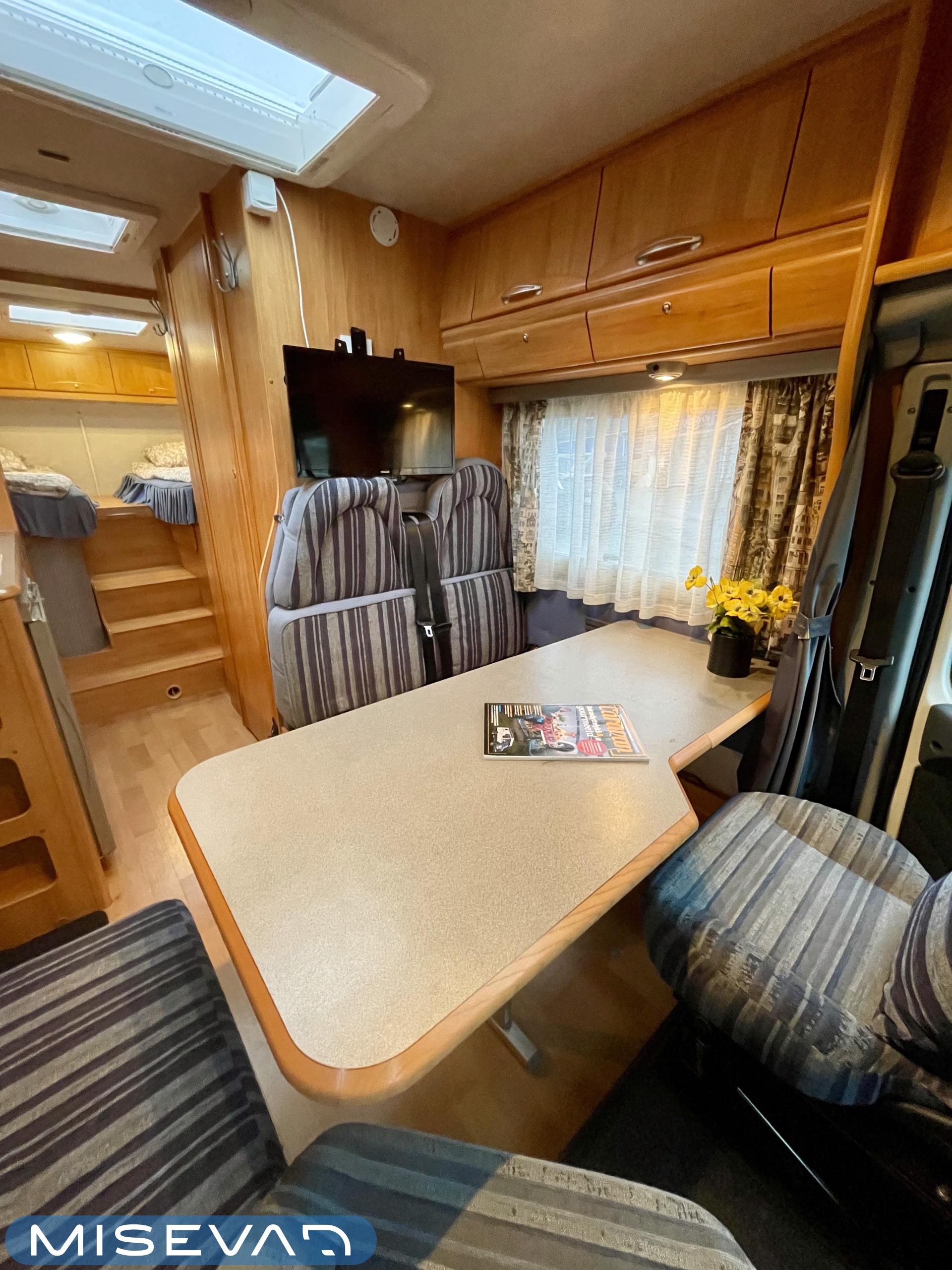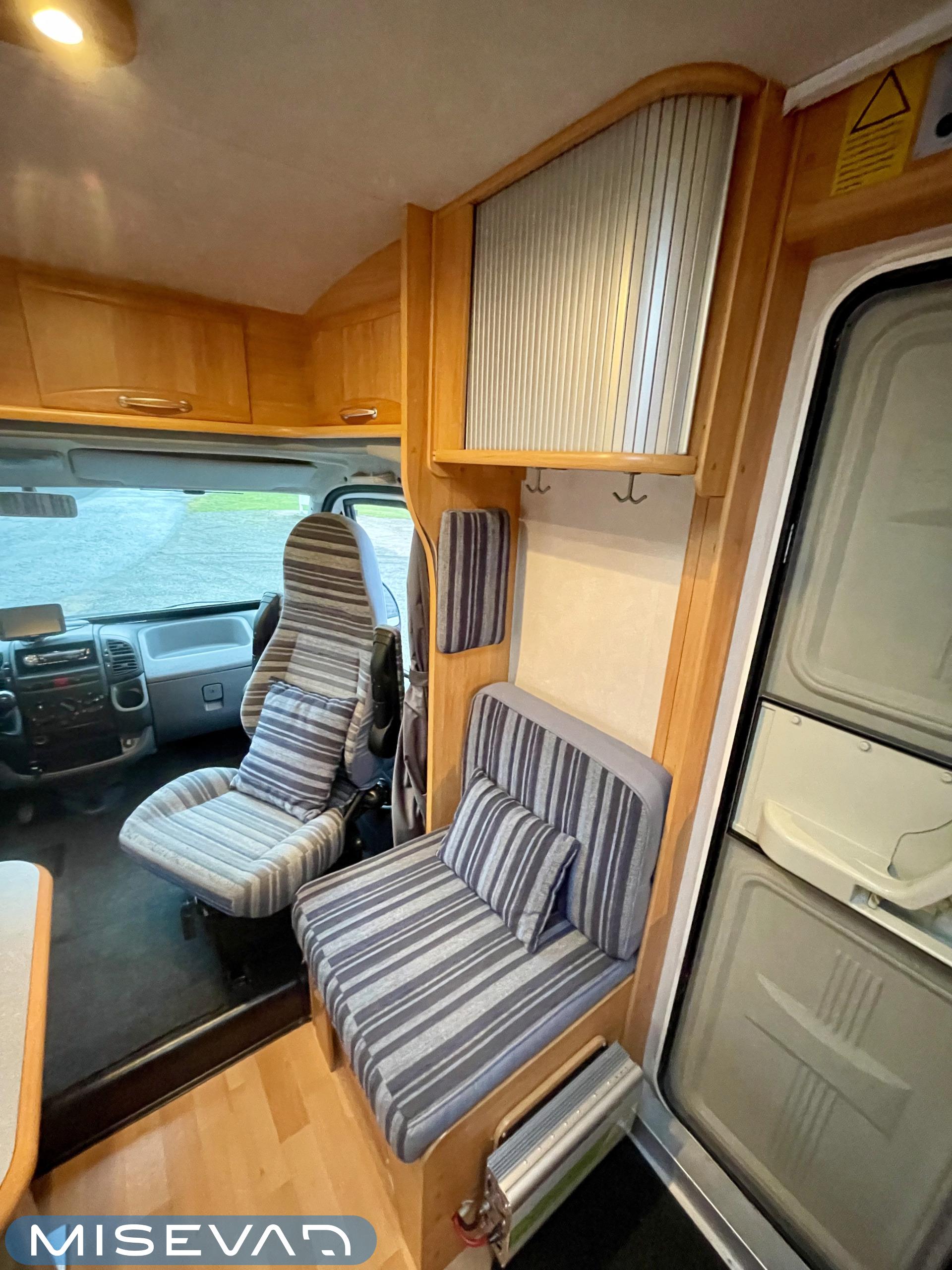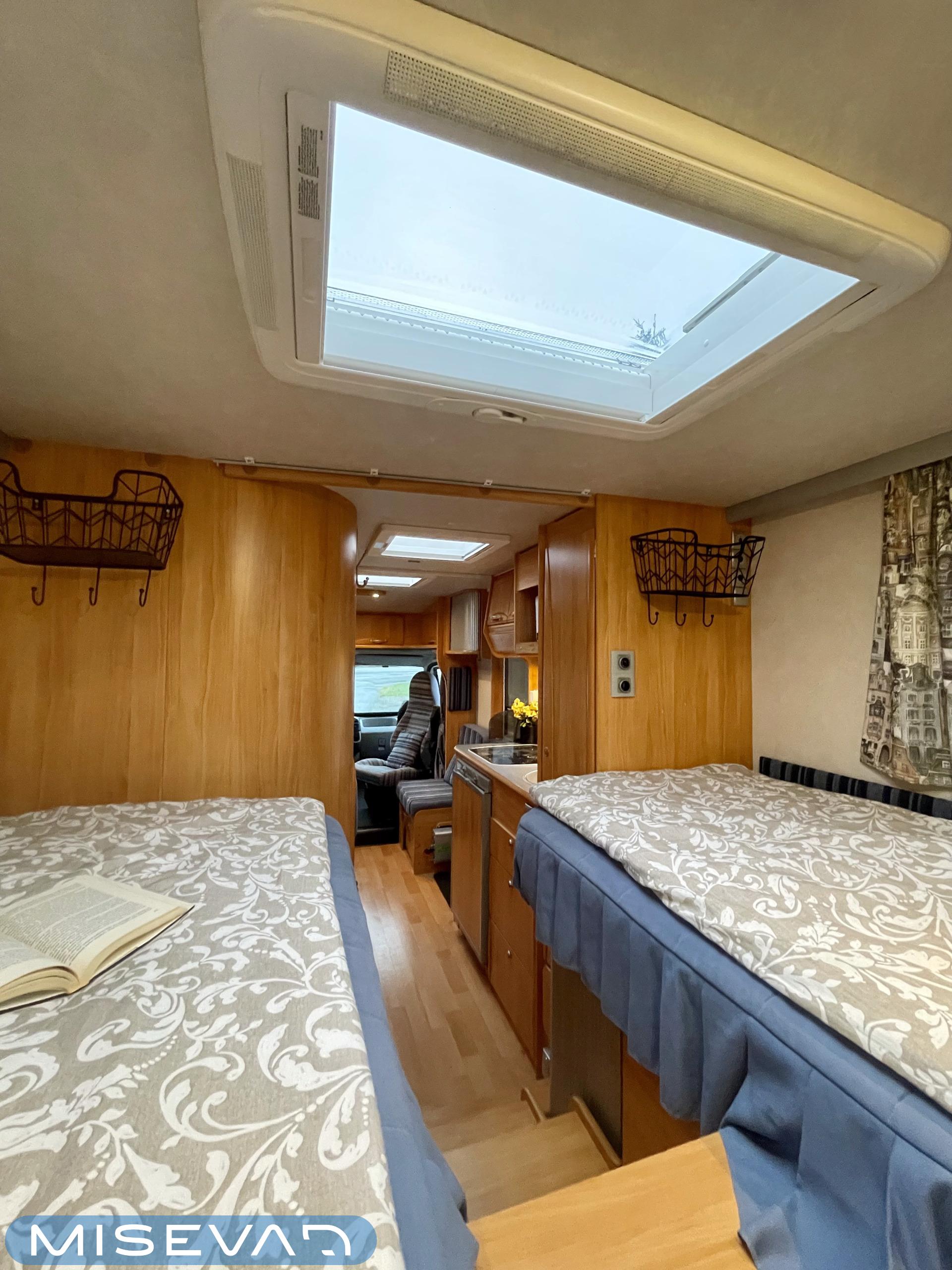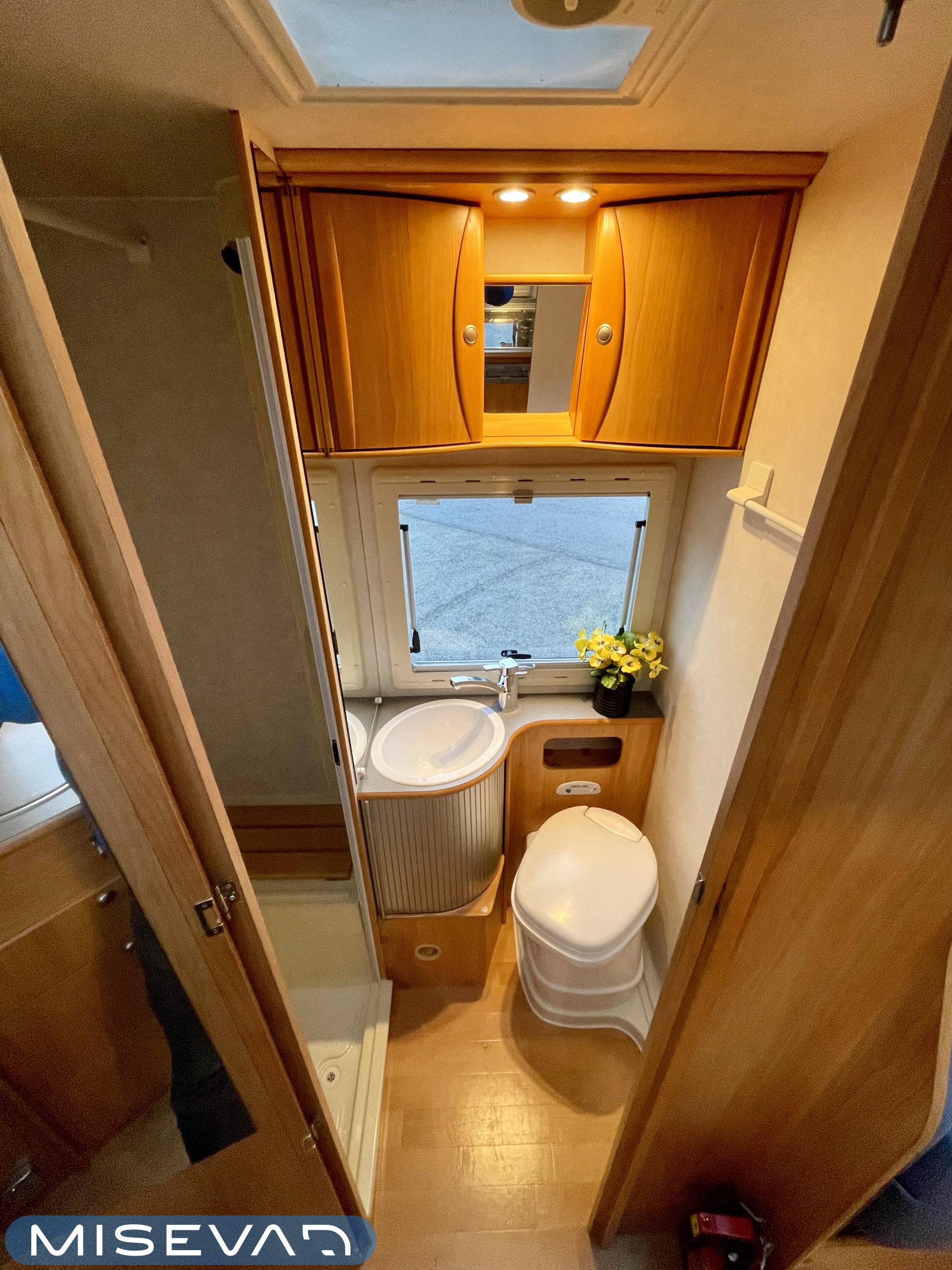 Electric heating cartridge, Sun shade, Insulated grey water tank, harmaavesisäiliön lämmitys, Separate beds, Fridge, Pysäköintikamera, Trumatic, Floor heating, Stove, Electric steps, Radio, Interior plug, Shower, Cassette WC, Service history, Invertteri, Asuinosan hyttysovi/verho, Two tyre sets, Engine heater, Navigator, Special wheels, Microwave oven