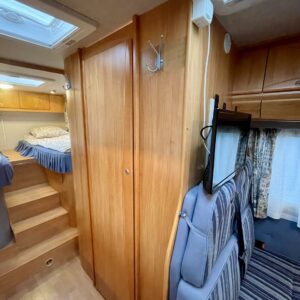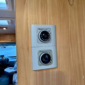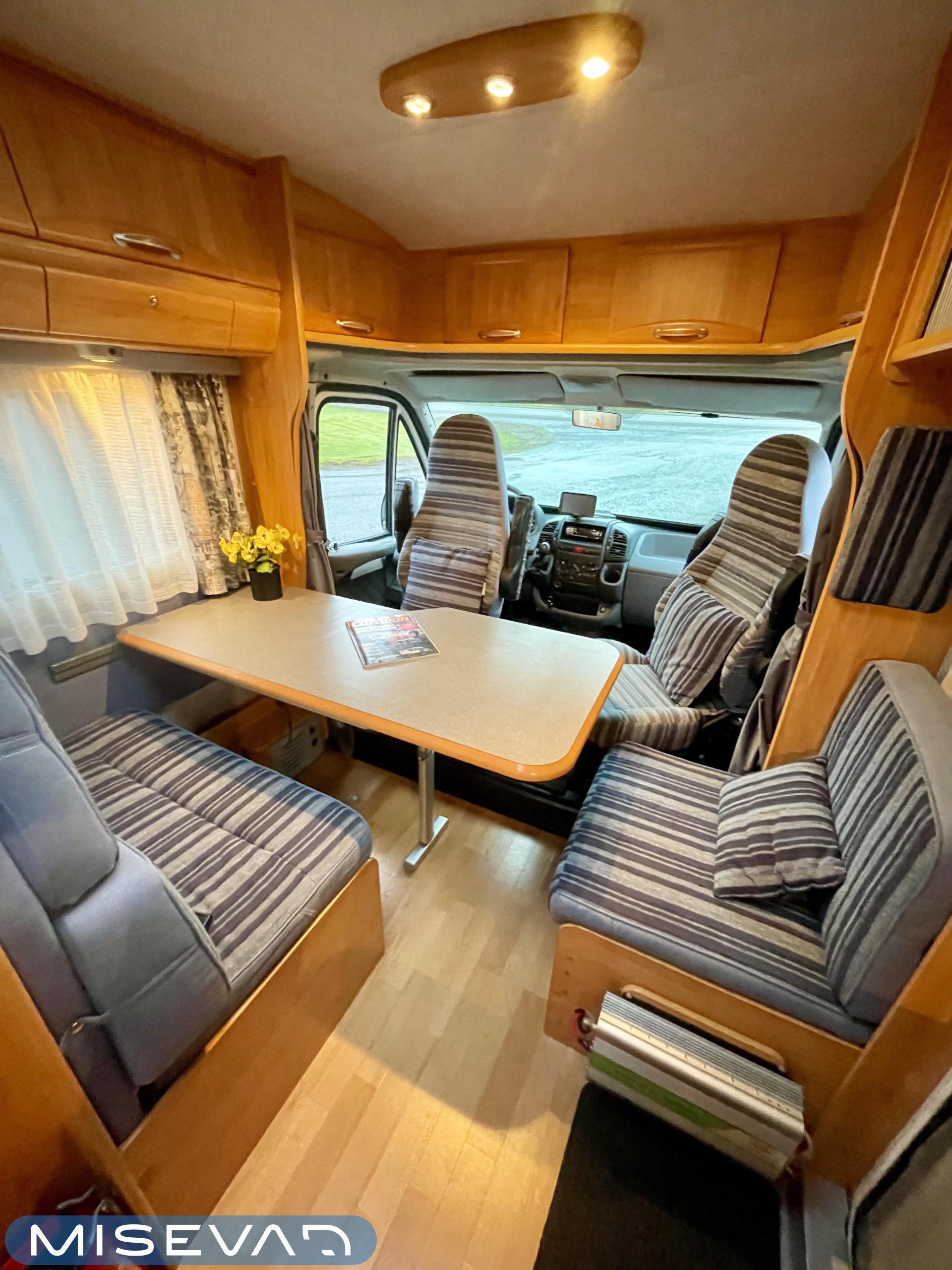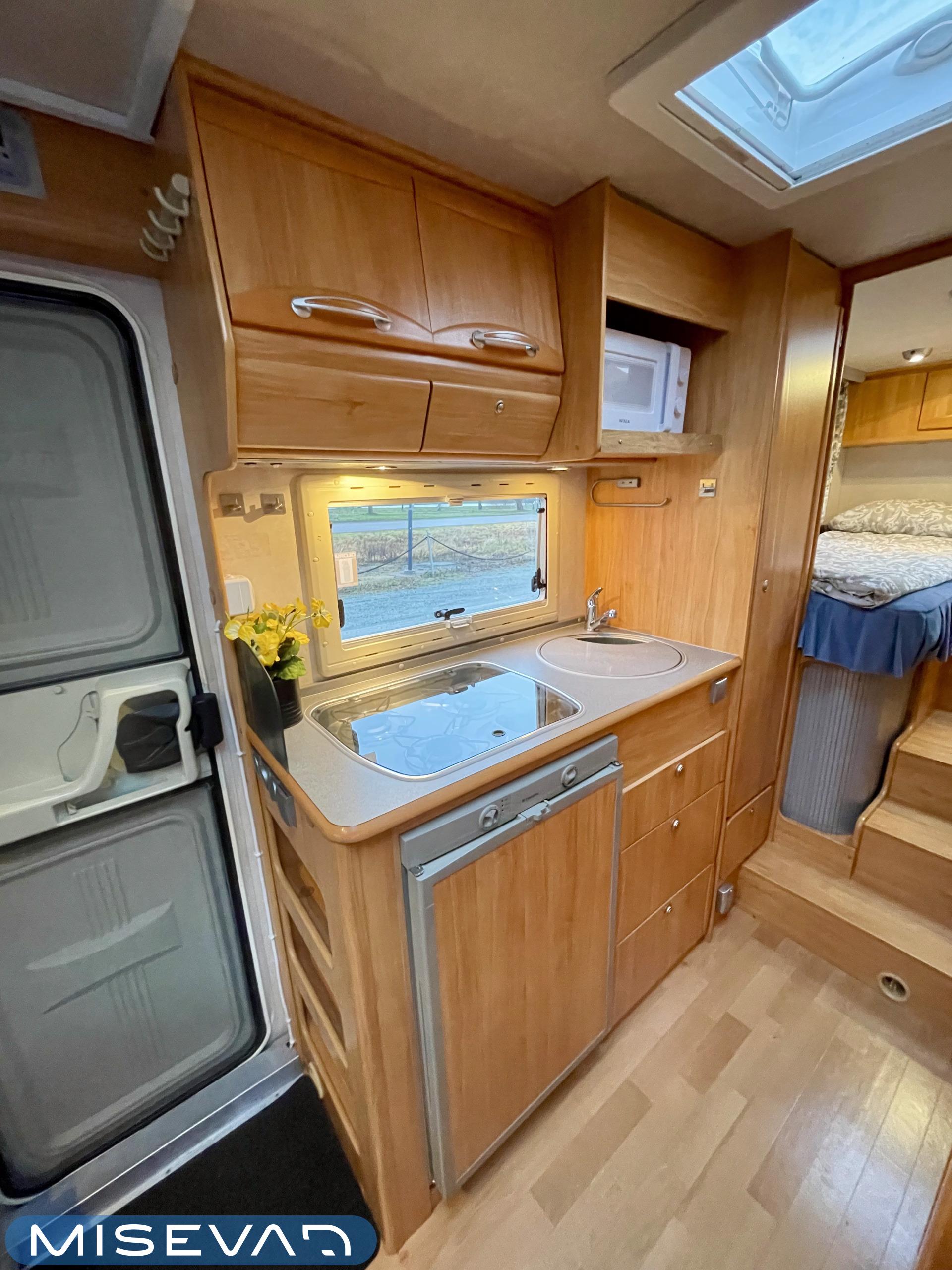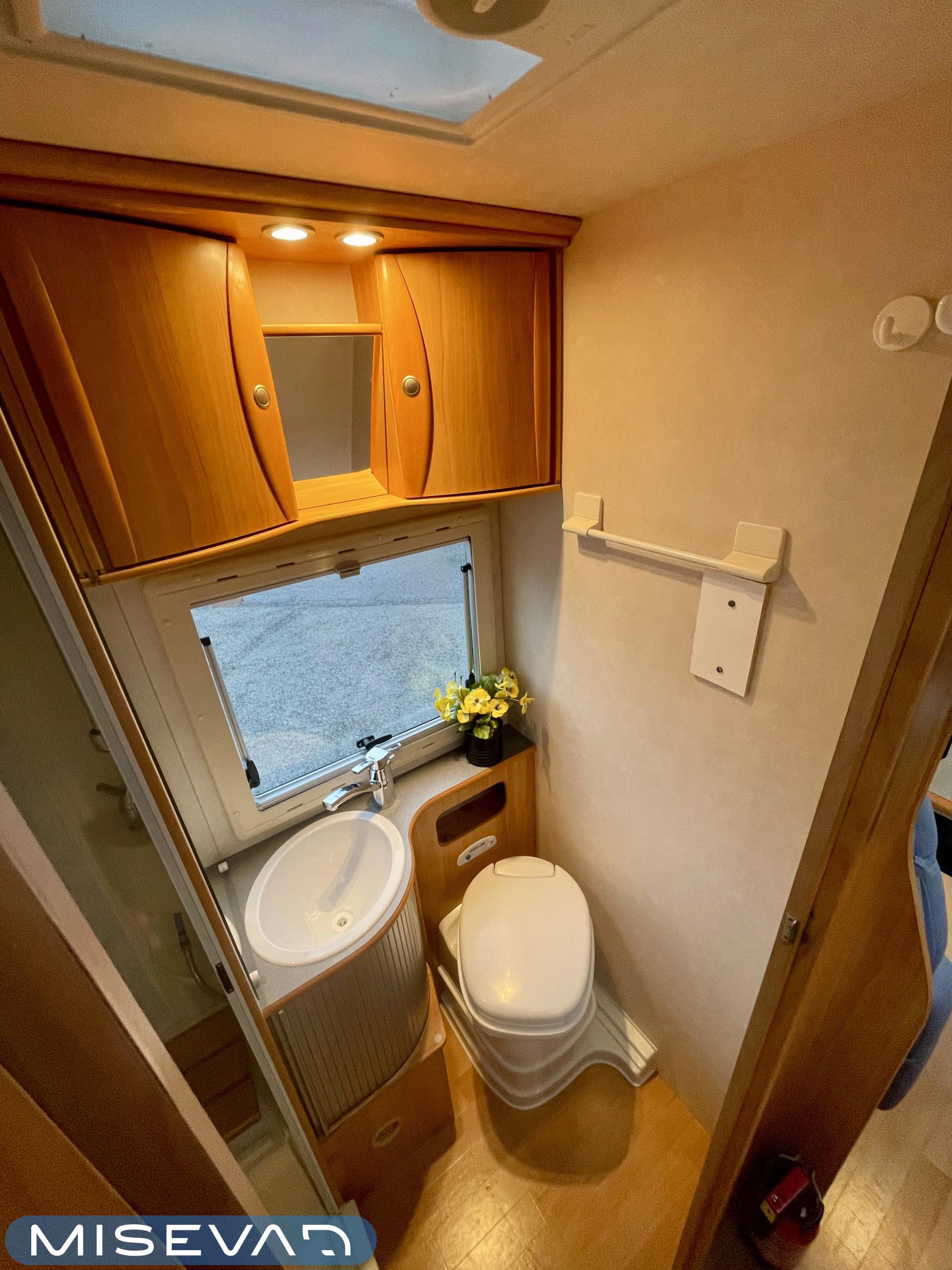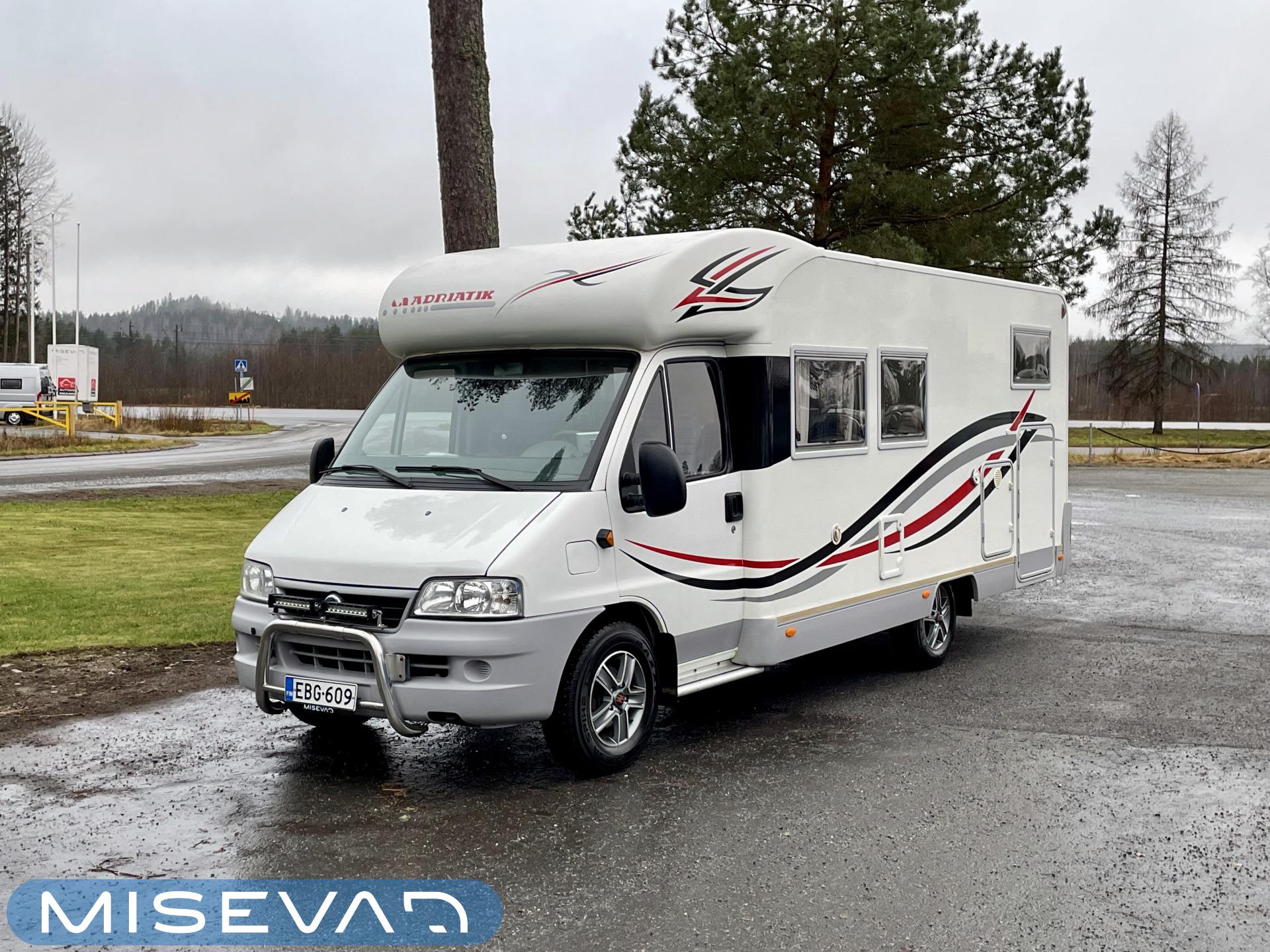 Electric heating cartridge, Sun shade, Insulated grey water tank, harmaavesisäiliön lämmitys, Separate beds, Fridge, Pysäköintikamera, Trumatic, Floor heating, Stove, Electric steps, Radio, Interior plug, Shower, Cassette WC, Service history, Invertteri, Asuinosan hyttysovi/verho, Two tyre sets, Engine heater, Navigator, Special wheels, Microwave oven