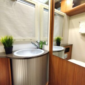Trumatic, TV-antenni tai lautasantenni, Engine heater, Truma, Trip computer, Fridge, Cassette blinds, Roof hatch, Keskuslukitus: Kaukosäätöinen, Central heating, Ignition interlock, Floor heating, Passenger area carpets, Stove, Hot water boiler, Sun shade, Power steering, Freezer compartment, Double bed, Sink, Shower, Radio, Bicycle rack, Pysäköintitutka, Electric windows, Electric heating cartridge, Vakionopeudensäädin, Turbo, Ilmastointi (ohjaamo), Cab air conditioning, Ilmastointi: Manuaalinen, Gas oven, Two tyre sets, Cassette WC