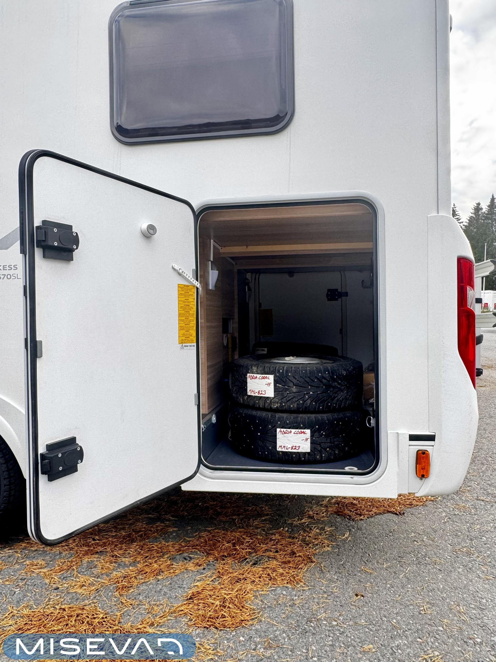 ABS brakes, Airbag, Trip computer, Separate beds, Insulated grey water tank, Cab air conditioning, Fridge, Two tyre sets, Cassette WC, Cassette blinds, Roof hatch, Keskuslukitus: Kaukosäätöinen, Central heating, Ignition interlock, Floor heating, Stove, Hot water boiler, Sun shade, Power steering, Radio, Shower, Electric windows, Electric heating cartridge, Power side mirrors, Trumatic, Turbo, Vakionopeudensäädin