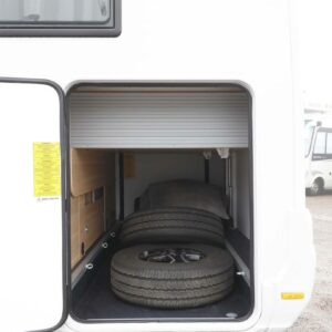 ESC system, Trip computer, Special wheels, Two tyre sets, Electric heating cartridge, Insulated grey water tank, Cab air conditioning, Fridge, Cassette WC, Roof railing/ladder, Roof hatch, Bunk bed, Central heating, Floor heating, Passenger area carpets, Traction control, Hot water boiler, Freezer compartment, Double bed, Shower, Power side mirrors, Electric steps, Trumatic, Vakionopeudensäädin, Pysäköintikamera