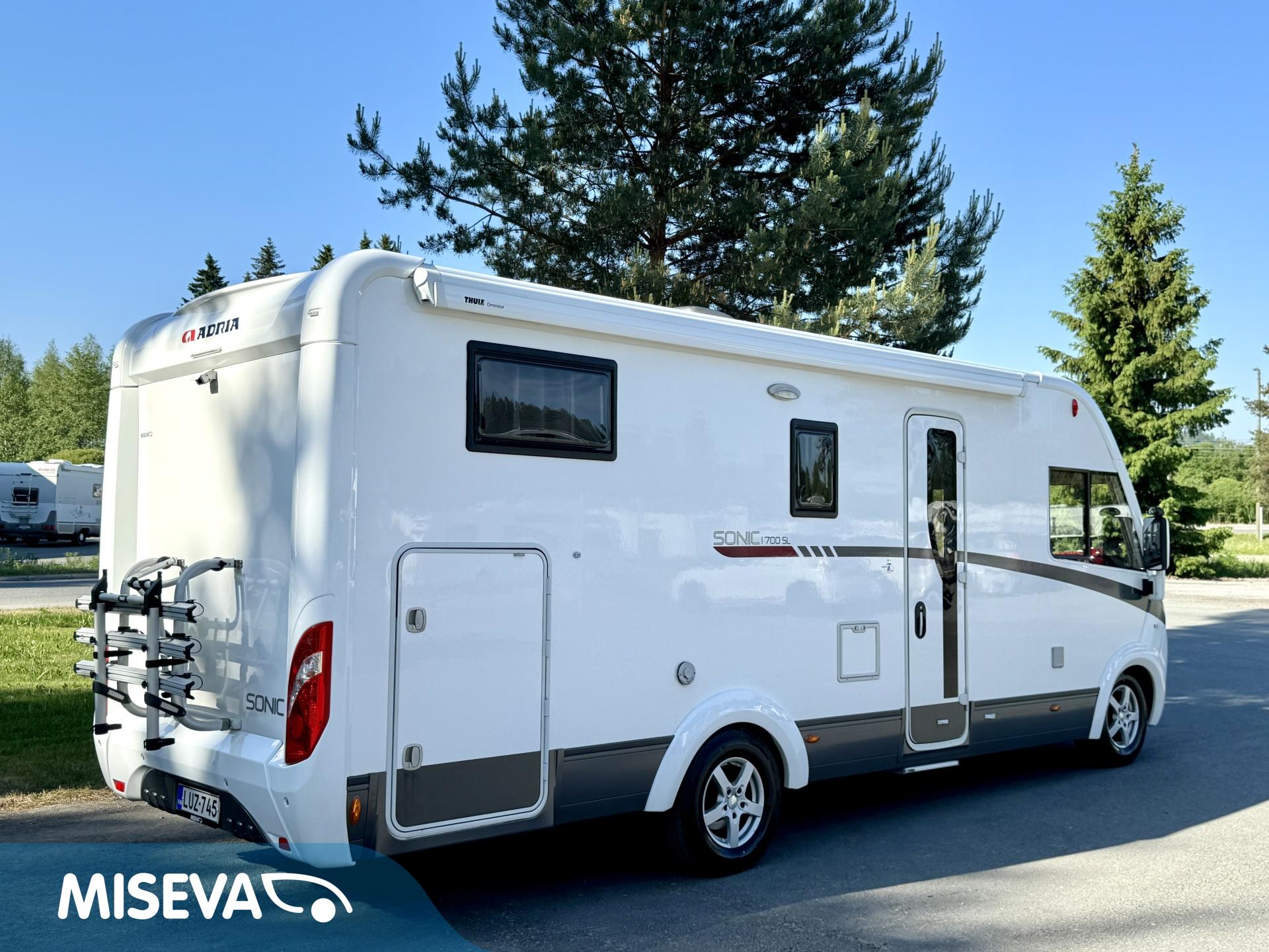 ABS brakes, Airbag, Trip computer, Special wheels, Separate beds, Cab air conditioning, Fridge, Gas oven, Two tyre sets, Cassette WC, Cassette blinds, Roof hatch, Keskuslukitus: Kaukosäätöinen, Central heating, Stove, Hot water boiler, Sun shade, Power steering, Freezer compartment, Double bed, Sink, Fuel-operated additional heater, Pysäköintikamera, Bicycle rack, Radio, Shower, Electric heating cartridge, Trumatic, Vakionopeudensäädin, Lattialämmitys (sähkö), Kesärenkaat, Talvirenkaat(nasta), 1 x kevytmet.vanteet, laskuvuode