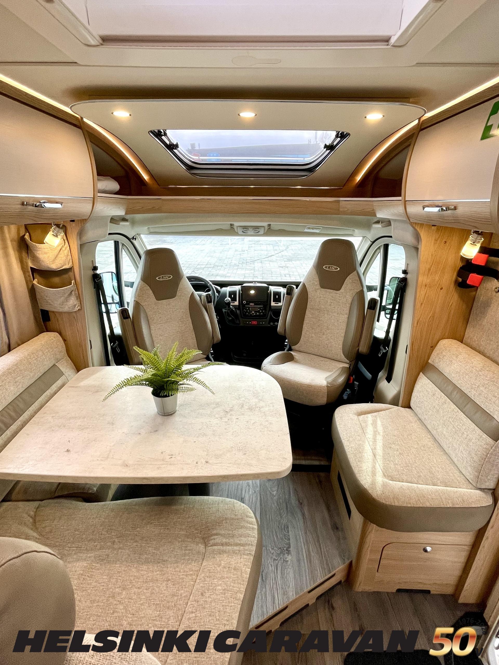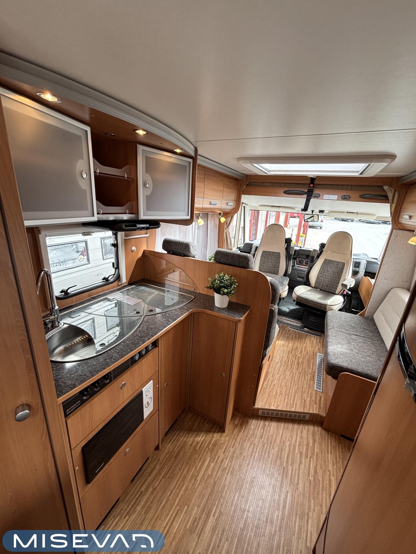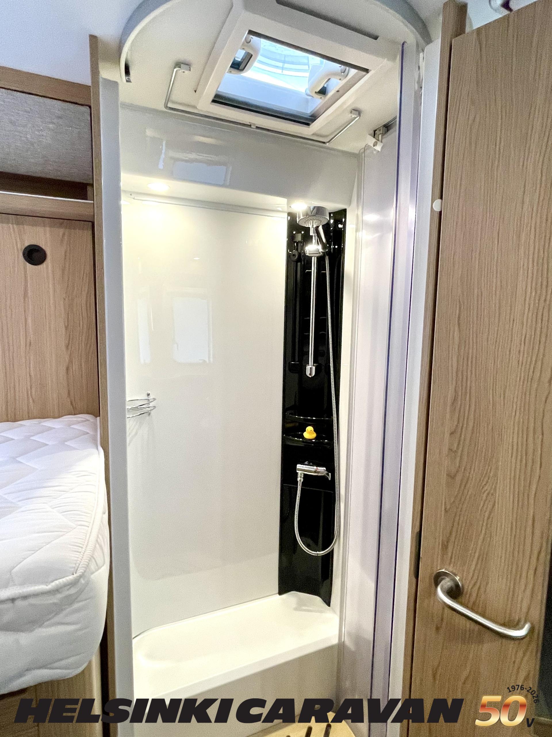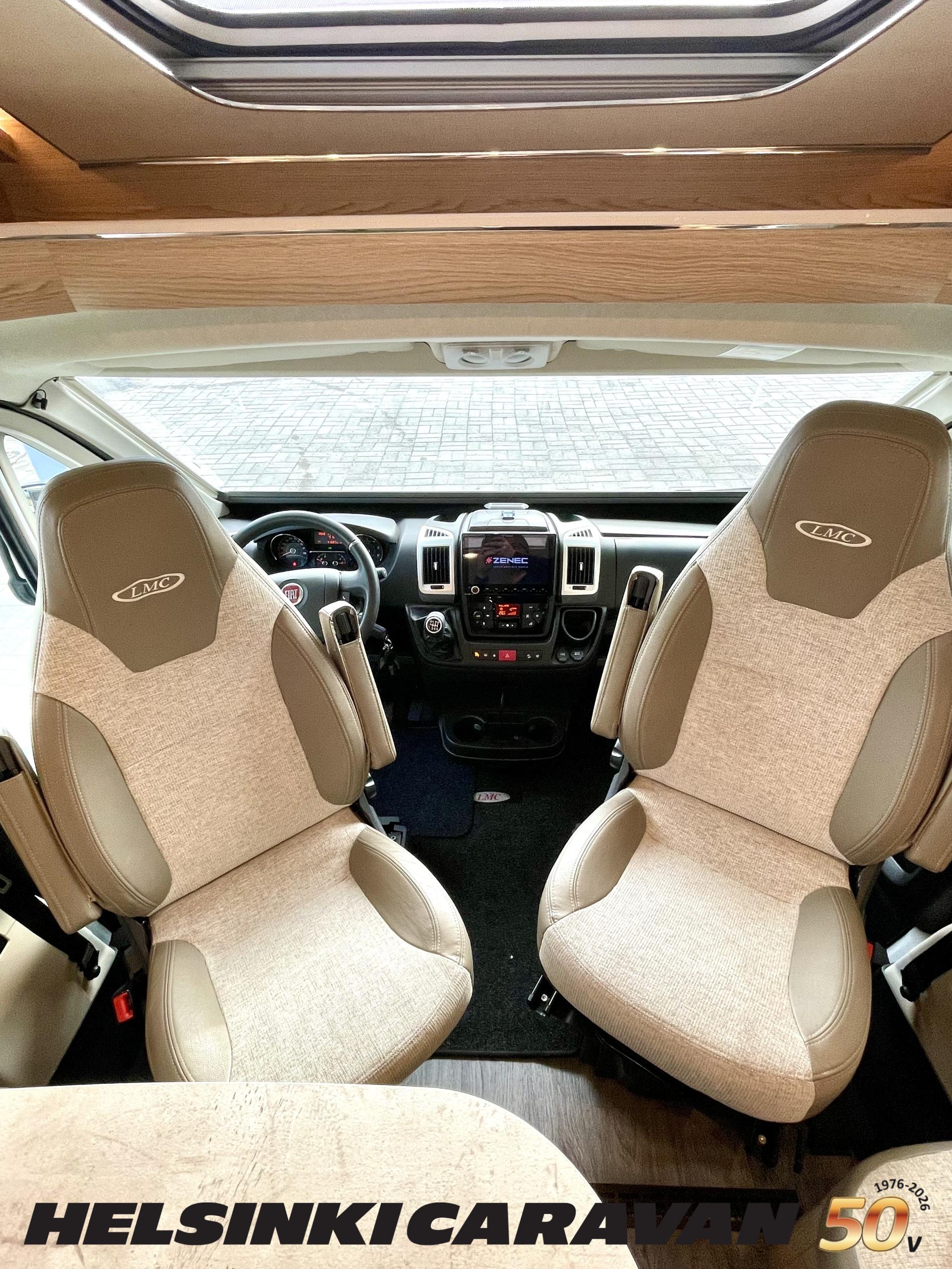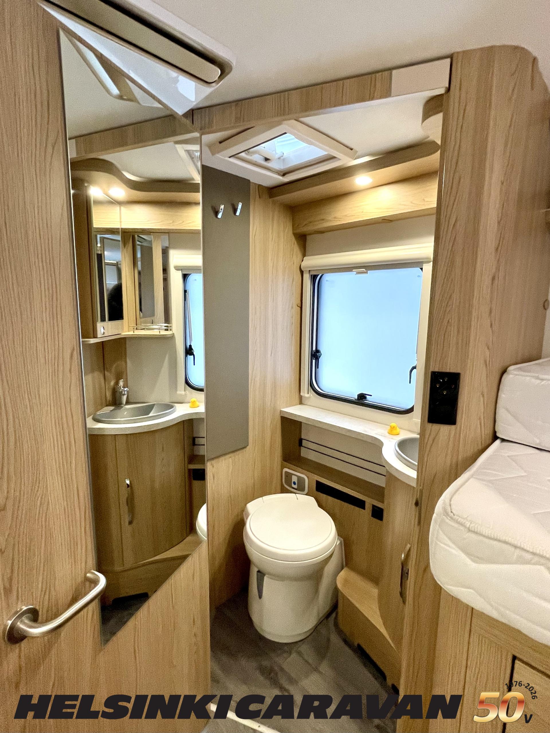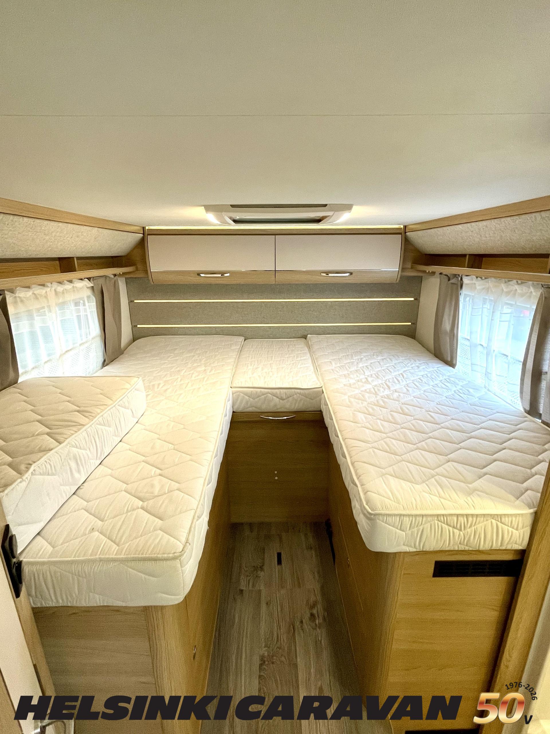 ABS brakes, Airbag, Ilmastointi: Manuaalinen, Fridge, Cassette WC, Cassette blinds, Roof hatch, Keskuslukitus: Kaukosäätöinen, Ignition interlock, Passenger area carpets, Stove, Hot water boiler, Navigator, Power steering, Freezer compartment, Double bed, Sink, Radio, Shower, Electric windows, Electric heating cartridge, Power side mirrors, Electric steps, Trumatic, Turbo, Vakionopeudensäädin, harmaavesisäiliön lämmitys, ohjaamon kasettiverhot, Asuinosan hyttysovi/verho, Cab air conditioning