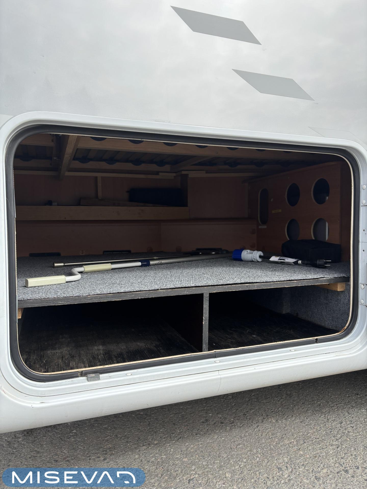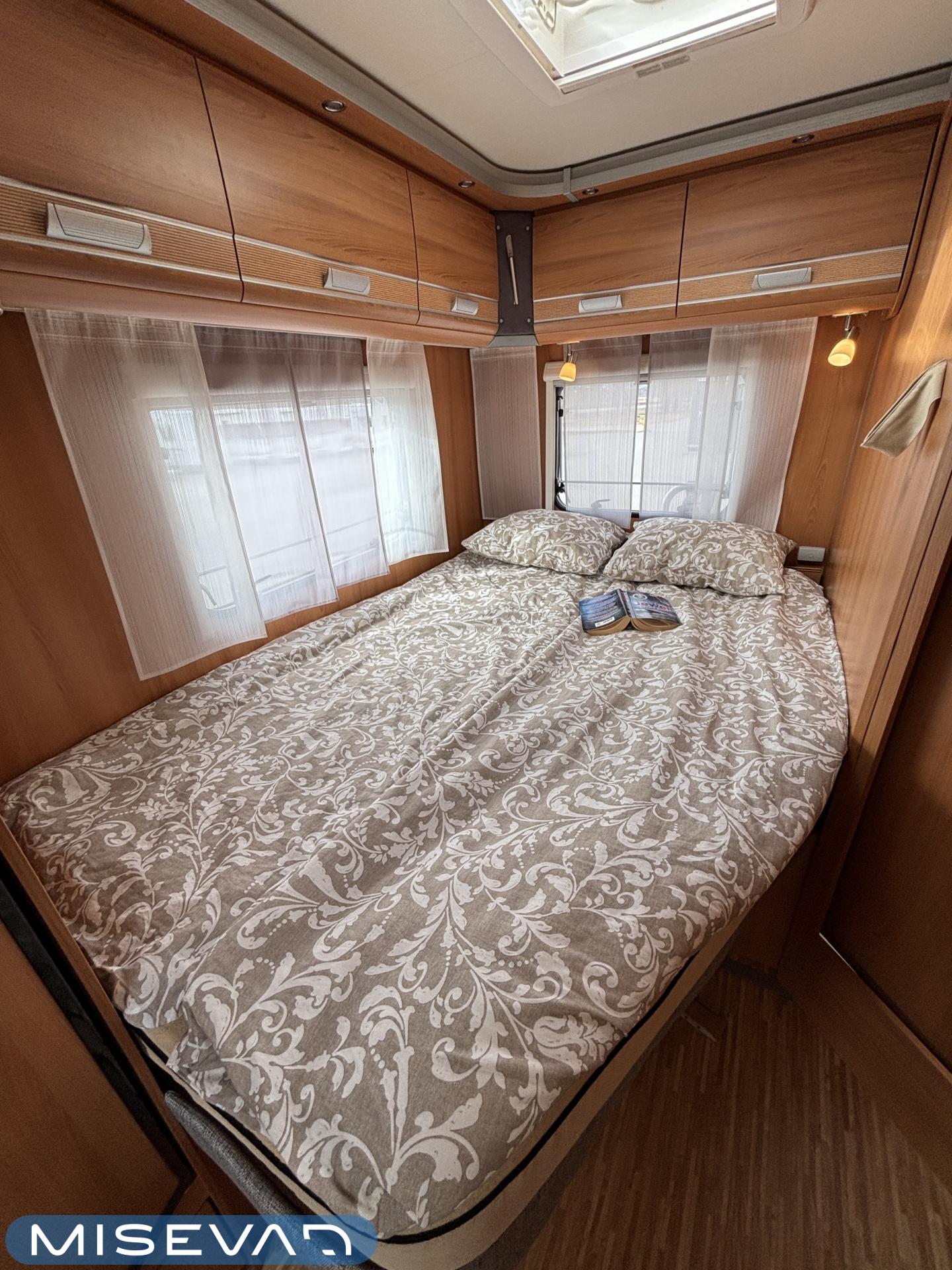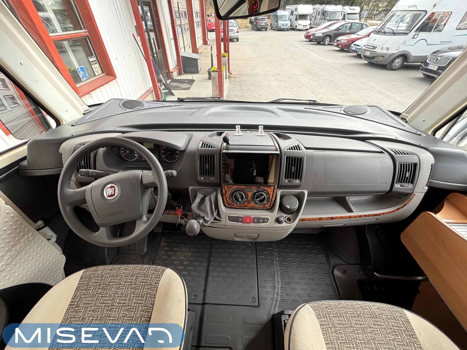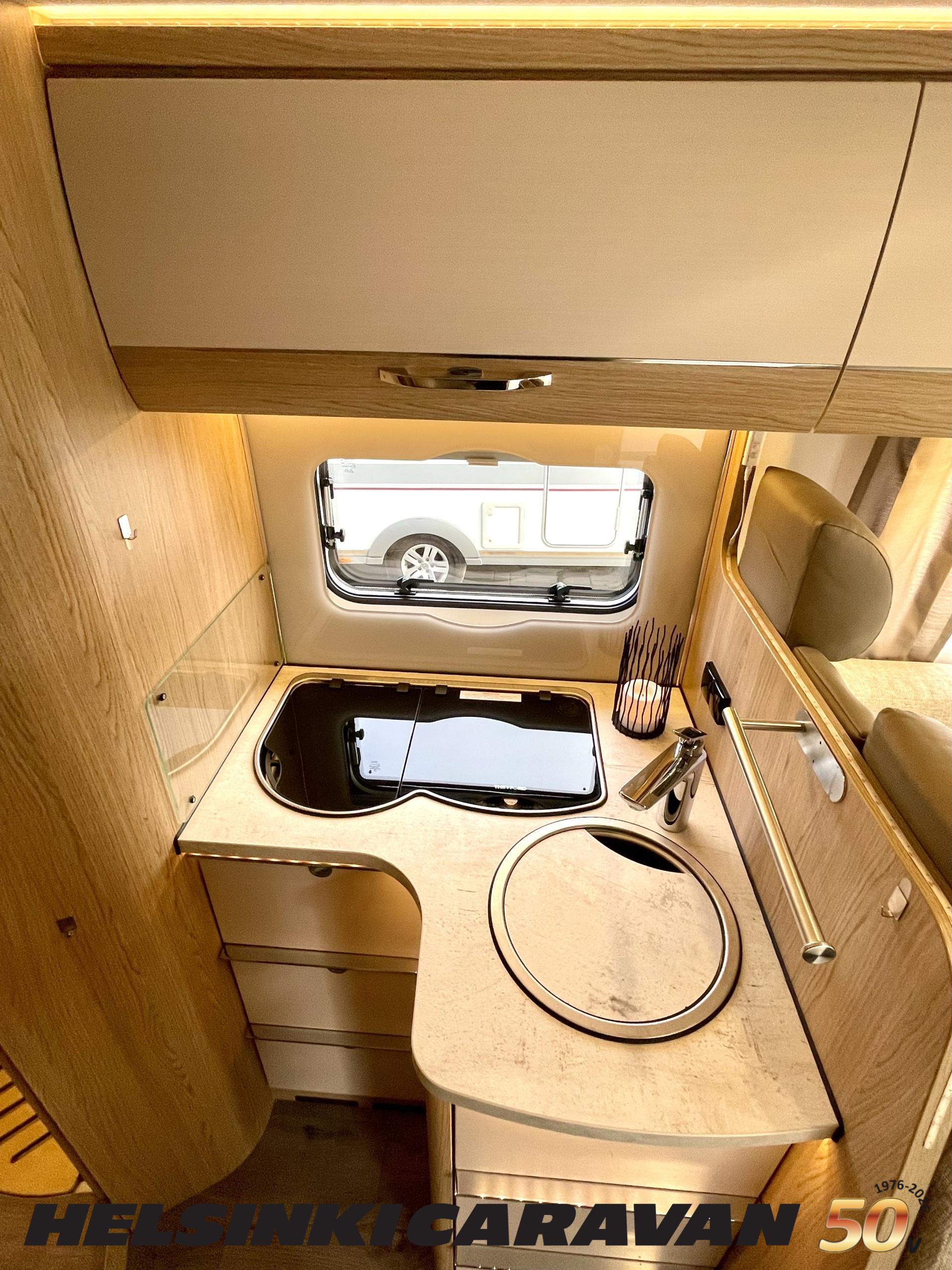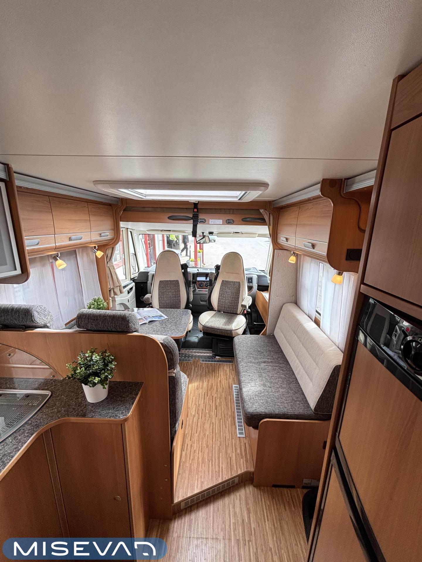 ABS brakes, Airbag, Ilmastointi: Manuaalinen, Fridge, Cassette WC, Cassette blinds, Roof hatch, Keskuslukitus: Kaukosäätöinen, Ignition interlock, Passenger area carpets, Stove, Hot water boiler, Navigator, Power steering, Freezer compartment, Double bed, Sink, Radio, Shower, Electric windows, Electric heating cartridge, Power side mirrors, Electric steps, Trumatic, Turbo, Vakionopeudensäädin, harmaavesisäiliön lämmitys, ohjaamon kasettiverhot, Asuinosan hyttysovi/verho, Cab air conditioning