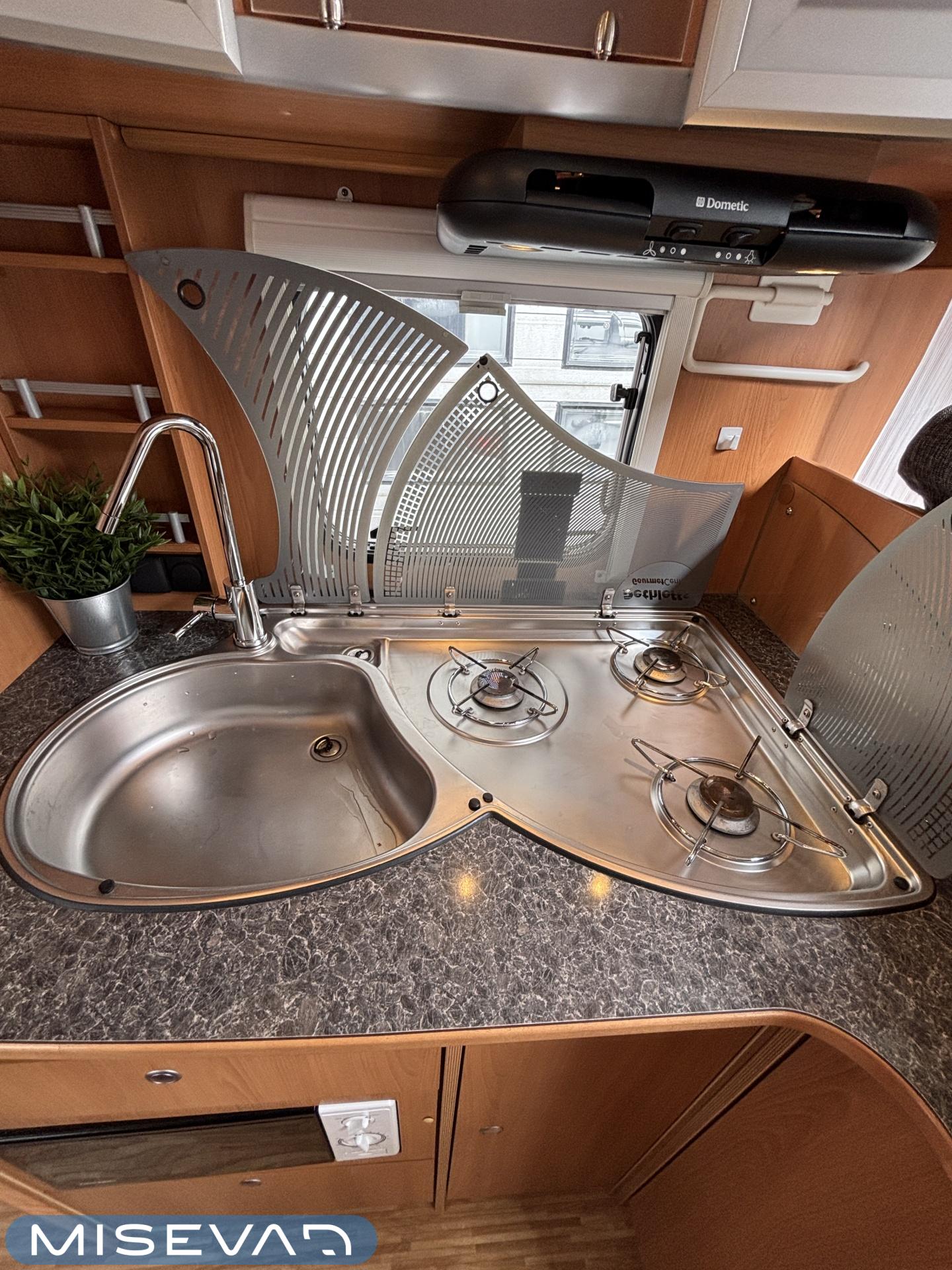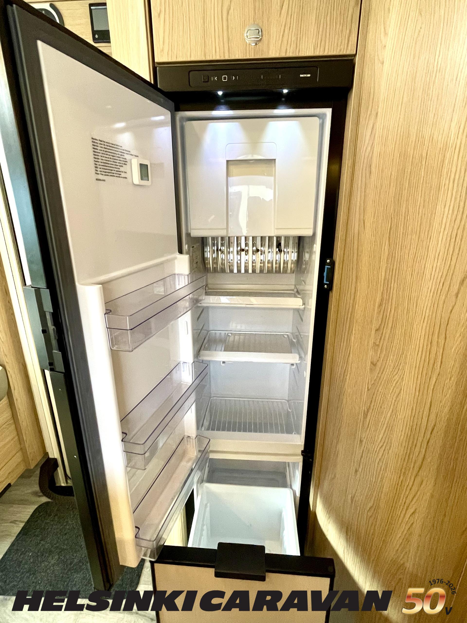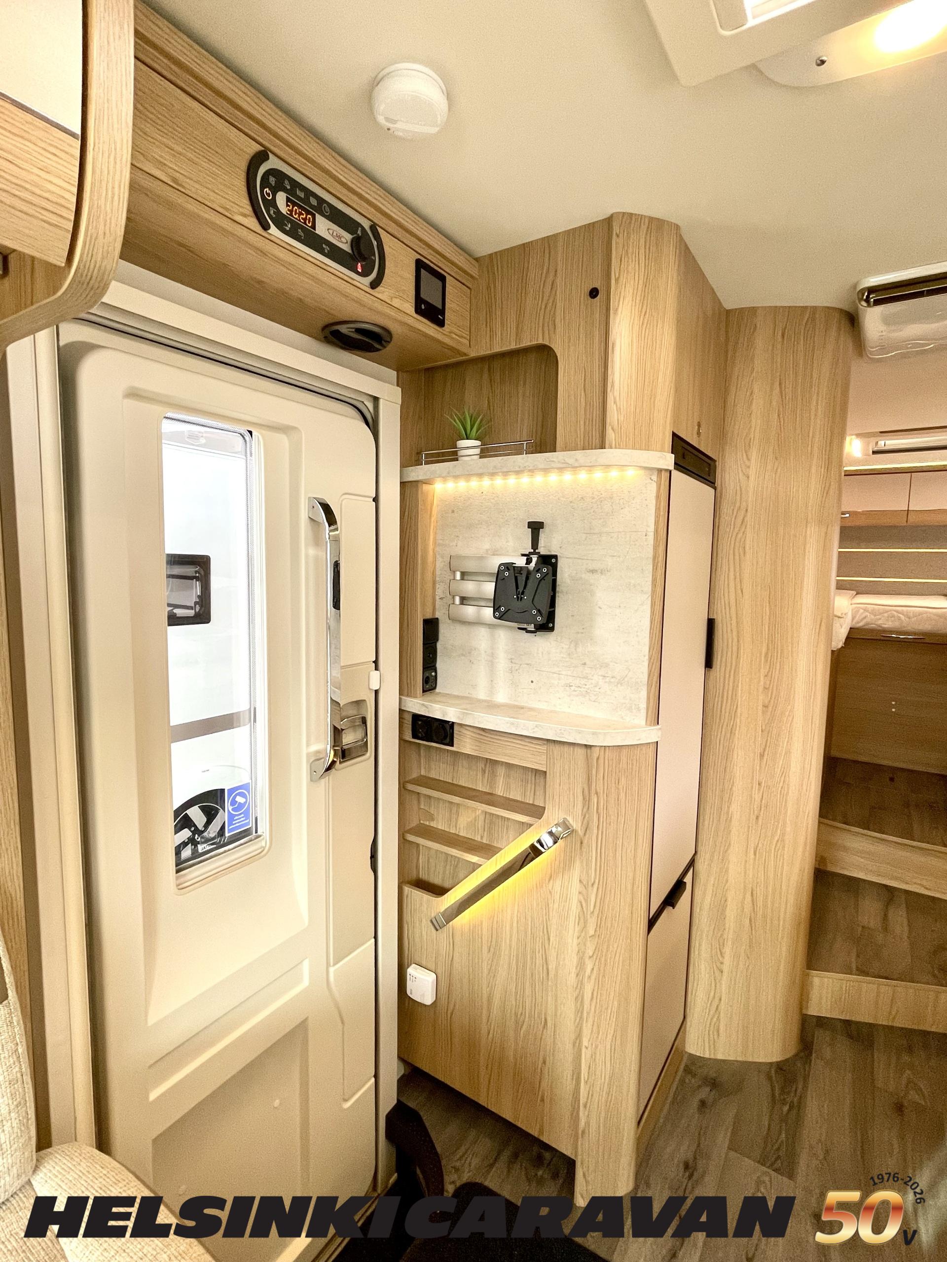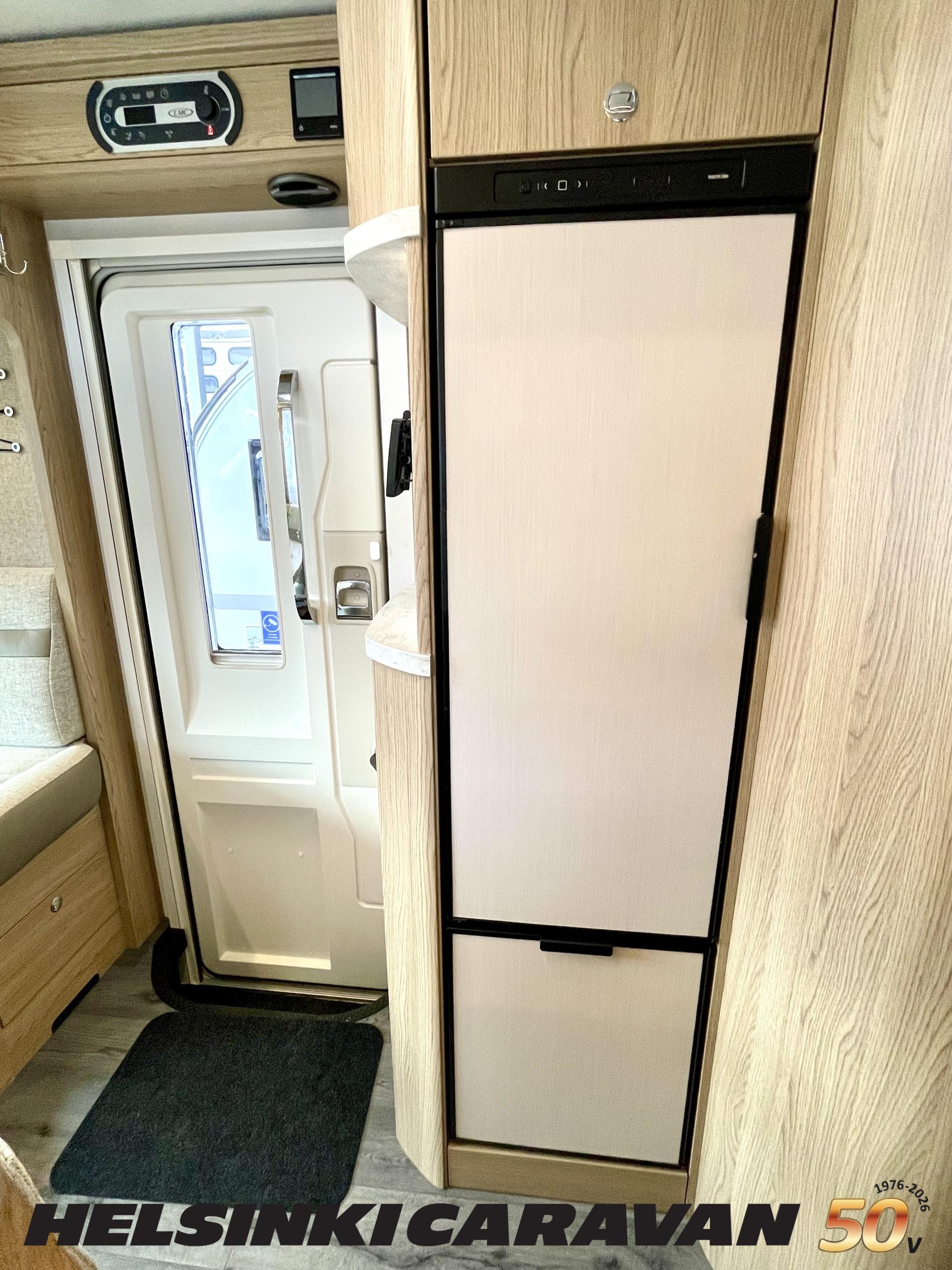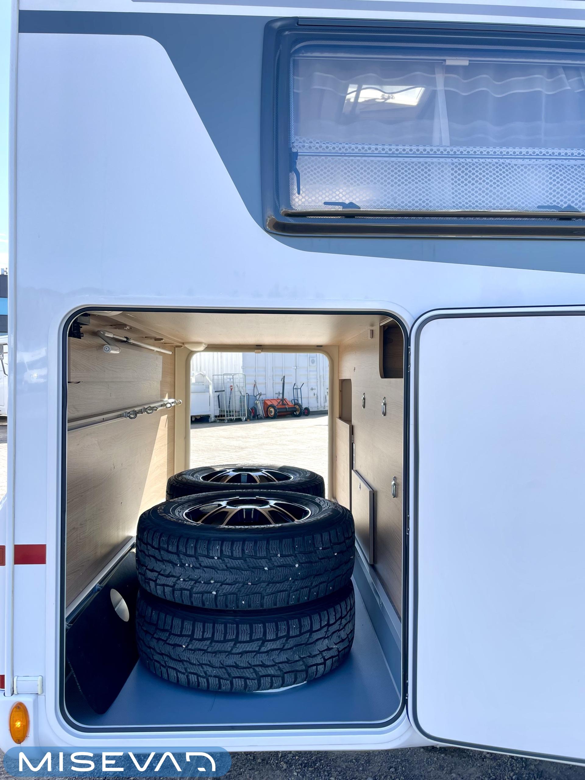 ABS brakes, Airbag, Ilmastointi: Manuaalinen, Fridge, Cassette WC, Cassette blinds, Roof hatch, Keskuslukitus: Kaukosäätöinen, Ignition interlock, Passenger area carpets, Stove, Hot water boiler, Navigator, Power steering, Freezer compartment, Double bed, Sink, Radio, Shower, Electric windows, Electric heating cartridge, Power side mirrors, Electric steps, Trumatic, Turbo, Vakionopeudensäädin, harmaavesisäiliön lämmitys, ohjaamon kasettiverhot, Asuinosan hyttysovi/verho, Cab air conditioning