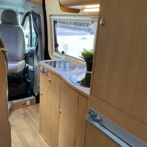 ABS brakes, Airbag, Trip computer, Cab air conditioning, Fridge, Two tyre sets, Cassette WC, Roof hatch, Central heating, Engine heater, Hot water boiler, Sun shade, Power steering, Freezer compartment, Double bed, Sink, Pysäköintikamera, Radio, Electric windows, Power side mirrors, Electric steps, TV-antenni tai lautasantenni, Trumatic, Turbo, Towing hook