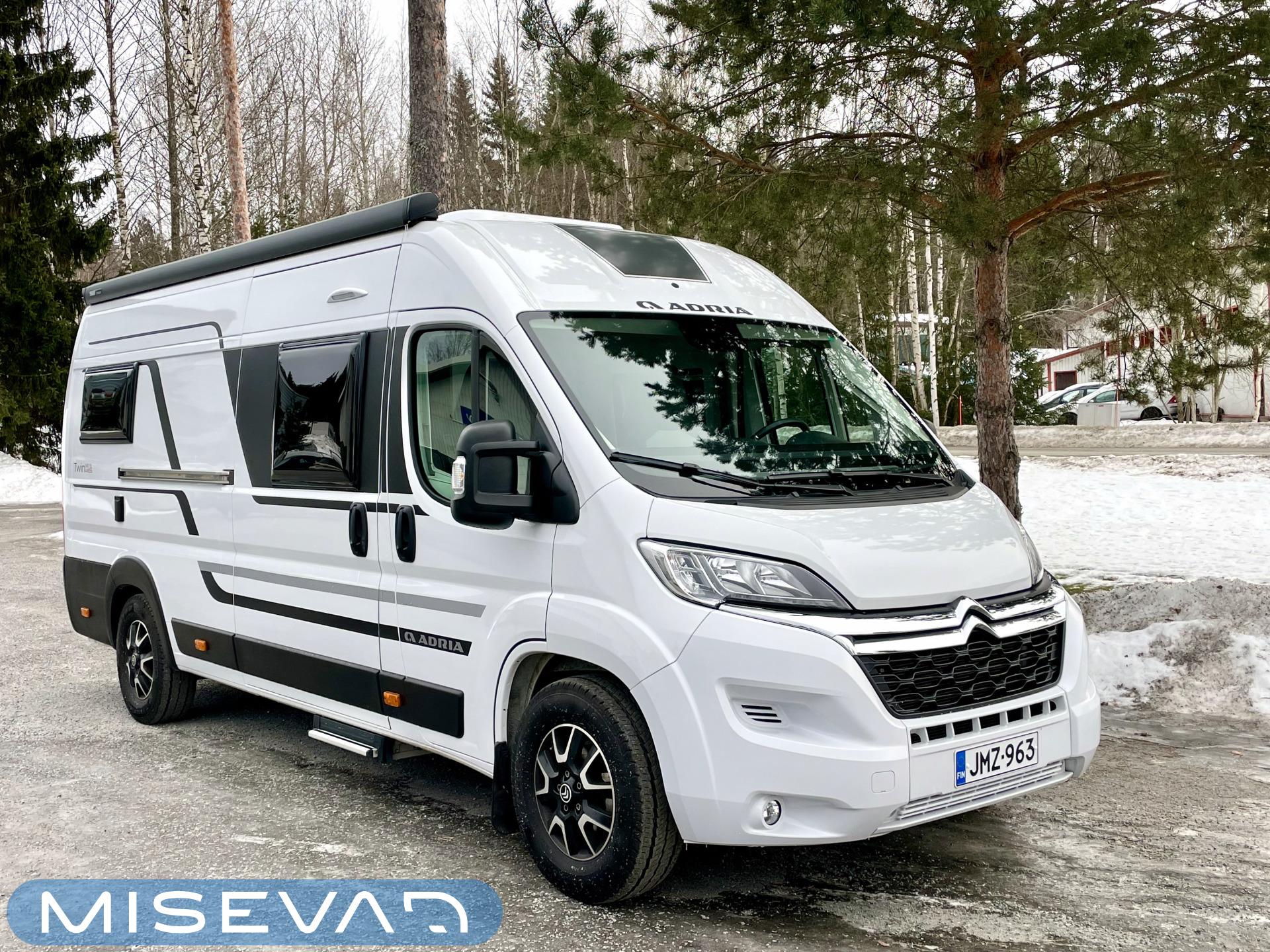 Bluetooth, Special wheels, Separate beds, Fridge, Cassette WC, Cassette blinds, Roof hatch, Keskuslukitus: Kaukosäätöinen, Passenger area carpets, Stove, Hot water boiler, Sun shade, Freezer compartment, Sink, Radio, Shower, Electric windows, Electric heating cartridge, Power side mirrors, Electric steps, Turbo, Vakionopeudensäädin, Truma, Ilmastointi (ohjaamo), Kesärenkaat, 1 x kevytmet.vanteet, televisioteline, Asuinosan hyttysovi/verho